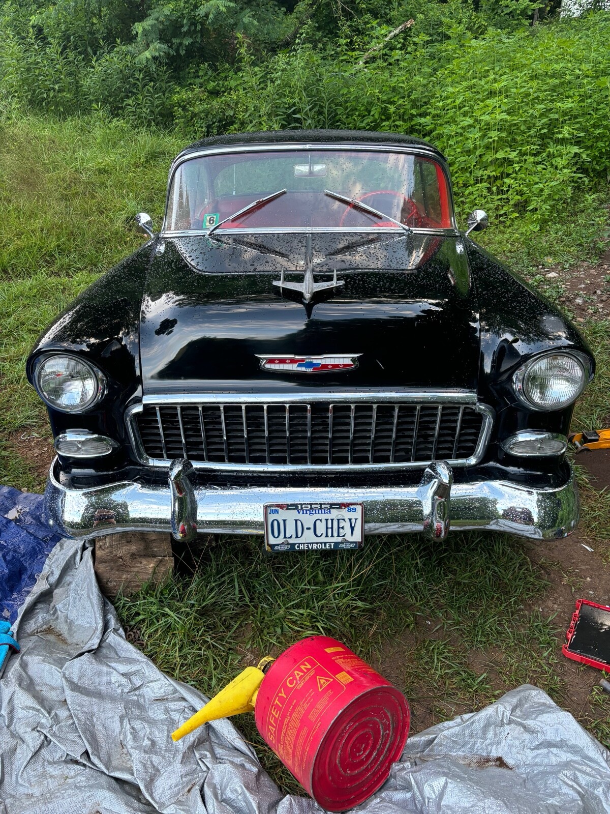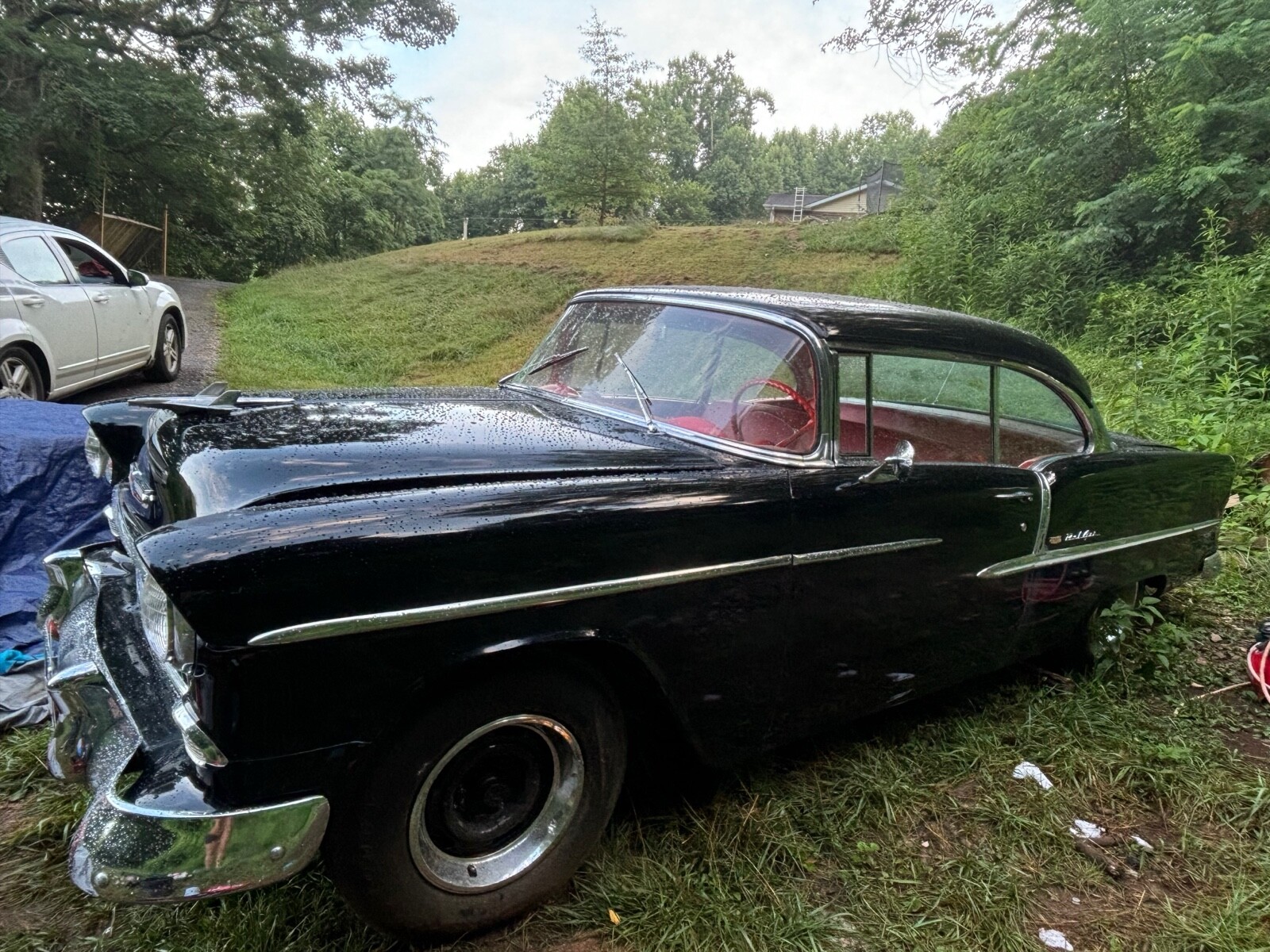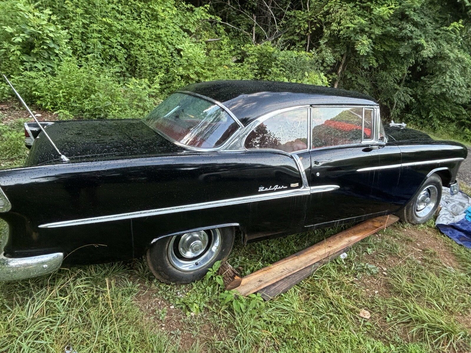 1955 Chevy Bel Air. Black exterior, red interior. Solid Car