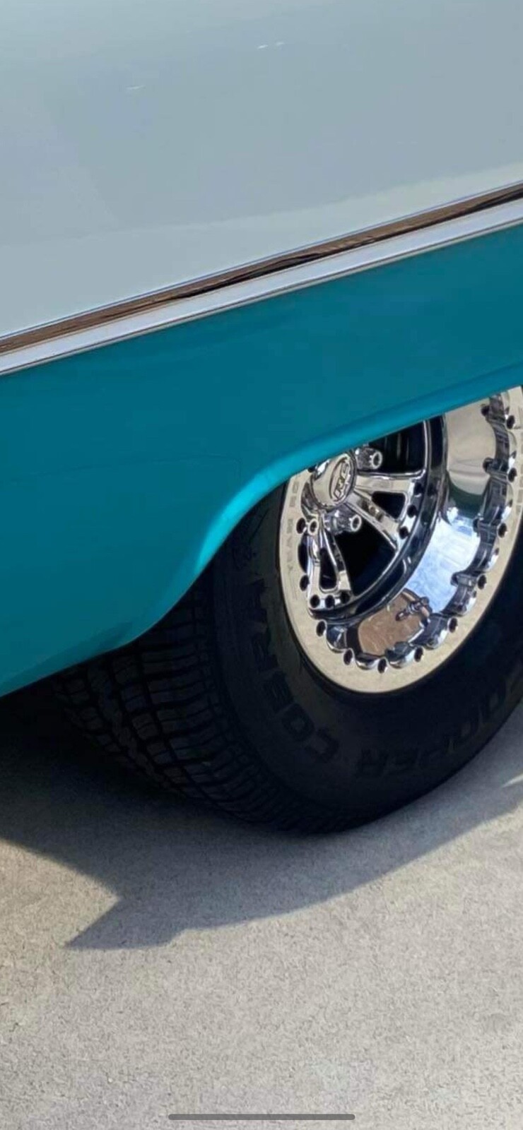 468 BBC mild cam, alum intake, alum heads,serpentine setup, large polished Griffin alum rad ,ac, pb rack&pinion steering ,tub upper and lower a-arms, 700r4 trans,9” rearend ,4 wheel disc brakes. RC components torx wheels. Single beadlocks on rear.