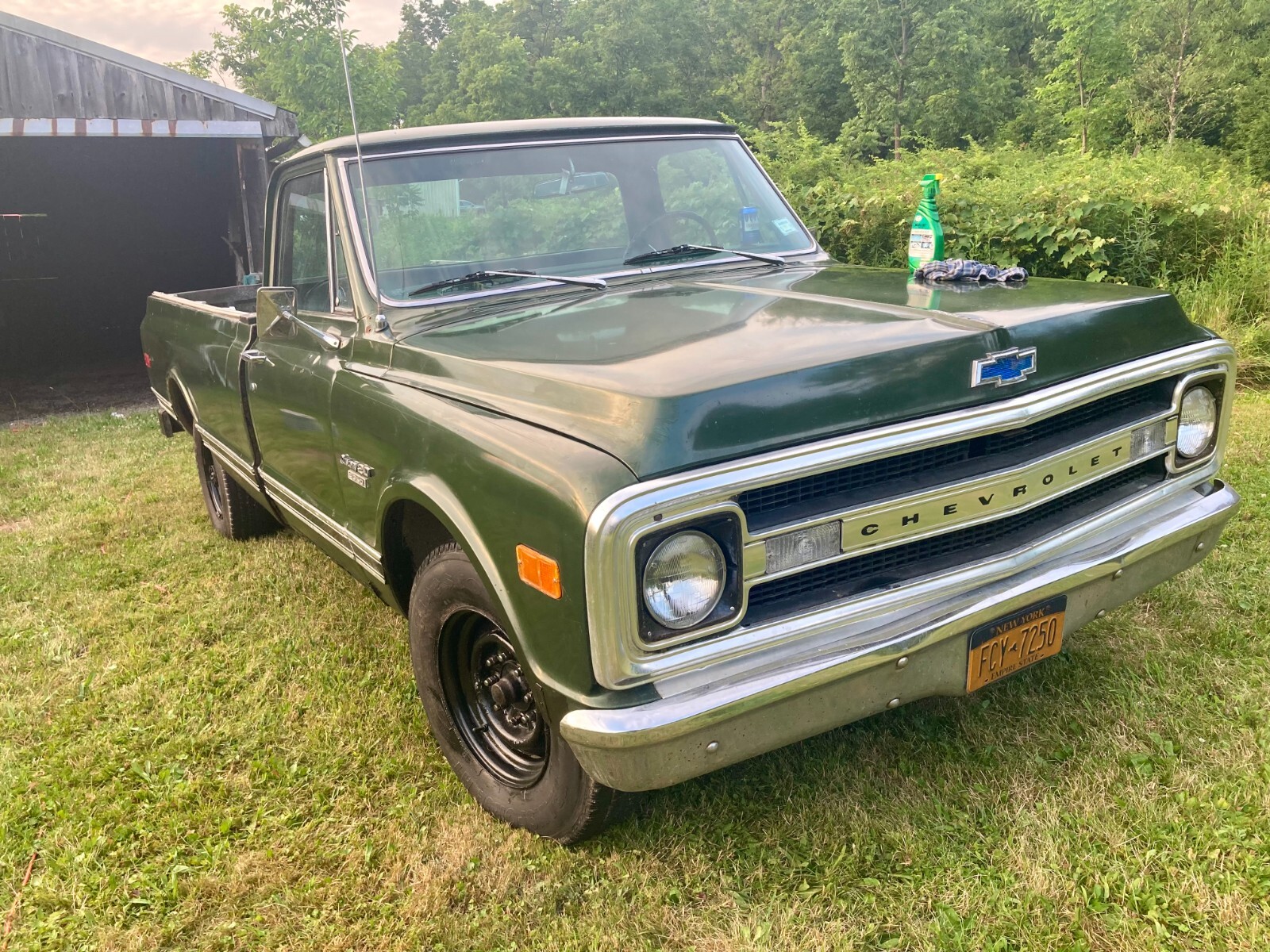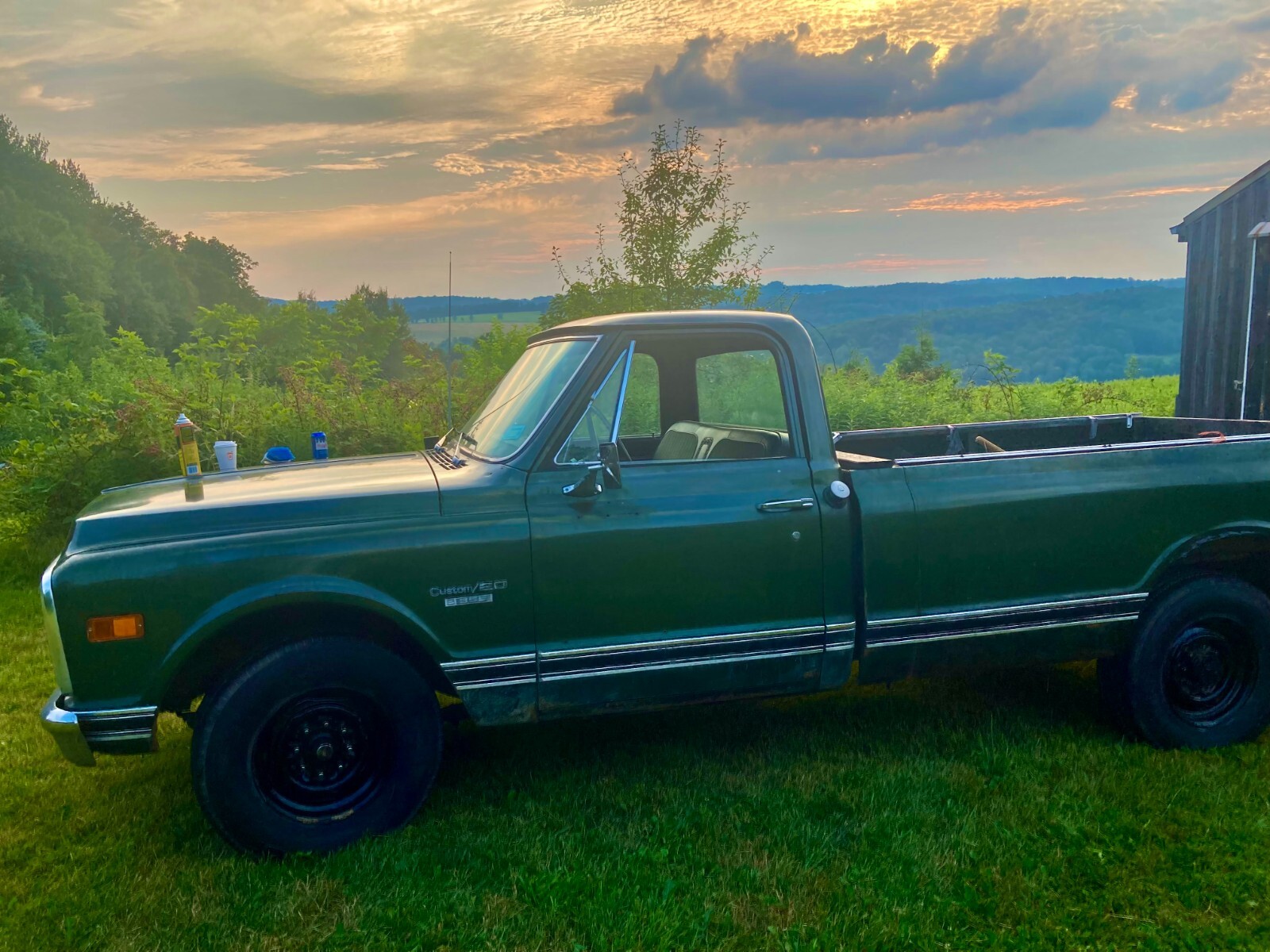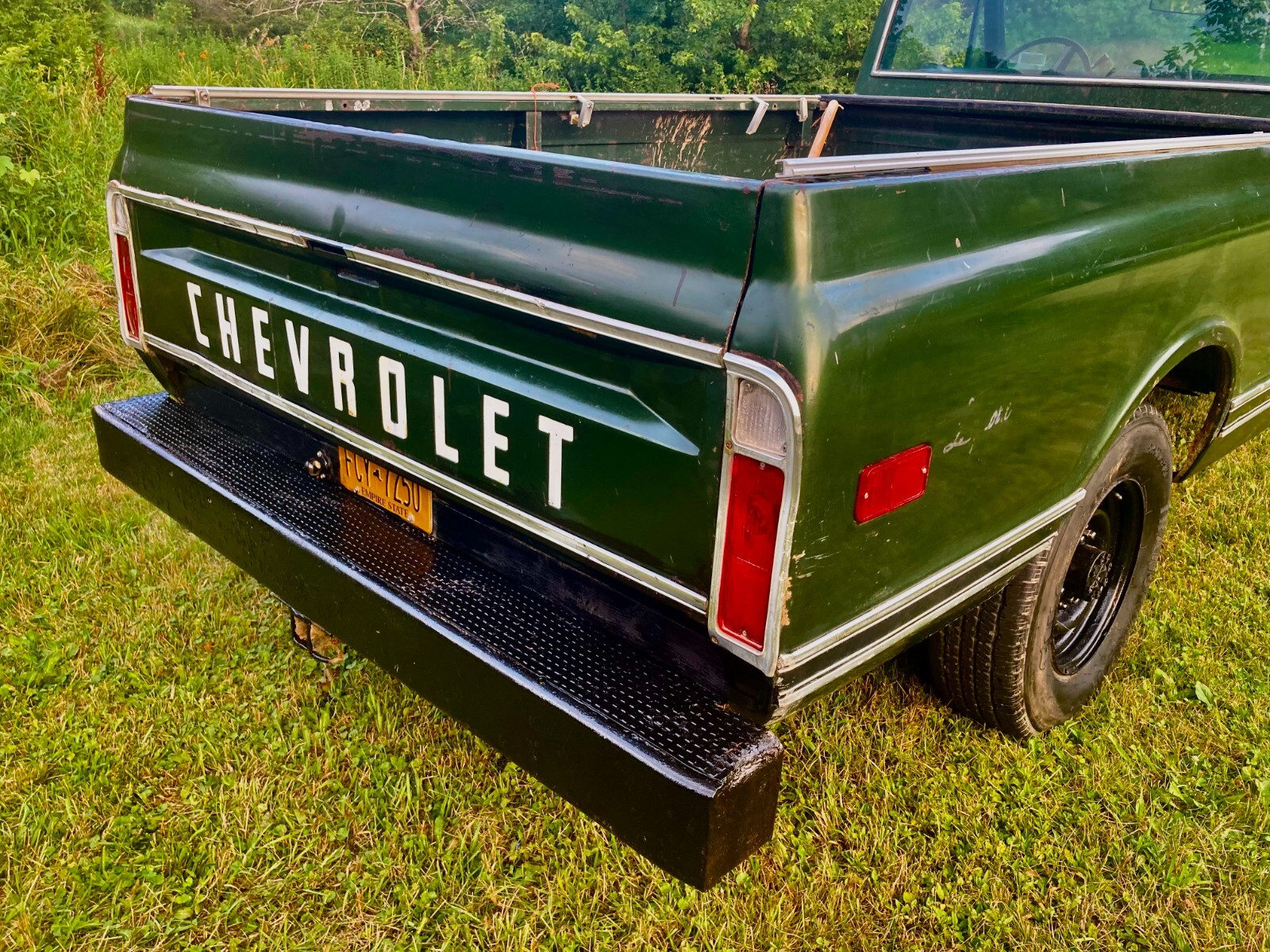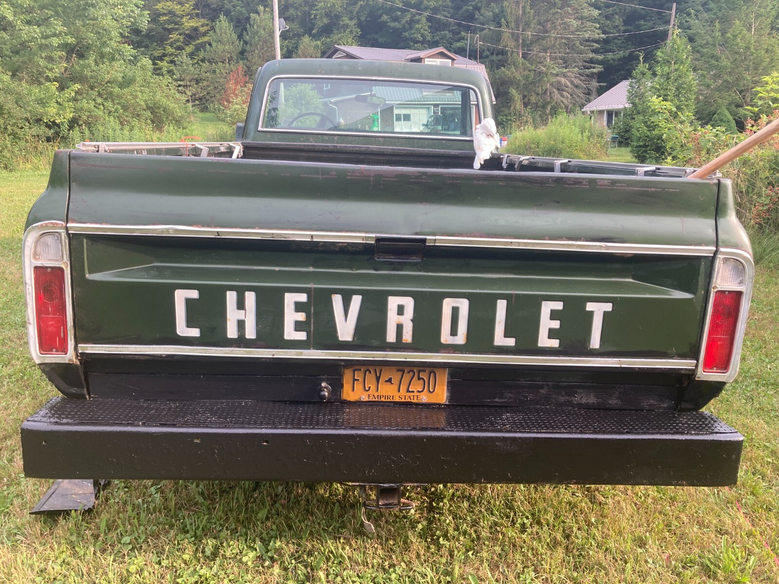 Rare extended bed Chevy Camper Truck. 3/4 ton . New gas tank , and extensive brake work done ... Emergency brake had seized up while it was sitting in barn. Brake cable disconected. New Drum and brakes done over . Master cylinder etc. Great truck for restoration project.350 engine , turbo 400 trans. Interior in decent shape. floor pans good small hole on pass . side and 2 inch hole on driver side. Has seat belts no ac.Glass and doors work fine man. crank windows..no AC Starts right up. A few holes and surface rust on rocker panels but nothing major ...I have gone over them with rustoleum. It has been in barn for 10 years. I would start it up..but did not drive .