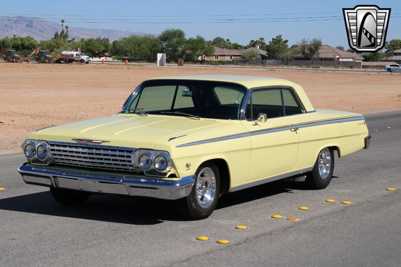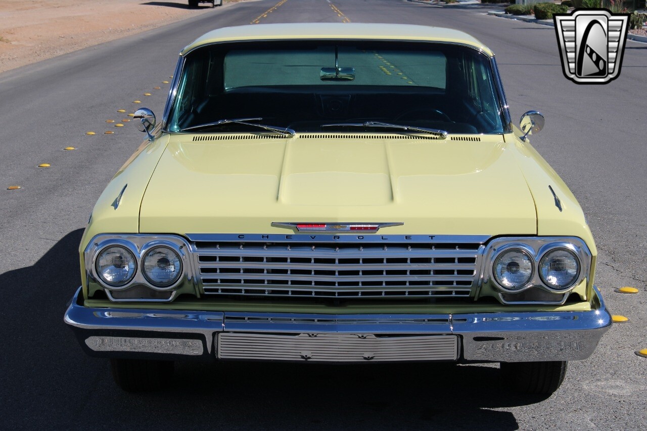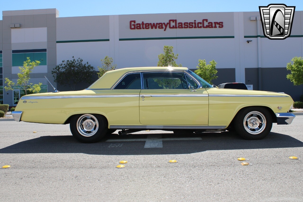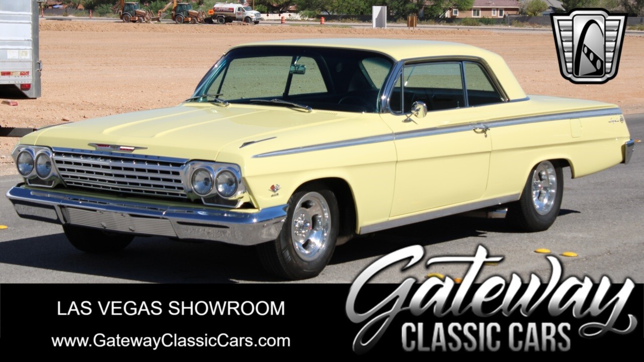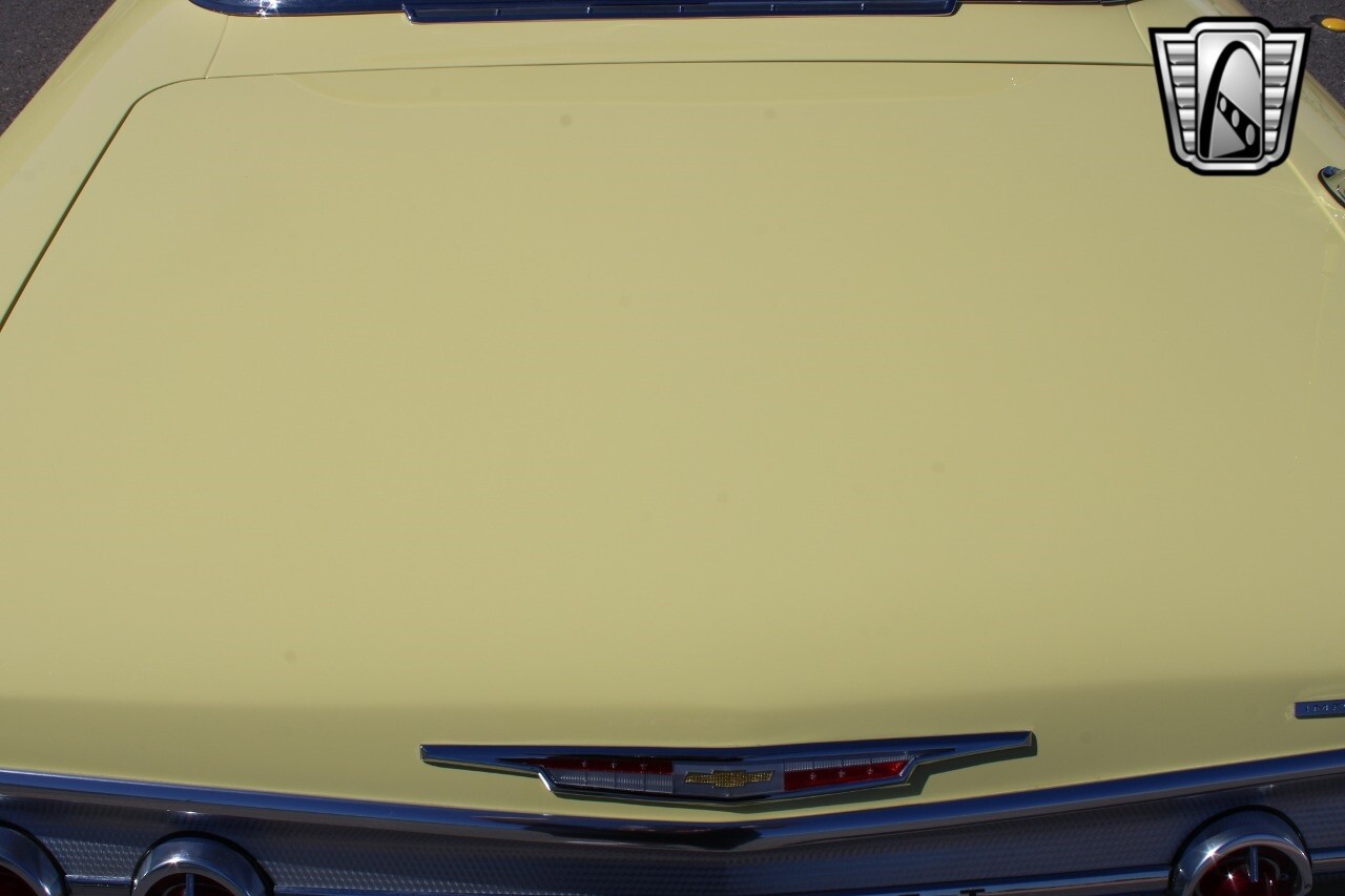 Gateway Classic Cars of Las Vegas presents this 1962 Chevrolet Impala, featuring a vibrant yellow exterior that is sure to turn heads wherever you go. This classic beauty is powered by a robust 409ci V8 engine, paired with an automatic transmission, delivering a smooth and powerful driving experience.