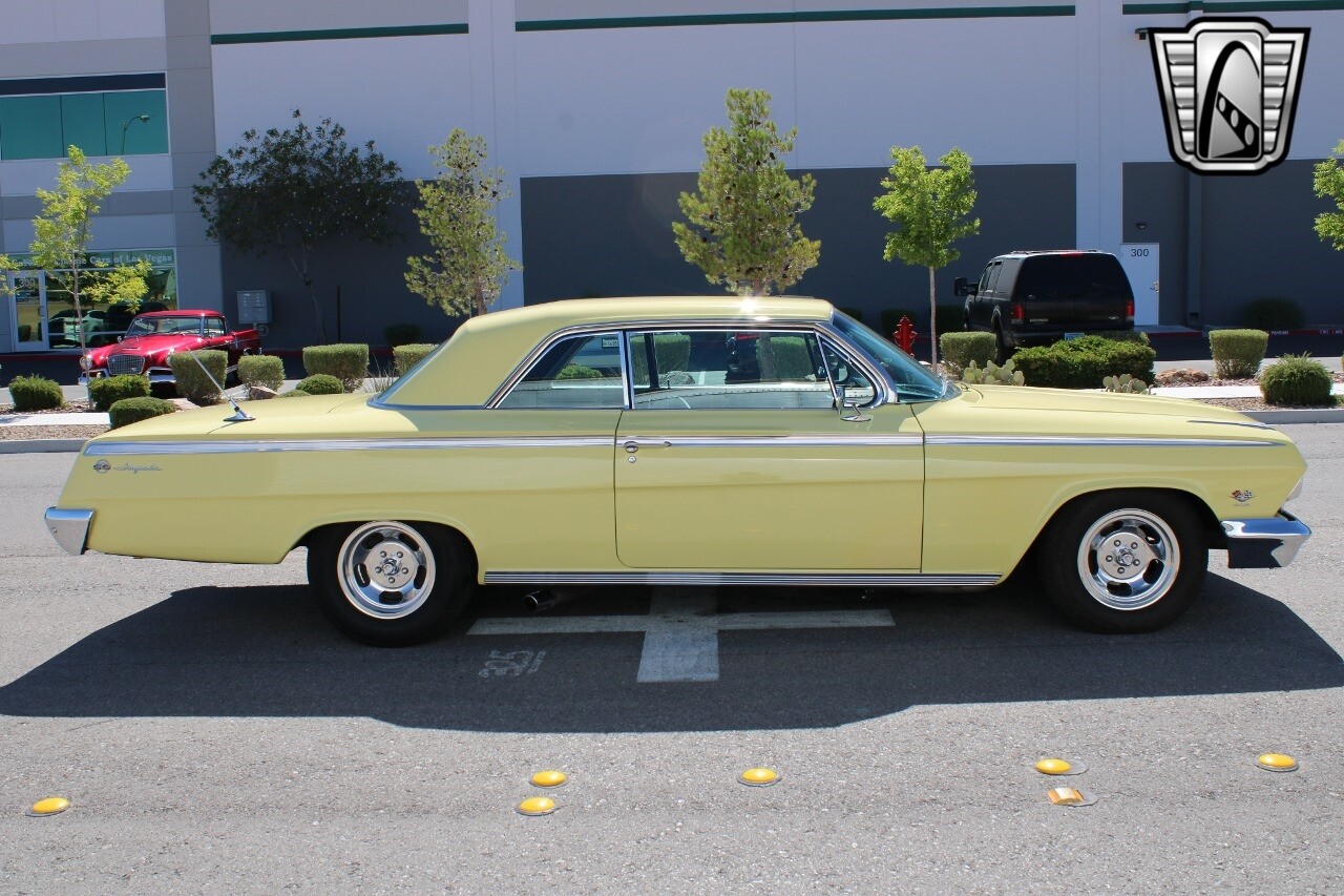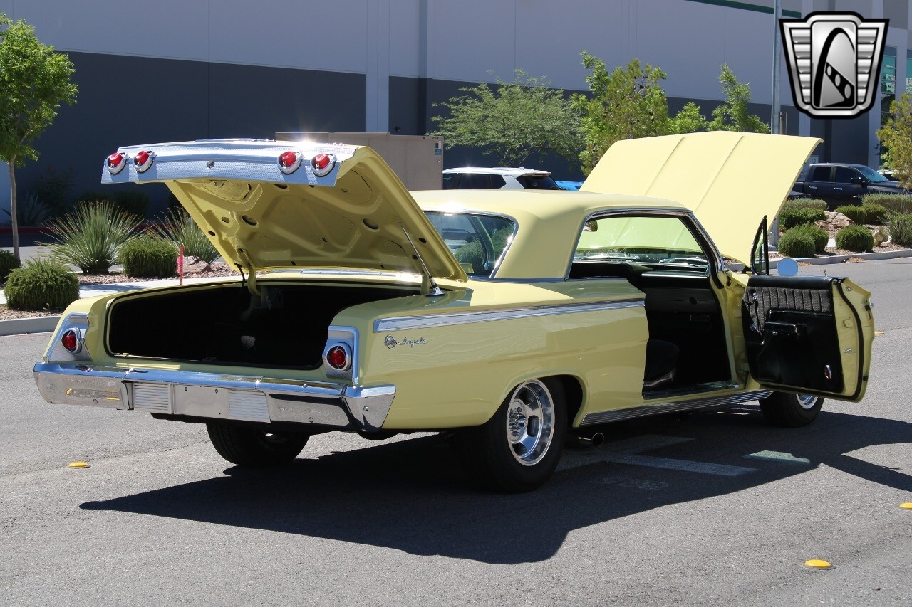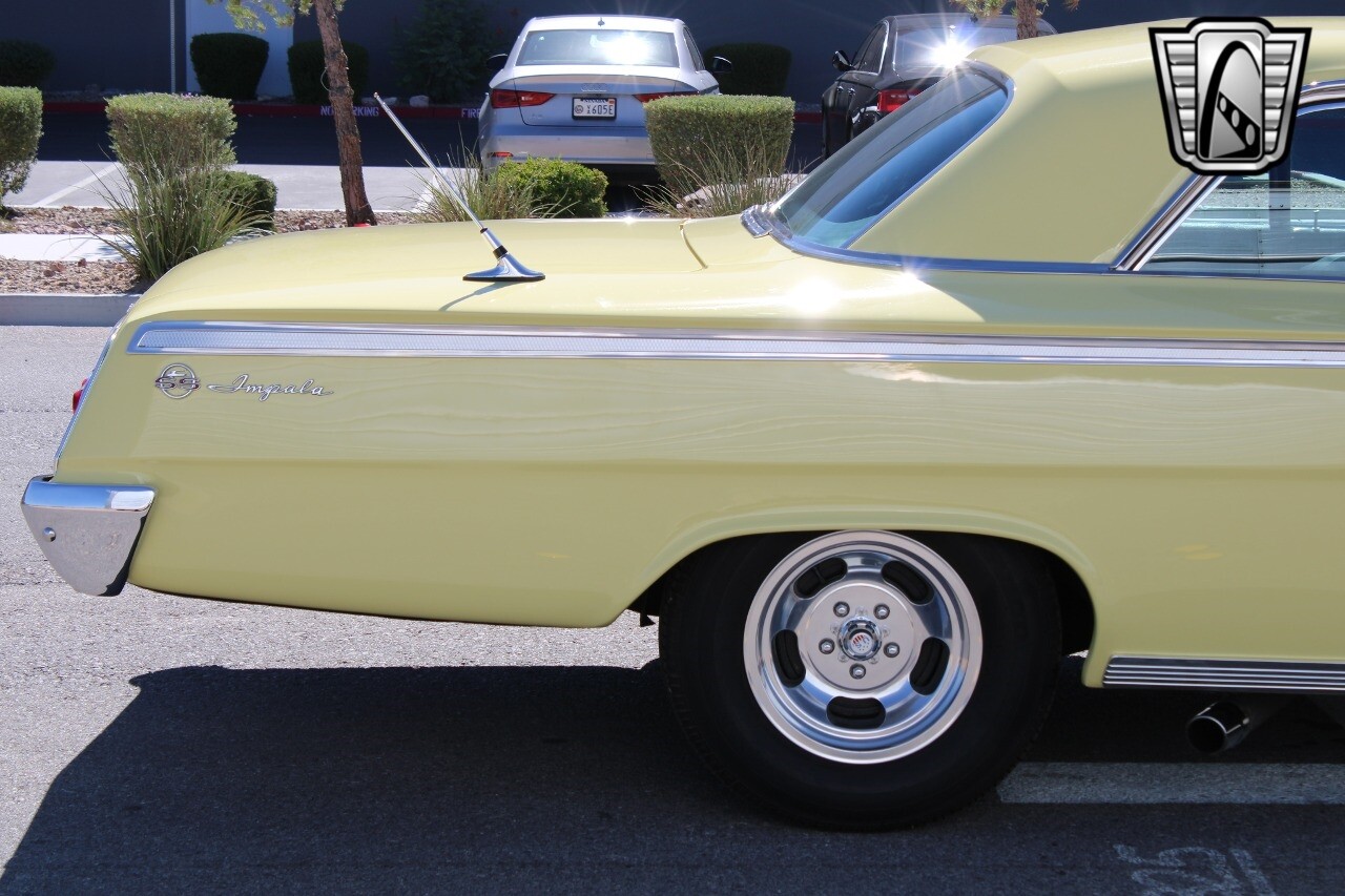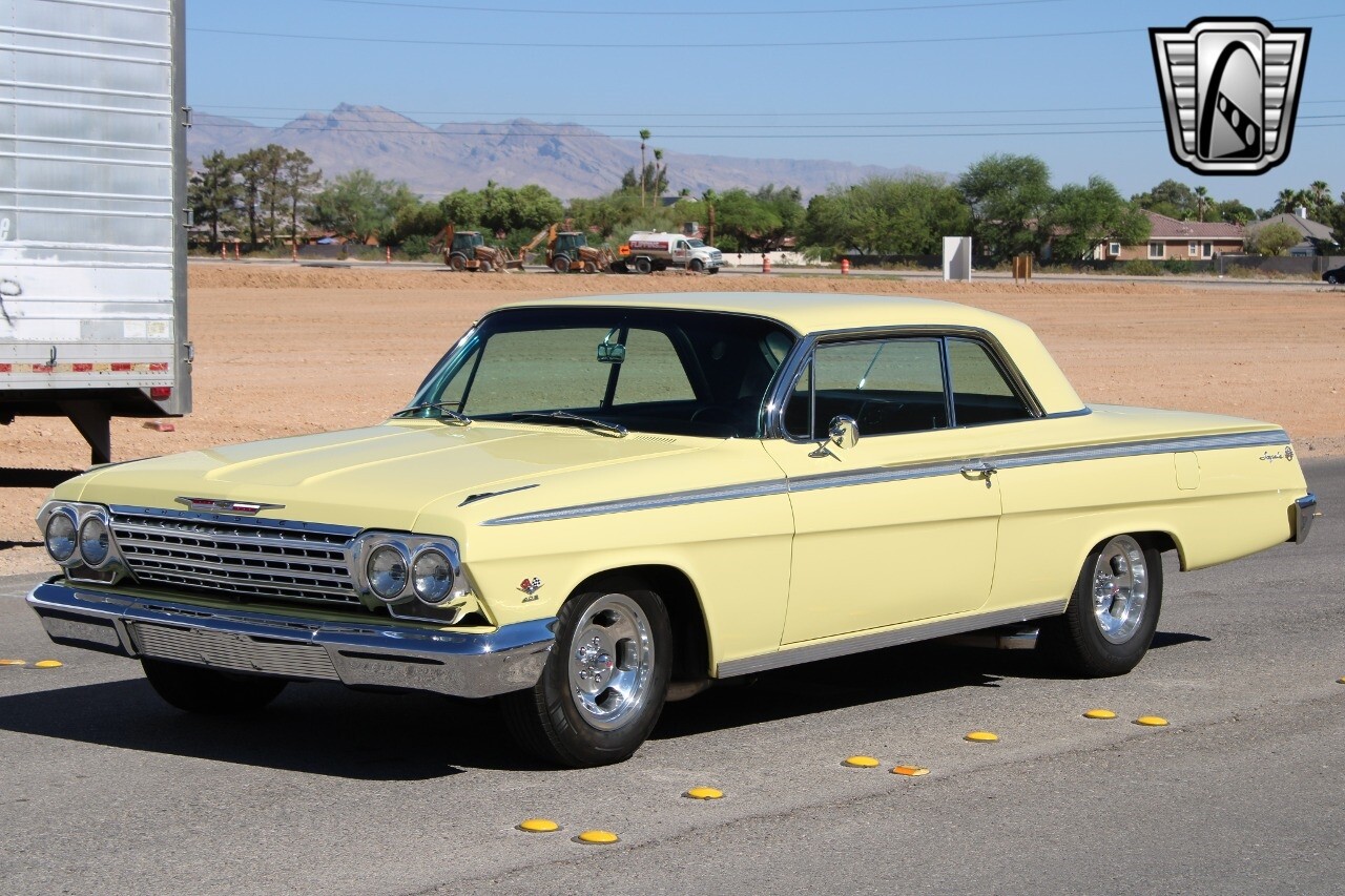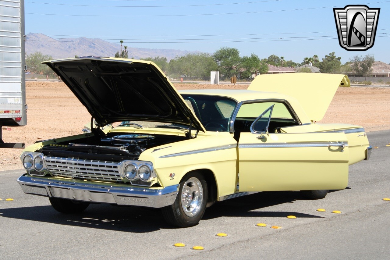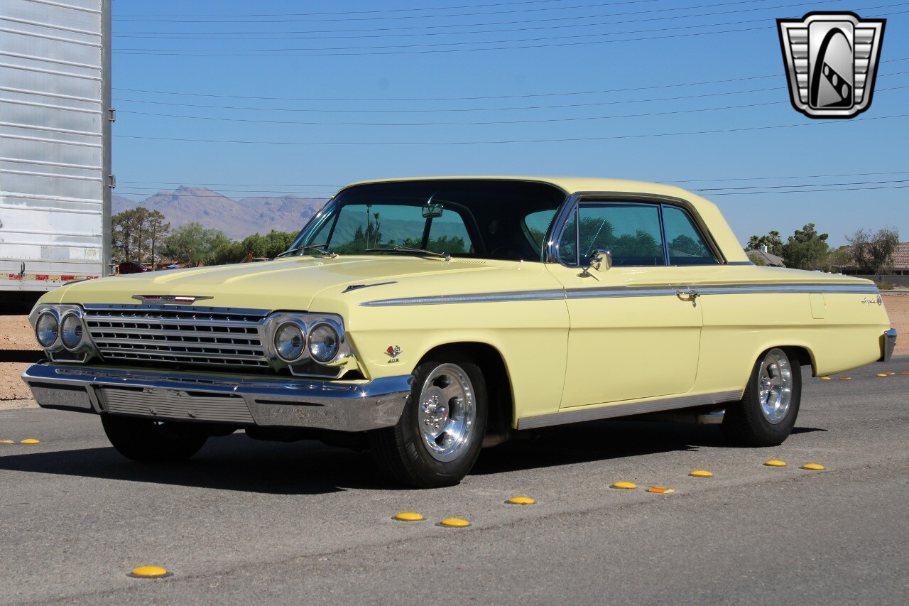 Gateway Classic Cars of Las Vegas presents this 1962 Chevrolet Impala, featuring a vibrant yellow exterior that is sure to turn heads wherever you go. This classic beauty is powered by a robust 409ci V8 engine, paired with an automatic transmission, delivering a smooth and powerful driving experience.