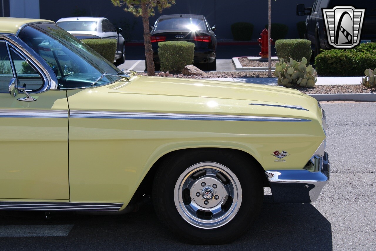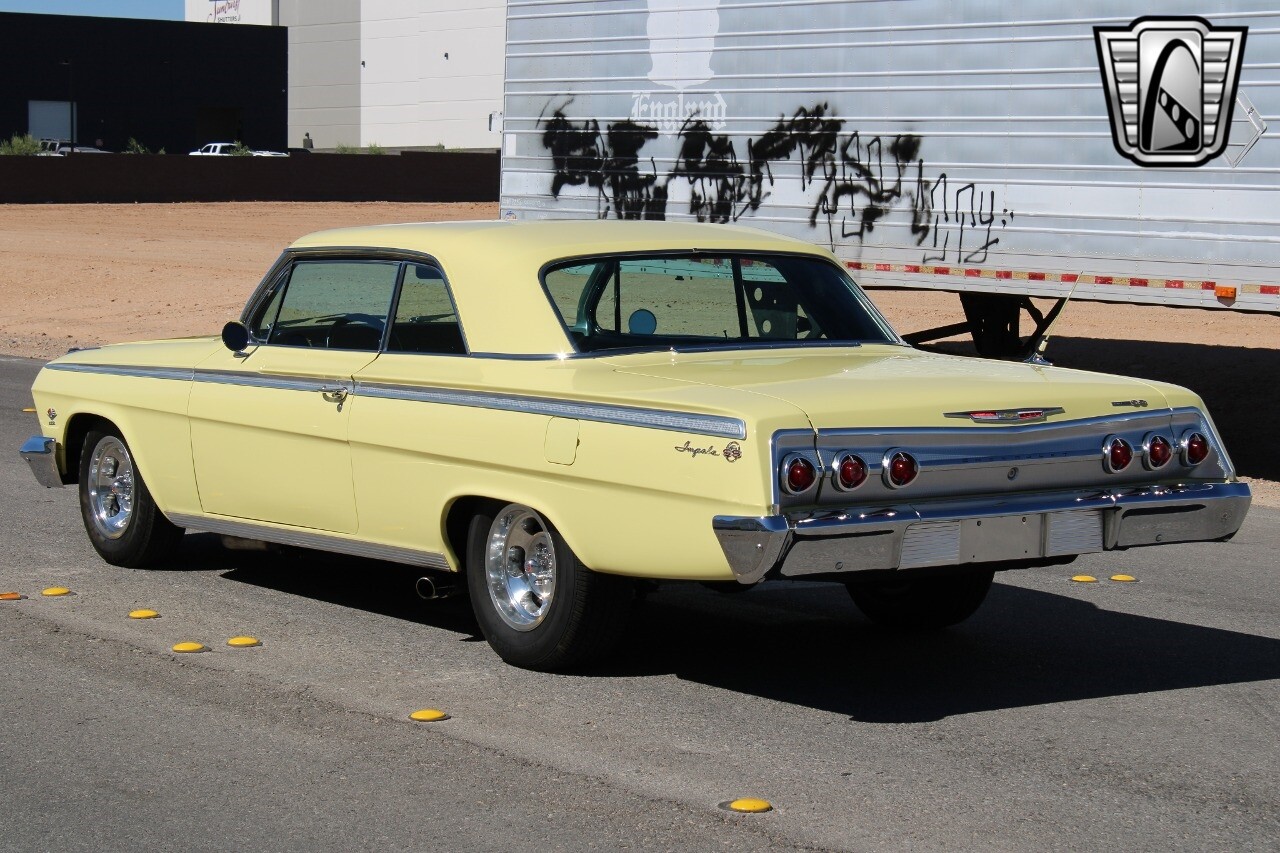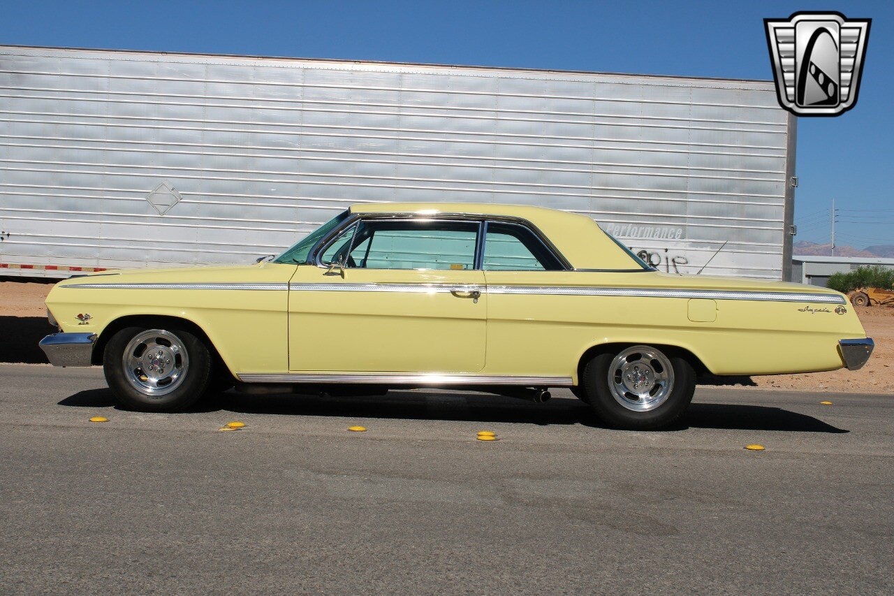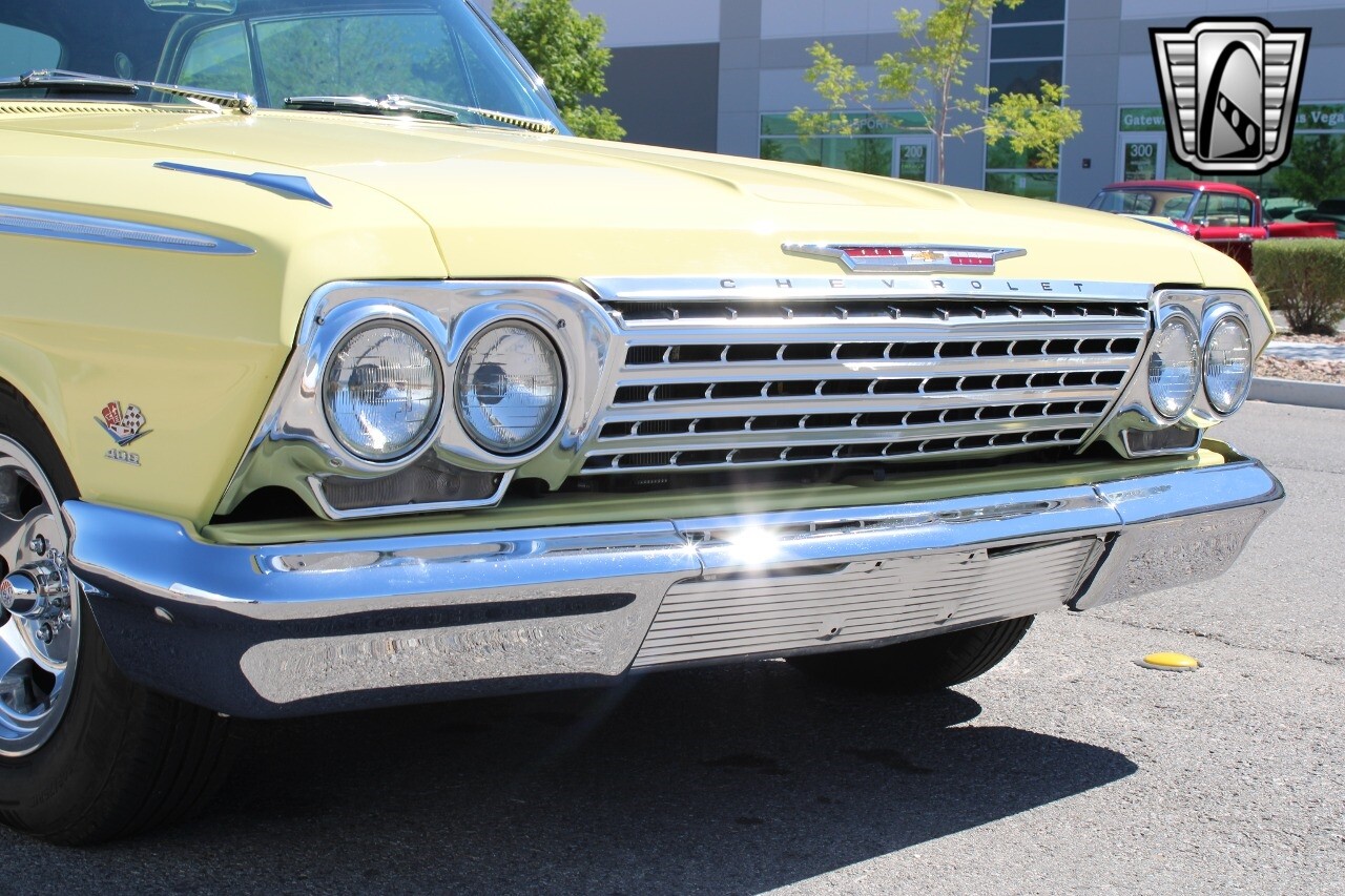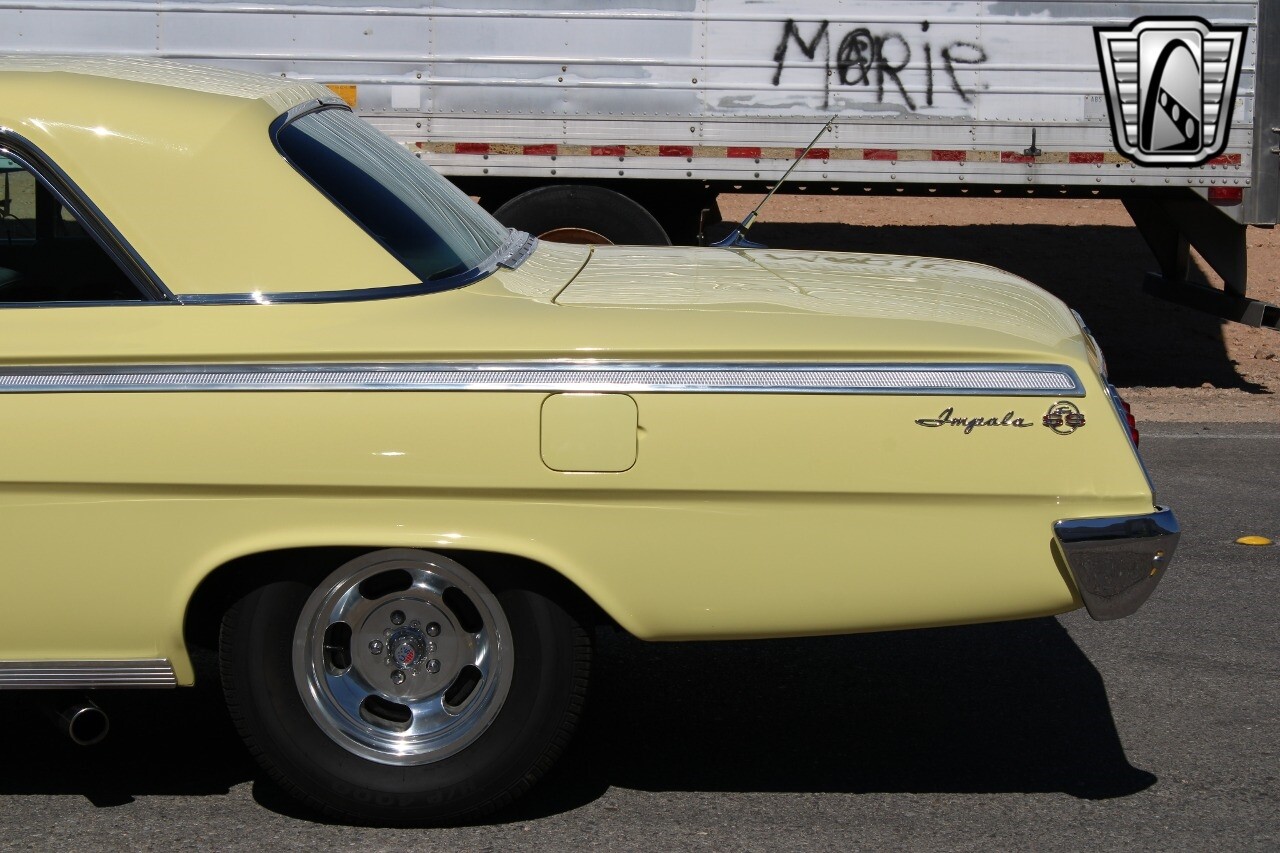 Gateway Classic Cars of Las Vegas presents this 1962 Chevrolet Impala, featuring a vibrant yellow exterior that is sure to turn heads wherever you go. This classic beauty is powered by a robust 409ci V8 engine, paired with an automatic transmission, delivering a smooth and powerful driving experience.