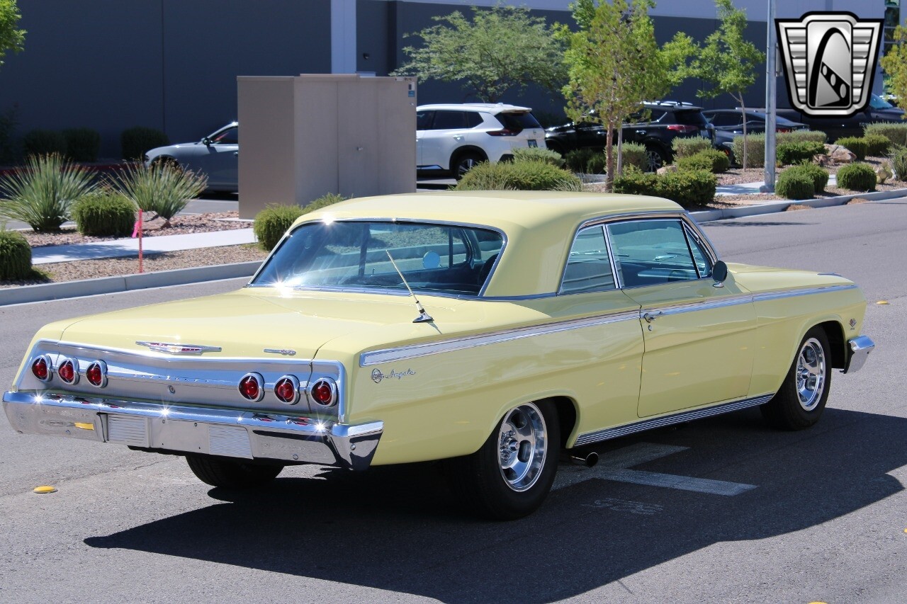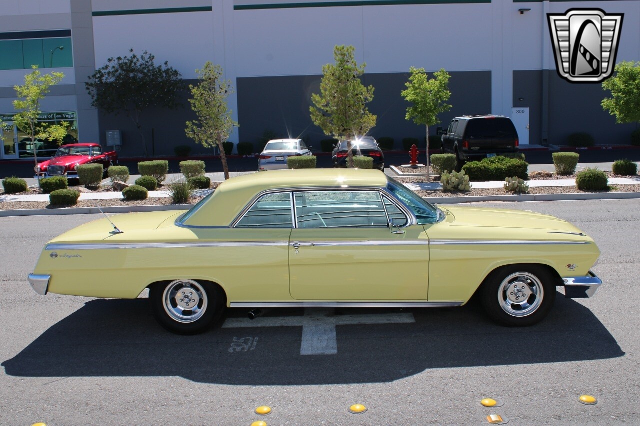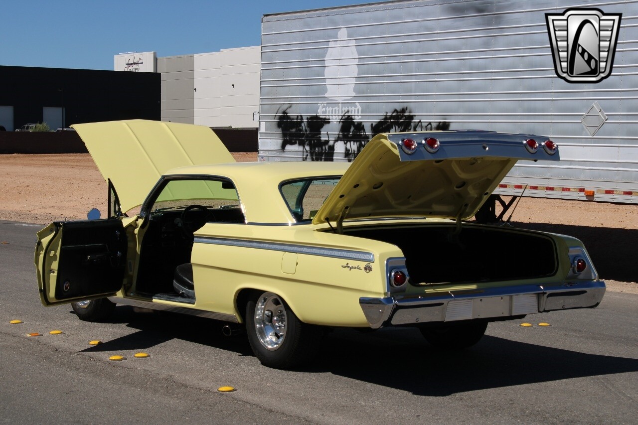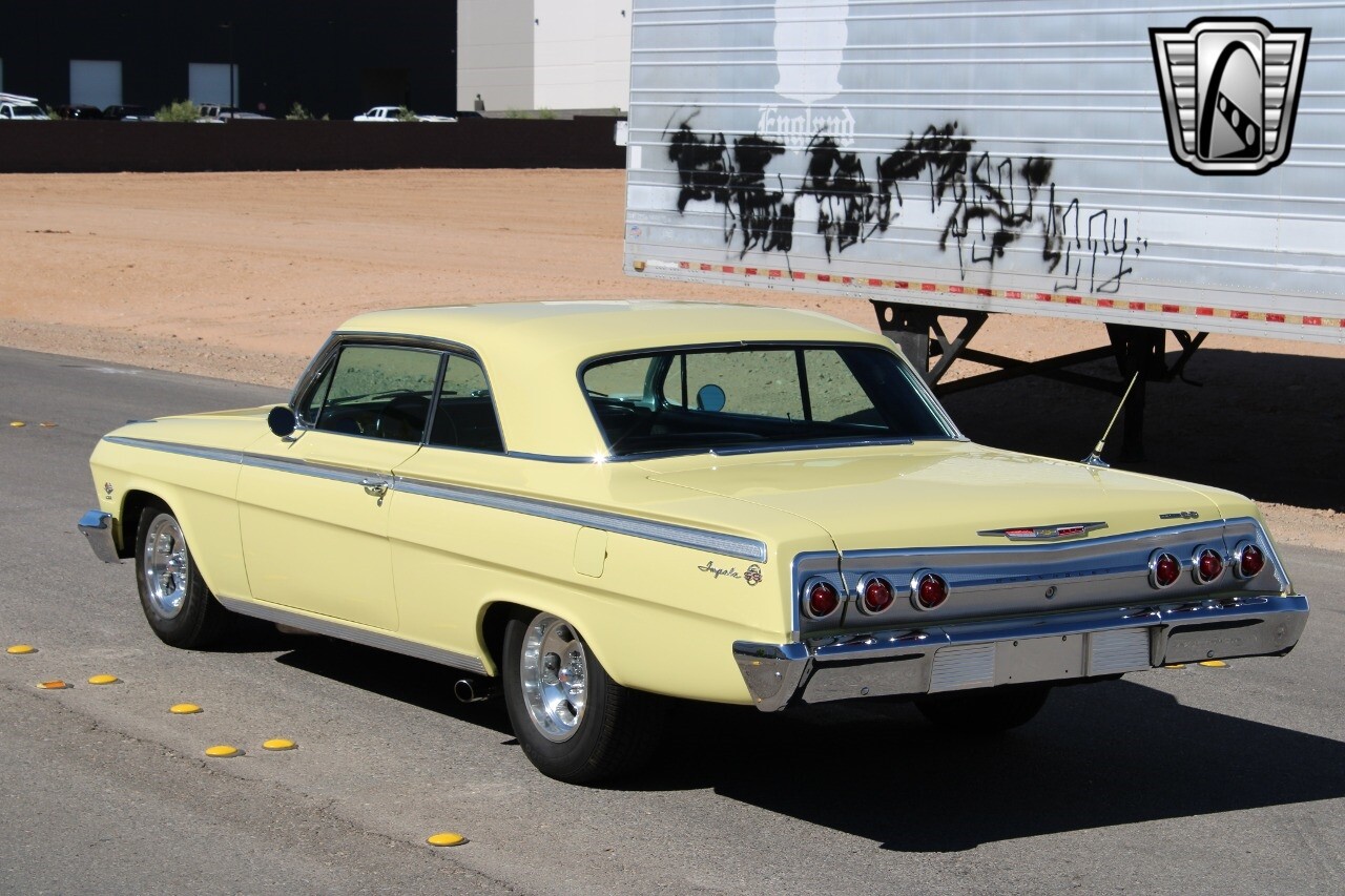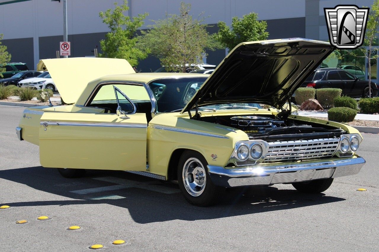 Gateway Classic Cars of Las Vegas presents this 1962 Chevrolet Impala, featuring a vibrant yellow exterior that is sure to turn heads wherever you go. This classic beauty is powered by a robust 409ci V8 engine, paired with an automatic transmission, delivering a smooth and powerful driving experience.
