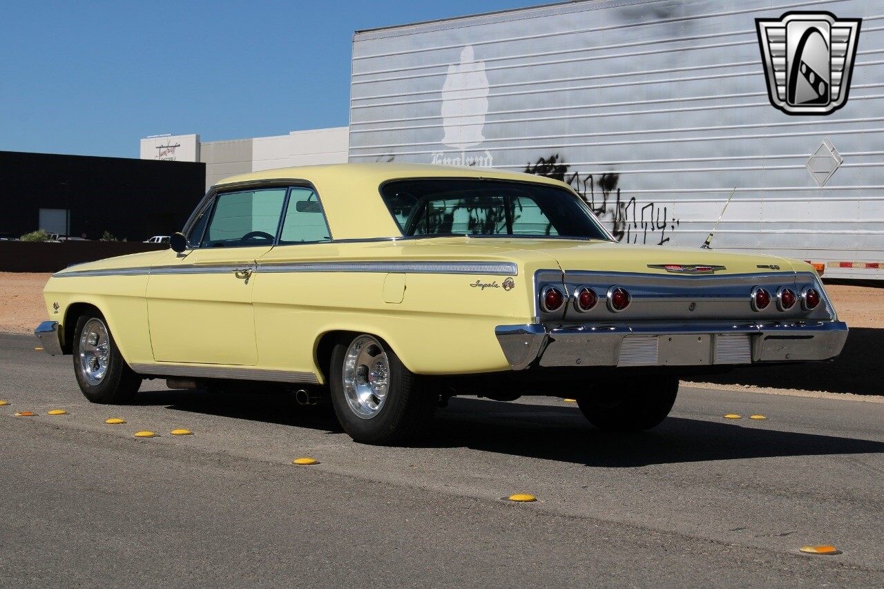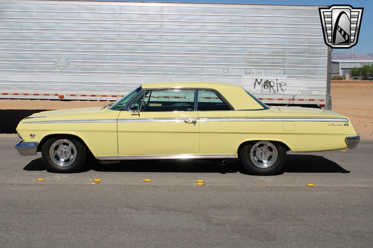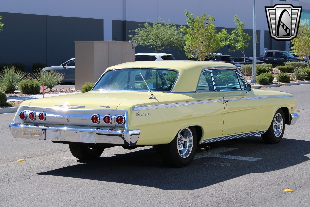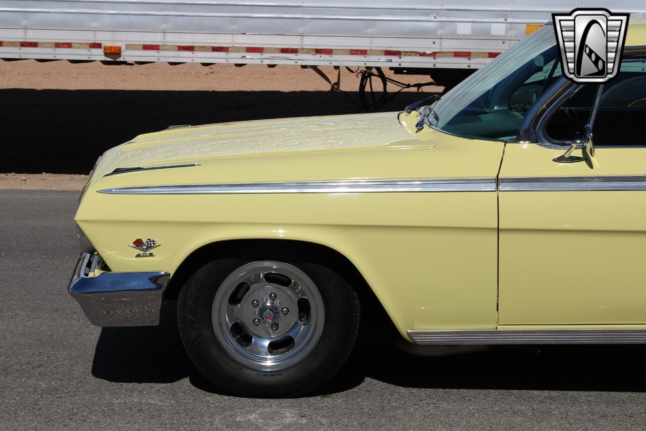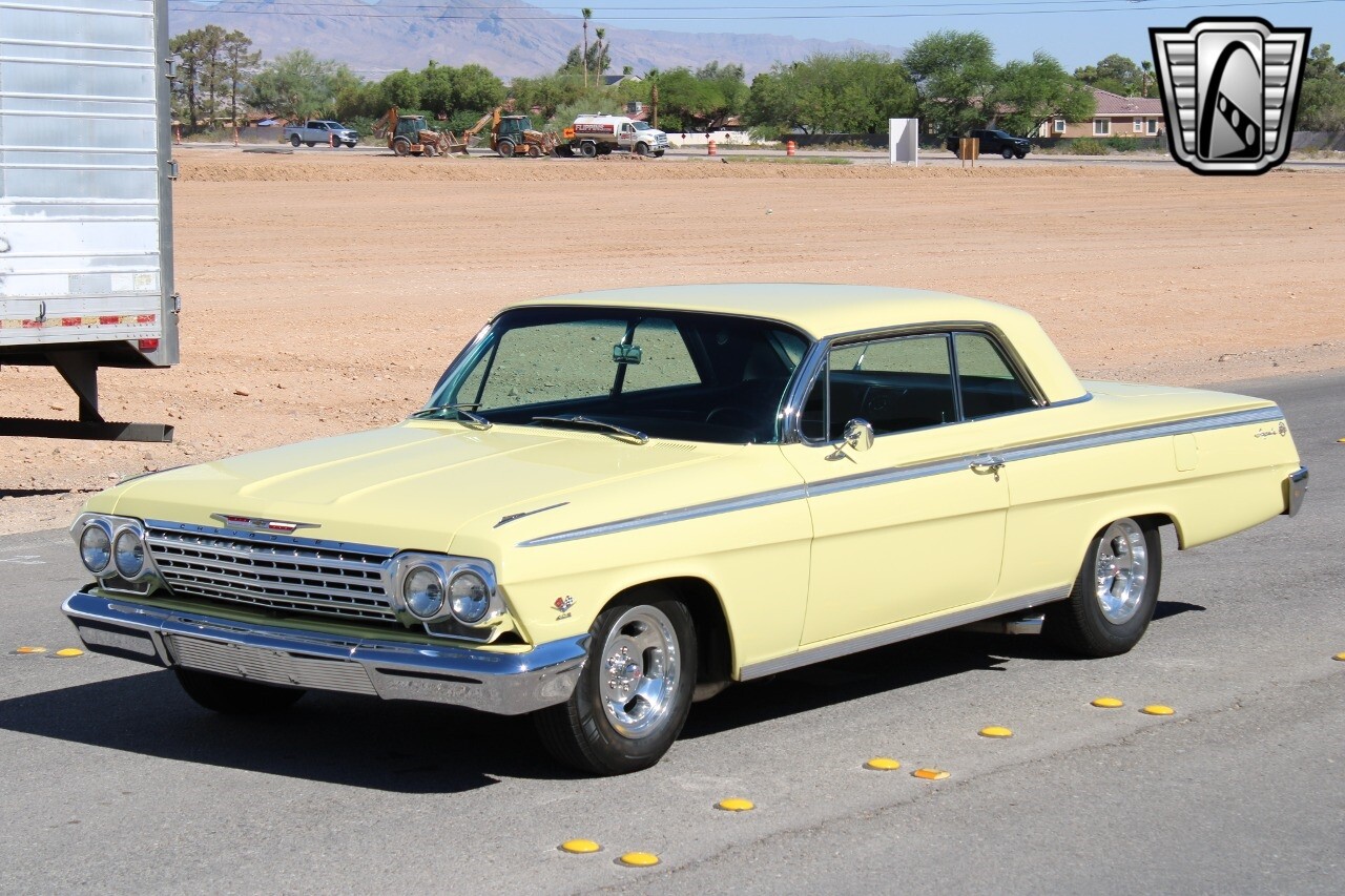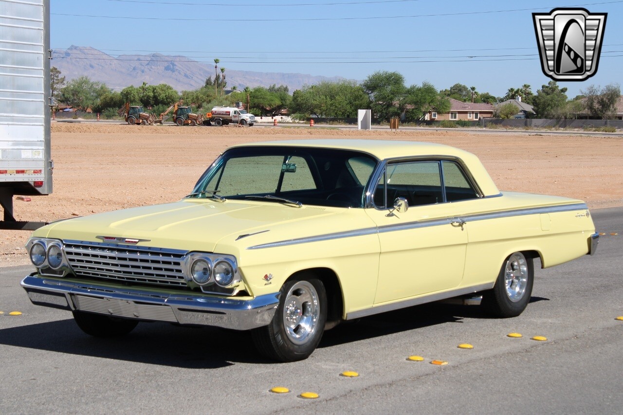 Gateway Classic Cars of Las Vegas presents this 1962 Chevrolet Impala, featuring a vibrant yellow exterior that is sure to turn heads wherever you go. This classic beauty is powered by a robust 409ci V8 engine, paired with an automatic transmission, delivering a smooth and powerful driving experience.