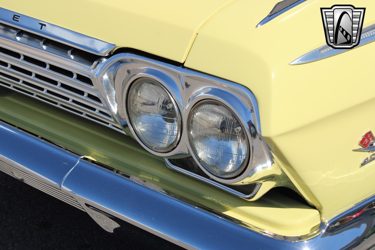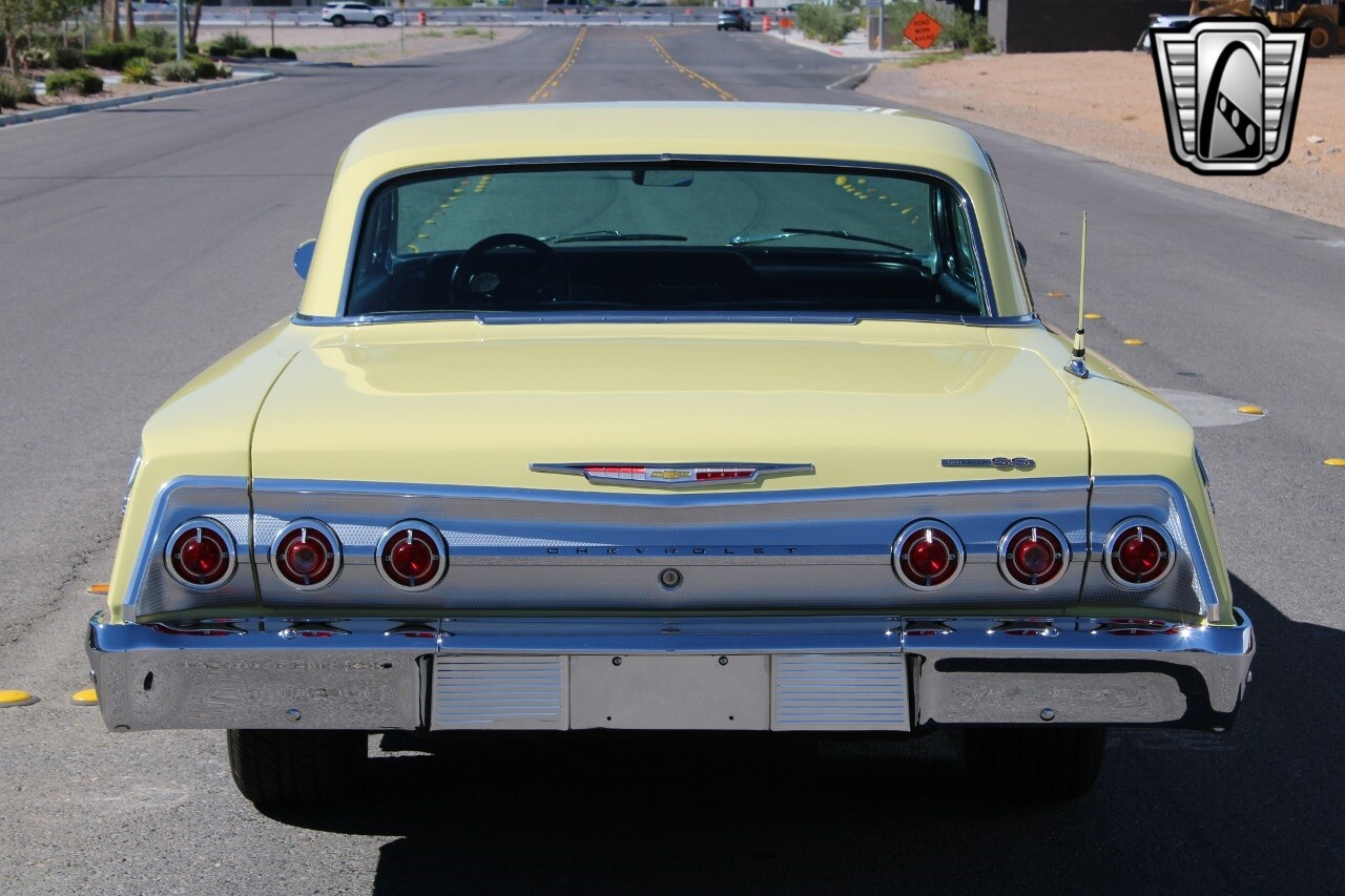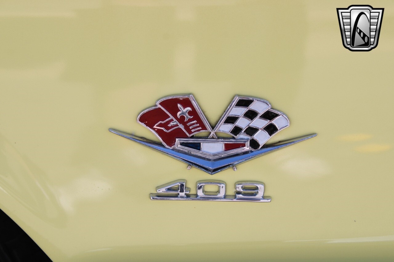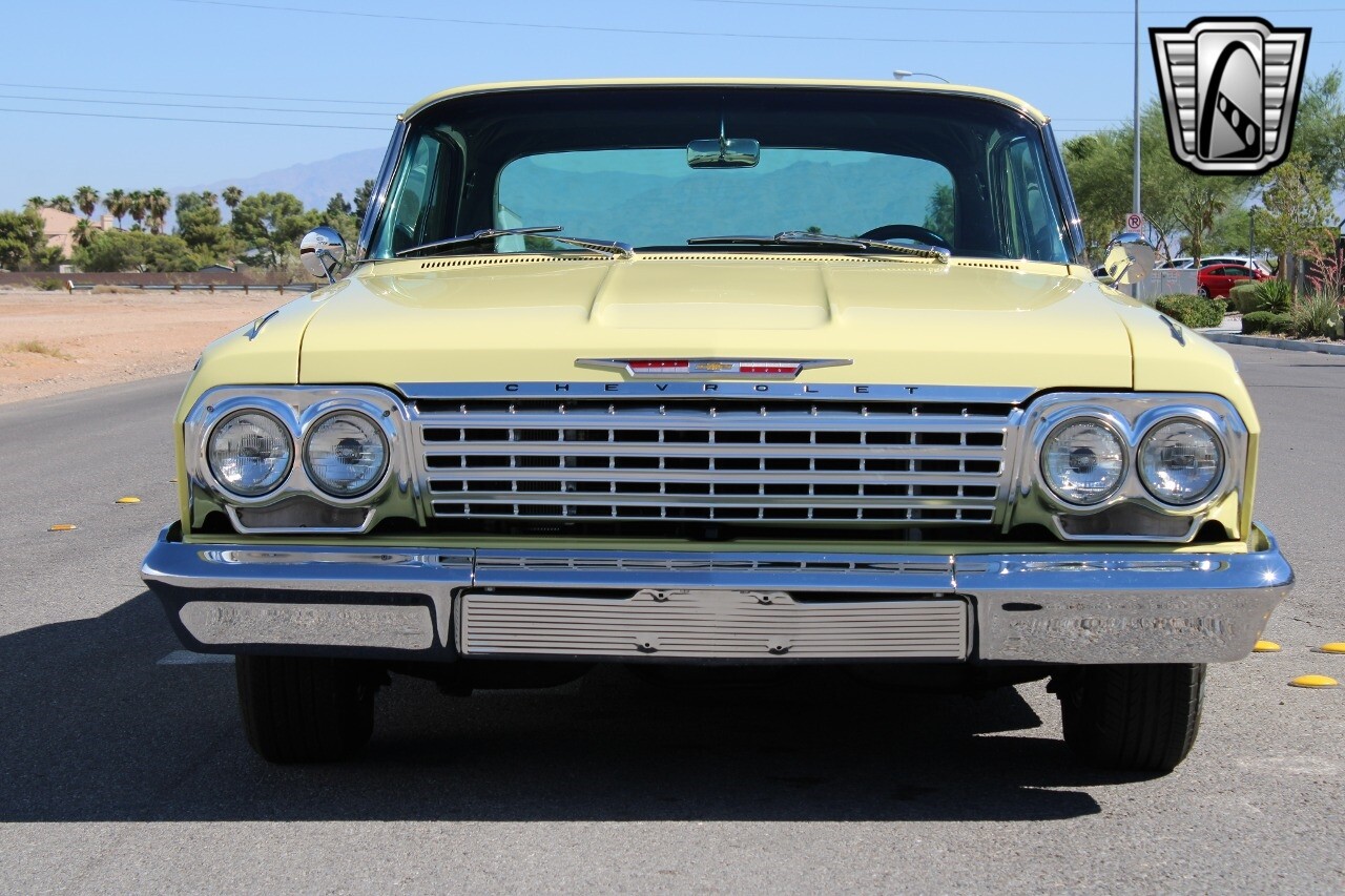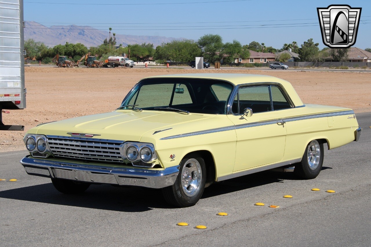 Gateway Classic Cars of Las Vegas presents this 1962 Chevrolet Impala, featuring a vibrant yellow exterior that is sure to turn heads wherever you go. This classic beauty is powered by a robust 409ci V8 engine, paired with an automatic transmission, delivering a smooth and powerful driving experience.