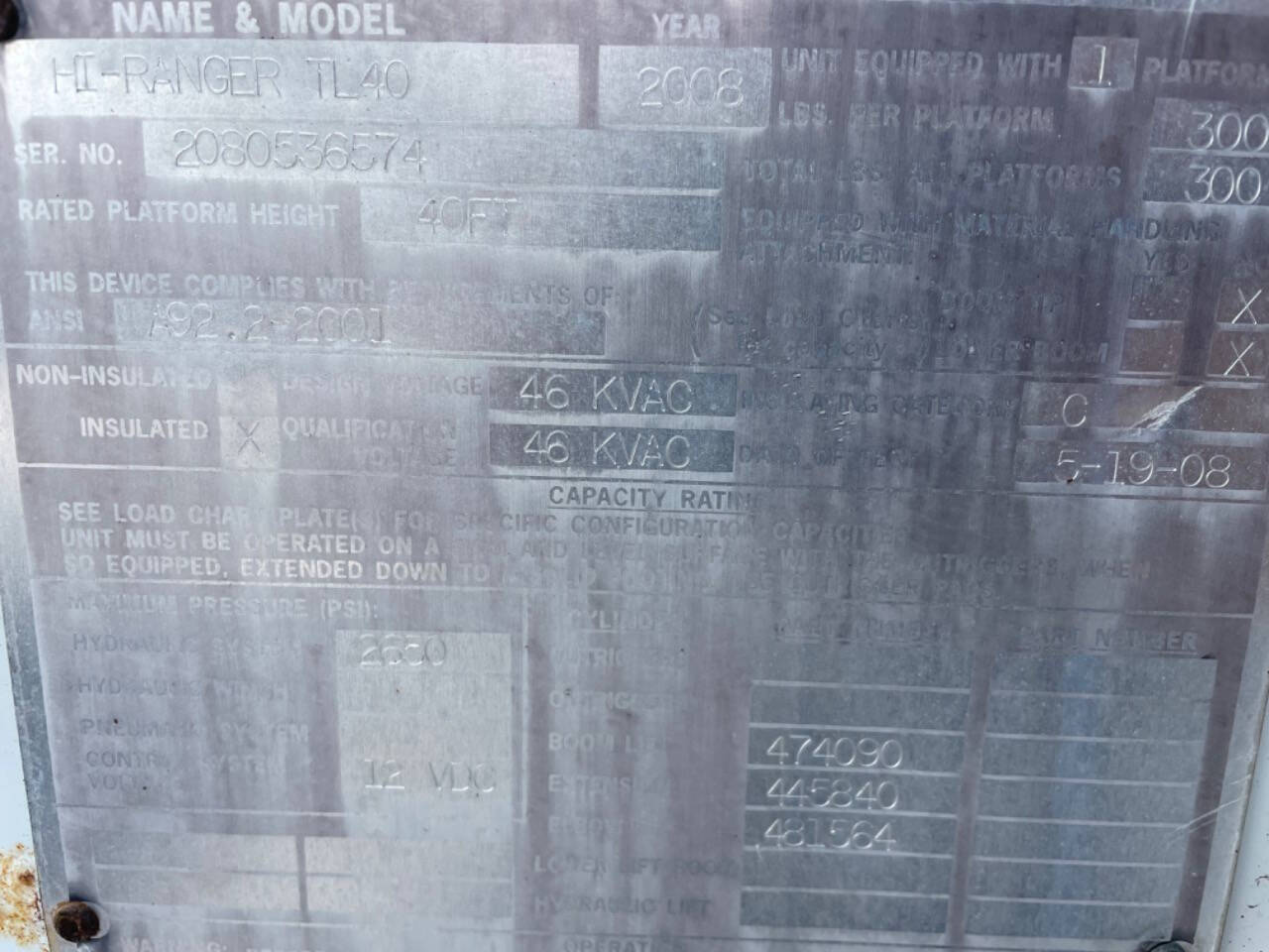ONLY 52K MILES CUMMINS TURBO DIESEL AUTOMATIC TRANSMISSION HI-RANGER TL-40 BUCKET 40 FOOT PLATFORM HEIGHT INSULATED BUCKET CRUISE CONTROL AIR CONDITIONING GOOD TIRES TOW HITCH 19500 GVWR UNDER CDL CUMMINS MOTOR IS PRE DEF FLUID This Cummins powered bucket truck runs out great and operates very well. The engine and transmission are working like they should and fire right up. The pto powered bucket is easy to use and has upper and lower controls. This truck does not have out riggers so you can jump in and get right to work. Feel free to call us with any questions on this rig
