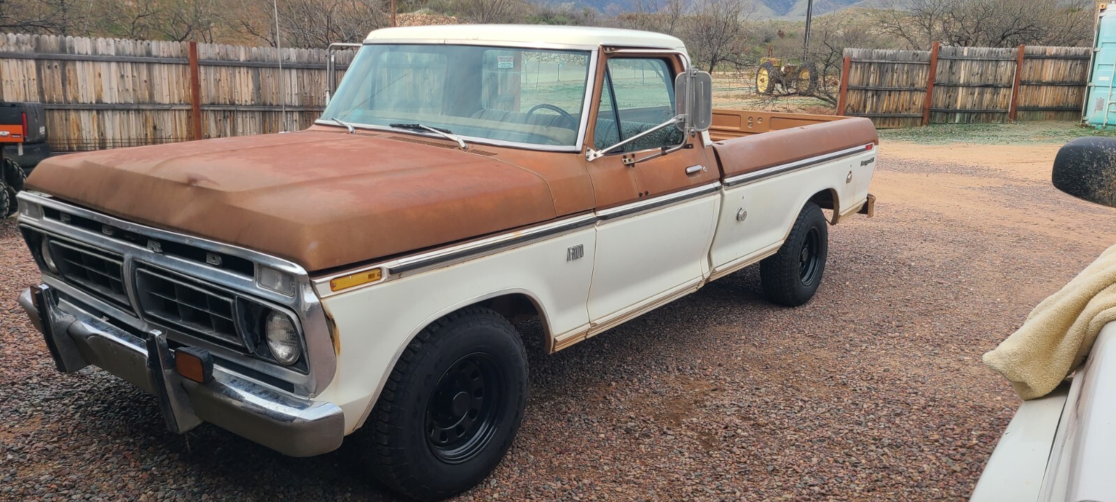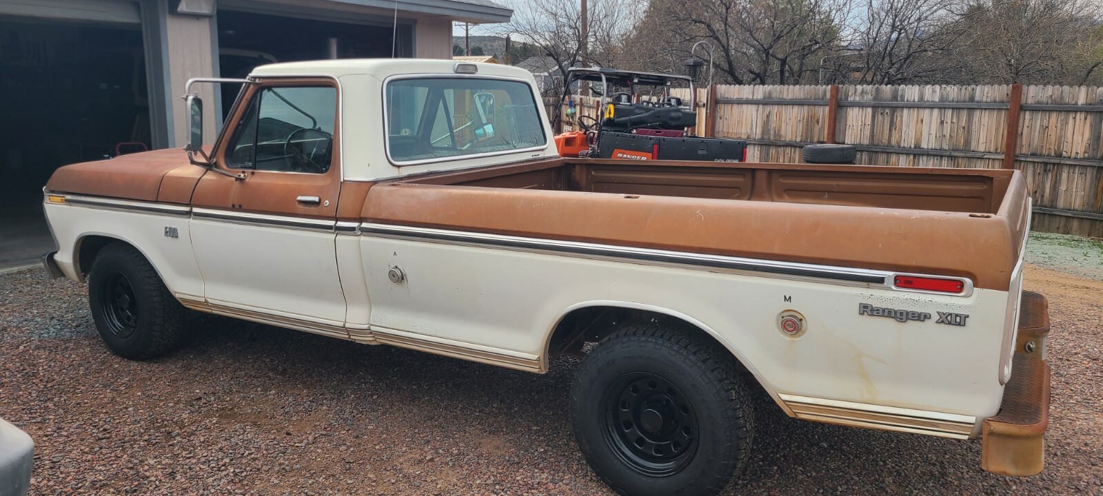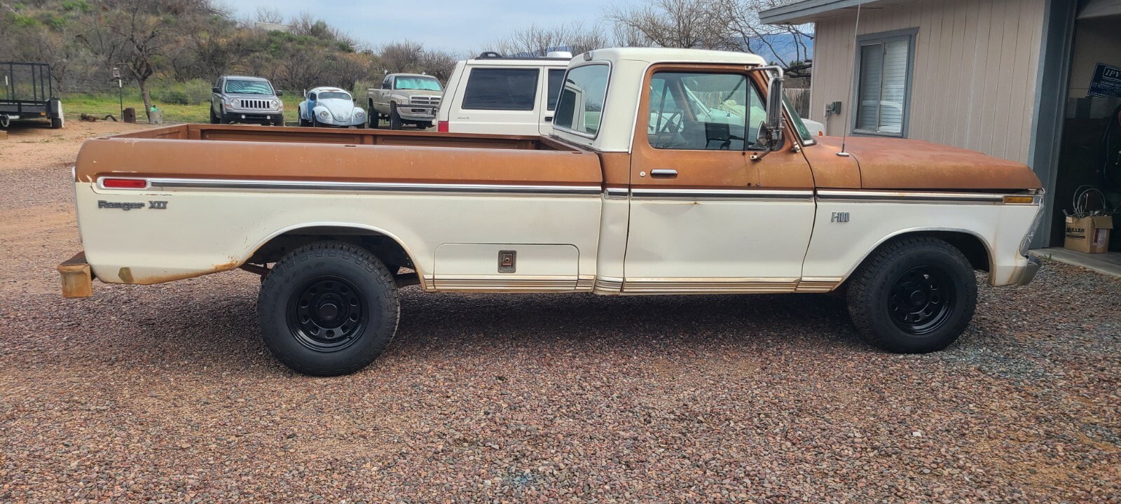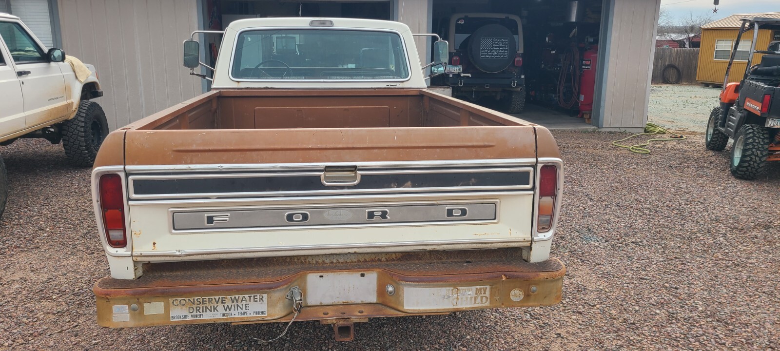 1973 f100,  has a 360 motor and a c6 transmission.   Installed new carpet kit and window rubber along with tires and wheels.  Runs and drives good.  Had been sitting for a few years before i got it so the tanks were drained and cleaned.  Could use the carb adjusted.  I know it needs a rear pinion seal and has a cracked exhaust manifold on the drivers side.  When replacing the carpet i was surprised that there was no rust on the floor or or corners.