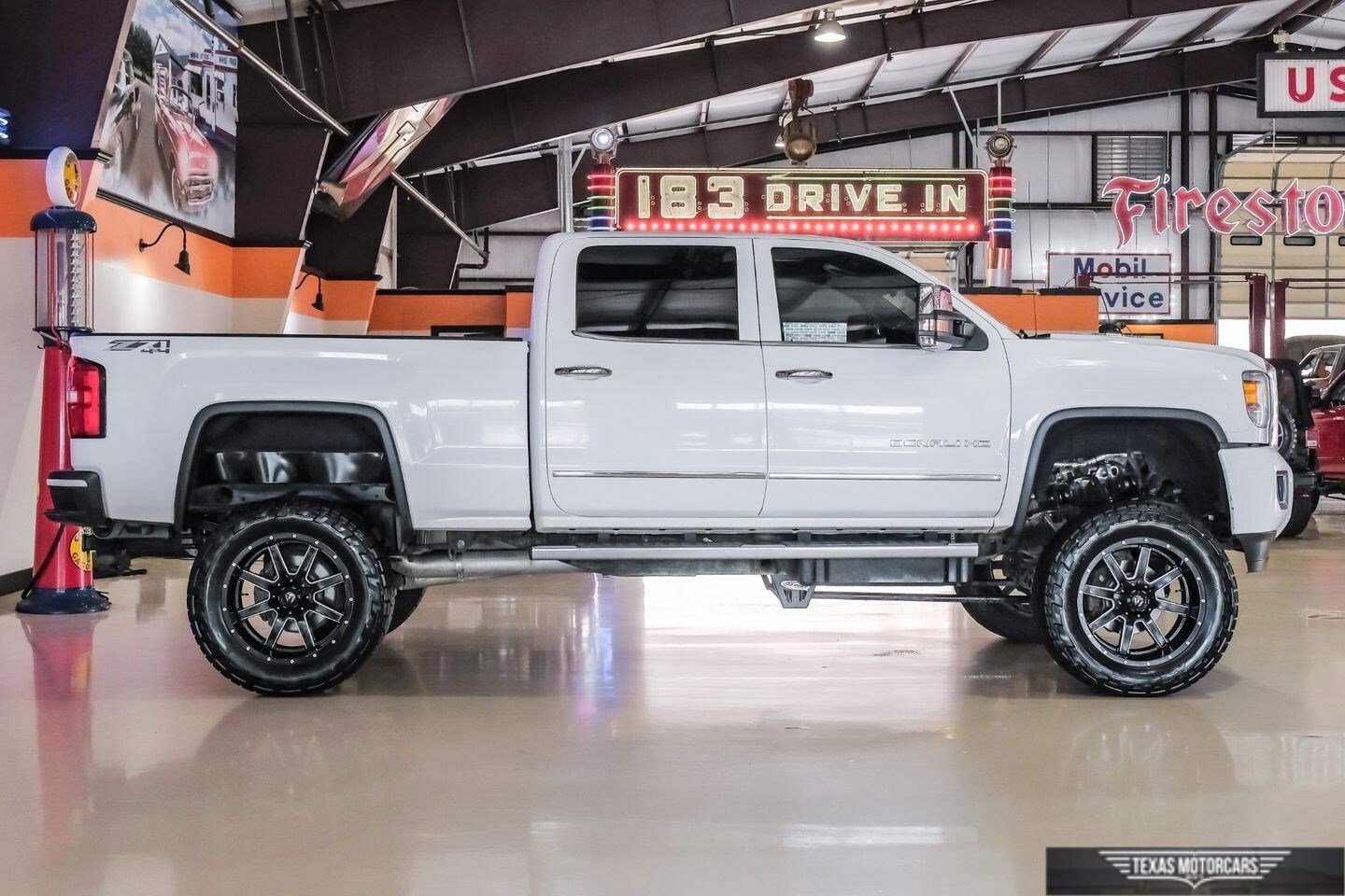 Imposing, impressive and in high demand, this 2015 GMC Sierra 2500 brings all kinds of ability to the table. Built with the supreme power of a Duramax engine, the Sierra is incredible when it comes to heavy duty towing. That capability is key to any truck's value, but the Denali trim package sported by this Sierra is off the charts valuable. Adding tech, utility and serious luxury, this truck's game got blessed big time. When you want the best of both worlds, you want this truck. Features include: custom black Fuel wheels, all-terrain tires, lift kit, chrome assist steps, chrome bumpers, CornerStep rear bumper, chrome grille, spray-in bedliner, power sunroof, remote start system, led bed lighting, chrome capped tow mirrors, deep tinted glass, trailer brake controller, rearview park assist camera, universal home remote, rear-seat dvd entertainment system, Weather Tech floor mats, premium leather seats, 10-way power heated/cooled front seats, GMC Infotainment system, SiriusXM satellite radio, premium Bose sound system, Bluetooth connectivity, steering wheel mounted cruise control and LOTS more!
