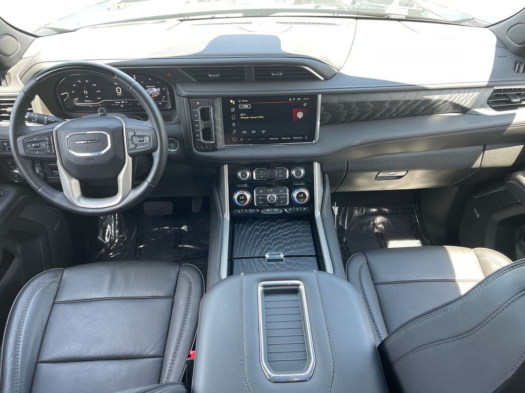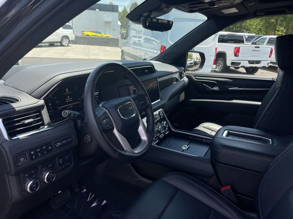 THIS VEHICLE INCLUDES THE FOLLOWING FEATURES AND OPTIONS: Yukon Denali 4WD, 14 Speakers, 15 Diagonal Multi-Color Head-Up Display, 2 Presets For Outside Rearview Mirrors, 3 Years of GMC Connected Services, 3 Years of OnStar Safety & Security, 3.23 Rear Axle Ratio, 3rd Row 60/40 Power-Folding Split-Bench Seat, 3rd row seats: split-bench, 4-Wheel Disc Brakes, ABS brakes, Adaptive suspension, Air Conditioning, Alloy wheels, AM/FM radio: SiriusXM with 360L, AM/FM Stereo, Apple CarPlay/Android Auto, Auto High-beam Headlights, Auto-dimming door mirrors, Auto-dimming Rear-View mirror, Auto-leveling suspension, Automatic Emergency Braking, Automatic temperature control, Bodyside moldings, Bose 14-Speaker Surround w/CenterPoint, Brake assist, Bright Front & Rear Door Sill Plates, Bumpers: body-color, Chrome Door Handles w/Body-Color Strip, Compass, Cruise Control, Delay-off headlights, Driver door bin, Driver vanity mirror, Dual Exhaust System, Dual front impact airbags, Dual front side impact airbags, Electronic Stability Control, Emergency communication system: OnStar and GMC connected services capable, Enhanced Automatic Emergency Braking, Floor Console, Following Distance Indicator, Forward Collision Alert, Four wheel independent suspension, Front & Rear Park Assist, Front anti-roll bar, Front Bucket Seats, Front Center Armrest, Front dual zone A/C, Front fog lights, Front Pedestrian Braking, Front reading lights, Fully automatic headlights, Galvano Bodyside Moldings, Garage door transmitter, Hands-Free Power Programmable Rear Liftgate, HD Surround Vision, Heads-Up Display, Heated & Ventilated Driver & Front Passenger Seats, Heated 2nd Row Outboard Position Seats, Heated door mirrors, Heated Driver & Front Passenger Seats, Heated front seats, Heated rear seats, Heated Steering Wheel, Heated steering wheel, Hill Descent Control, Illuminated entry, Inside Rear-View Auto-Dimming Mirror, IntelliBeam Automatic High Beam On/Off, Lane Change Alert w/Side Blind Zone Alert, Lane Keep Assist w/Lane Departure Warning, Low tire pressure warning, Magnetic Ride Control Suspension, Memory seat, Navigation System, Occupant sensing airbag, Outside Heated Power-Adjustable Mirrors, Outside temperature display, Overhead airbag, Overhead console, Panic alarm, Passenger door bin, Passenger vanity mirror, Perforated Leather Seating Surfaces, Power door mirrors, Power driver seat, Power Liftgate, Power passenger seat, Power Release 2nd Row Bucket Seats, Power steering, Power Tilt & Telescopic Steering Column, Power windows, Rain sensing wipers, Rear air conditioning, Rear anti-roll bar, Rear Cross Traffic Alert, Rear Pedestrian Alert, Rear reading lights, Rear window defroster, Rear window wiper, Remote keyless entry, Roof rack: rails only, Safety Alert Seat, Security system, SiriusXM w/360L, Speed-sensing steering, Split folding rear seat, Spoiler, Steering wheel memory, Steering wheel mounted audio controls, Tachometer, Telescoping steering wheel, Tilt steering wheel, Traction control, Trip computer, Turn signal indicator mirrors, Universal Home Remote, Variably intermittent wipers, Ventilated front seats, Voltmeter, Wheels: 20 x 9 6-Spoke Polished Aluminum, and Wireless Charging.