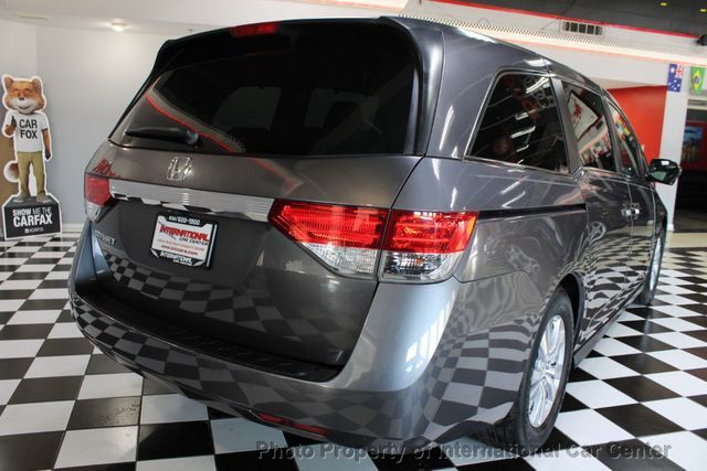 This 2015 Honda Odyssey 4dr 5dr EX-L with Navi features a 3.5L V6 Cylinder 6cyl Gasoline engine. It is equipped with a 6 Speed Automatic transmission. The vehicle is Modern Steel Metallic with a Gray, leather Leather interior. It is offered As-Is, extended warranty is available. - 2015 Honda Odyssey EXL 3.5L V6 FWD with auto trans in Modern Steel/Gray Leather! Clean carfax with no accidents! Clean southern car from Florida! Just serviced including valve cover gasket, all 4 brake pads and rotors,front sway bar links and fresh oil change! Fully loaded with *navi *backup cam *sunroof *rear DVD *power sliding doors *bluetooth *aux *cd player *heated seats *cruise control and more! Call us today to schedule a test drive!! We finance anyone! Good credit, bad credit, no credit, NO PROBLEM!!!! Call us today855-373-0973! For complete interior and exterior pictures and further details along with the free Carfax report, visit our website at Advertised price is subject to change depending on buyers credit if financing with our lenders. - This Honda is in Good overall exterior condition, Good overall interior condition, Leather seats - Air Conditioning, Climate Control, Dual Zone Climate Control, Cruise Control, Tinted Windows, Power Steering, Power Windows, Power Mirrors, Leather Steering Wheel, Leather Shifter, Power Drivers Seat, Power Passenger Seat, Memory Seat Position, Rear Air Conditioning, Clock, Tachometer, Digital Info Center, Homelink System, Tilt Steering Wheel, Telescoping Steering Wheel, Steering Wheel Radio Controls, Sunroof, Moonroof, Driver Airbag, Passenger Airbag, Side Airbags, Security System, ABS Brakes, Traction Control, Dynamic Stability, Rear Defogger, Intermittent Wipers, AM/FM, CD Player, Anti-Theft, Alloy Wheels, Leather Interior Surface, Automatic Headlights, Child Safety Door Locks, Daytime Running Lights, Electrochromic Exterior Rearview Mirror, Electrochromic Interior Rearview Mirror, Electronic Brake Assistance, Front Power Lumbar Support, Leather Seat, Navigation Aid, Rear Wiper, Second Row Folding Seat, Telematics System, Tire Pressure Monitor 3rd Row Seating, Aux. Audio Input, Bluetooth, Carpeted Floor Mats, Center Arm Rest, Child Proof Door Locks, Daytime Running Lights, Dual Power Sliding Doors, Front Heated Seats, Heated Mirrors, Navigation System, Overhead Console, Power Lift Gate, Power Sliding Door, Premium Sound, Rear Spoiler, Rear Spoiler, Rear Wipers, Remote Fuel Door, Reverse Camera, Roll Stability Control, Side Curtain Airbags, Tire Pressure Monitor, Vanity Mirrors - Contact Sales Department at855-373-0973 or for more information. -