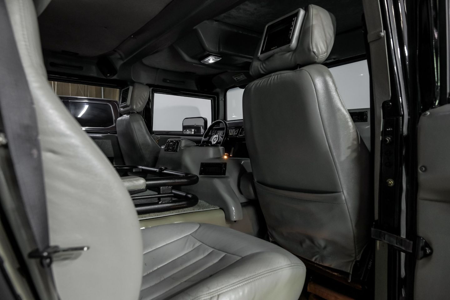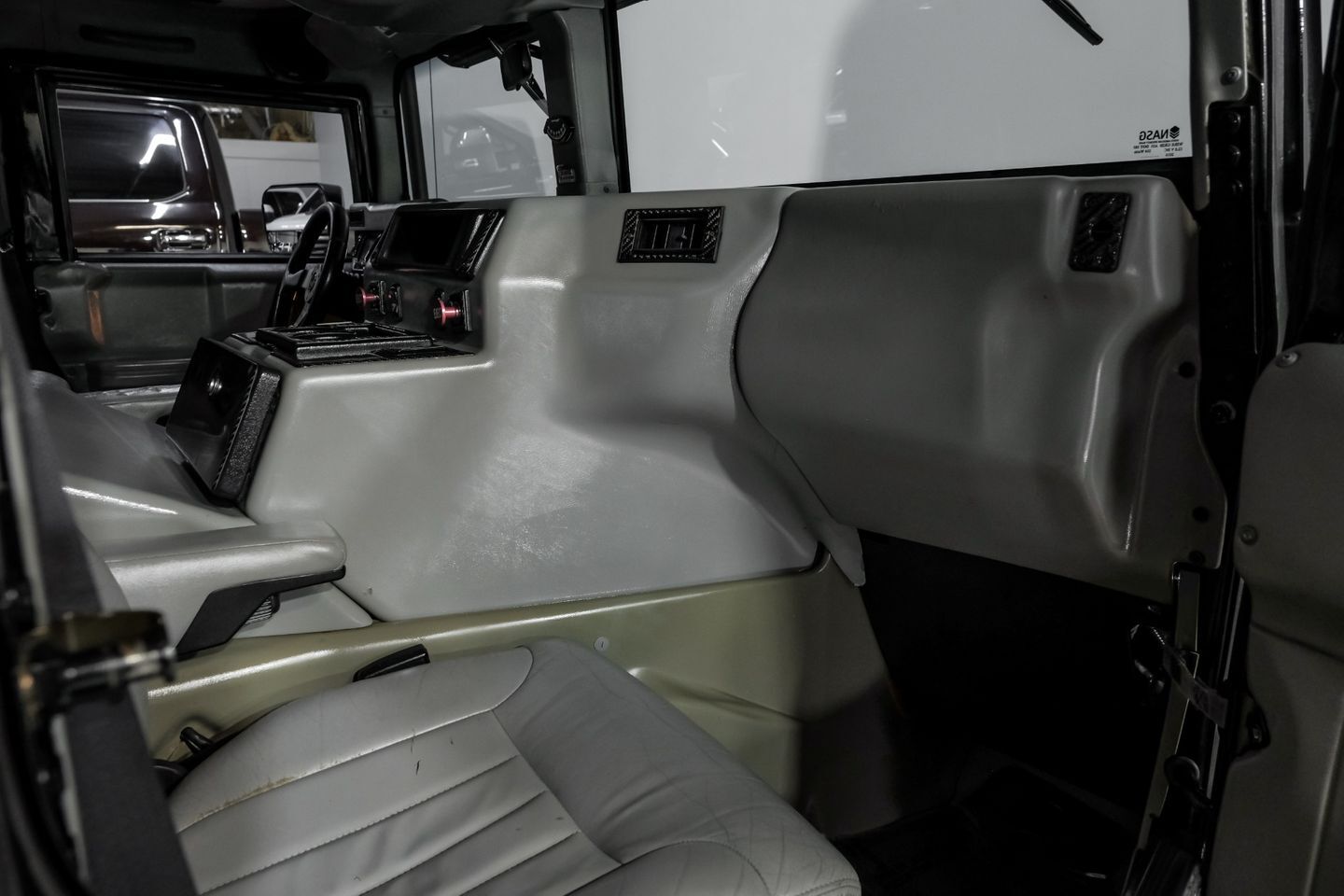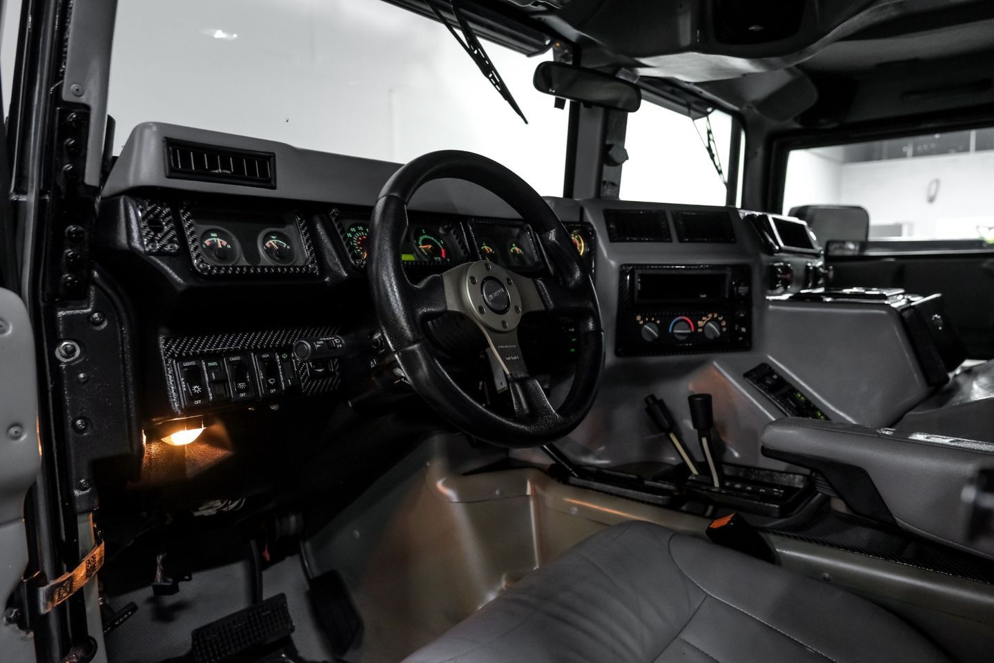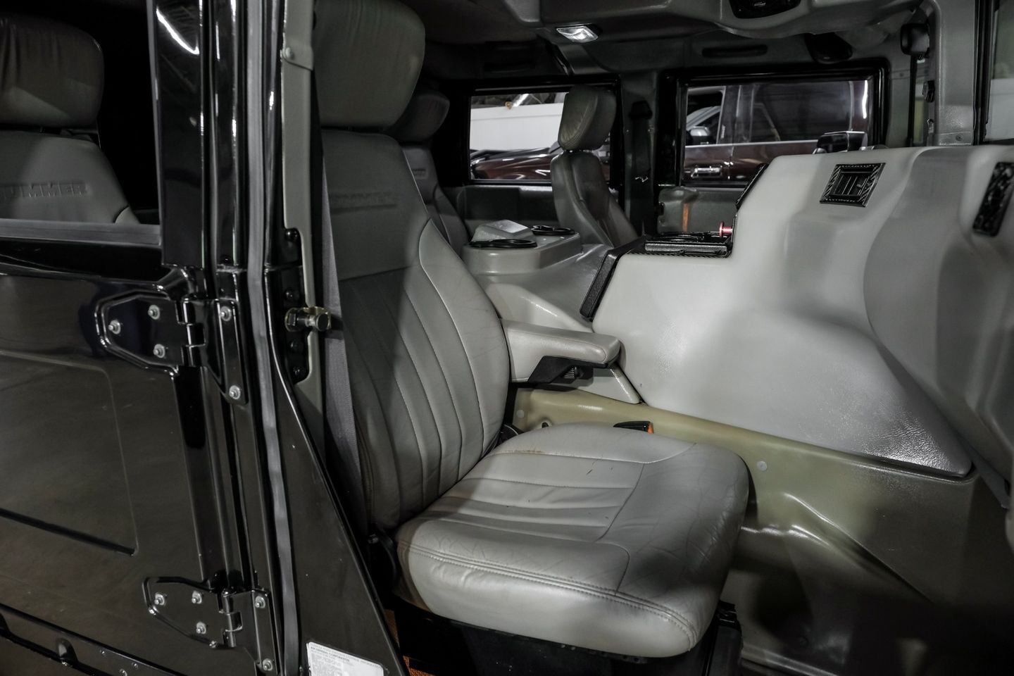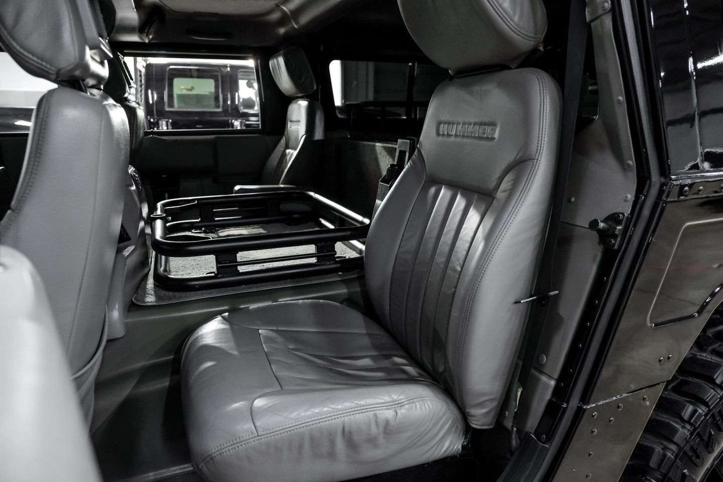 Step inside and be greeted by a spacious and luxurious interior, featuring plush gray leather seats that provide ultimate comfort for both driver and passengers. The HUMMER H1's interior is designed with both functionality and style in mind, offering ample room for all your adventure gear while ensuring a comfortable ride no matter the distance.