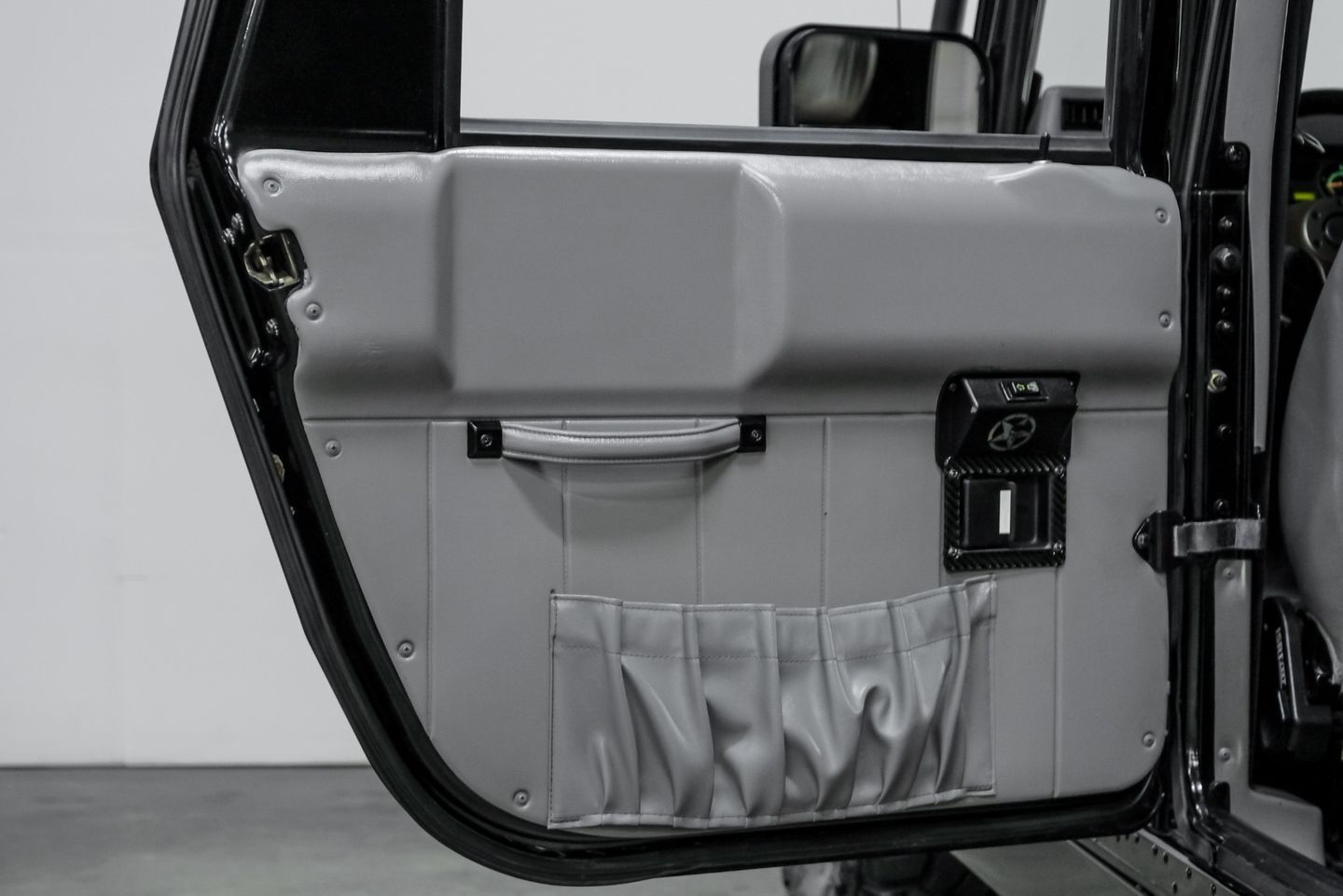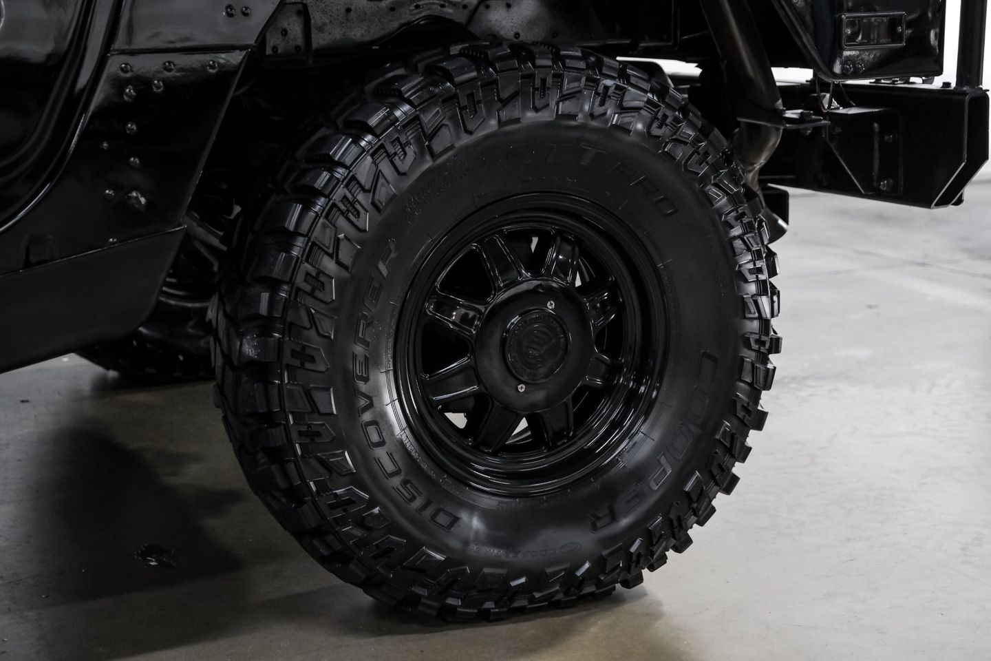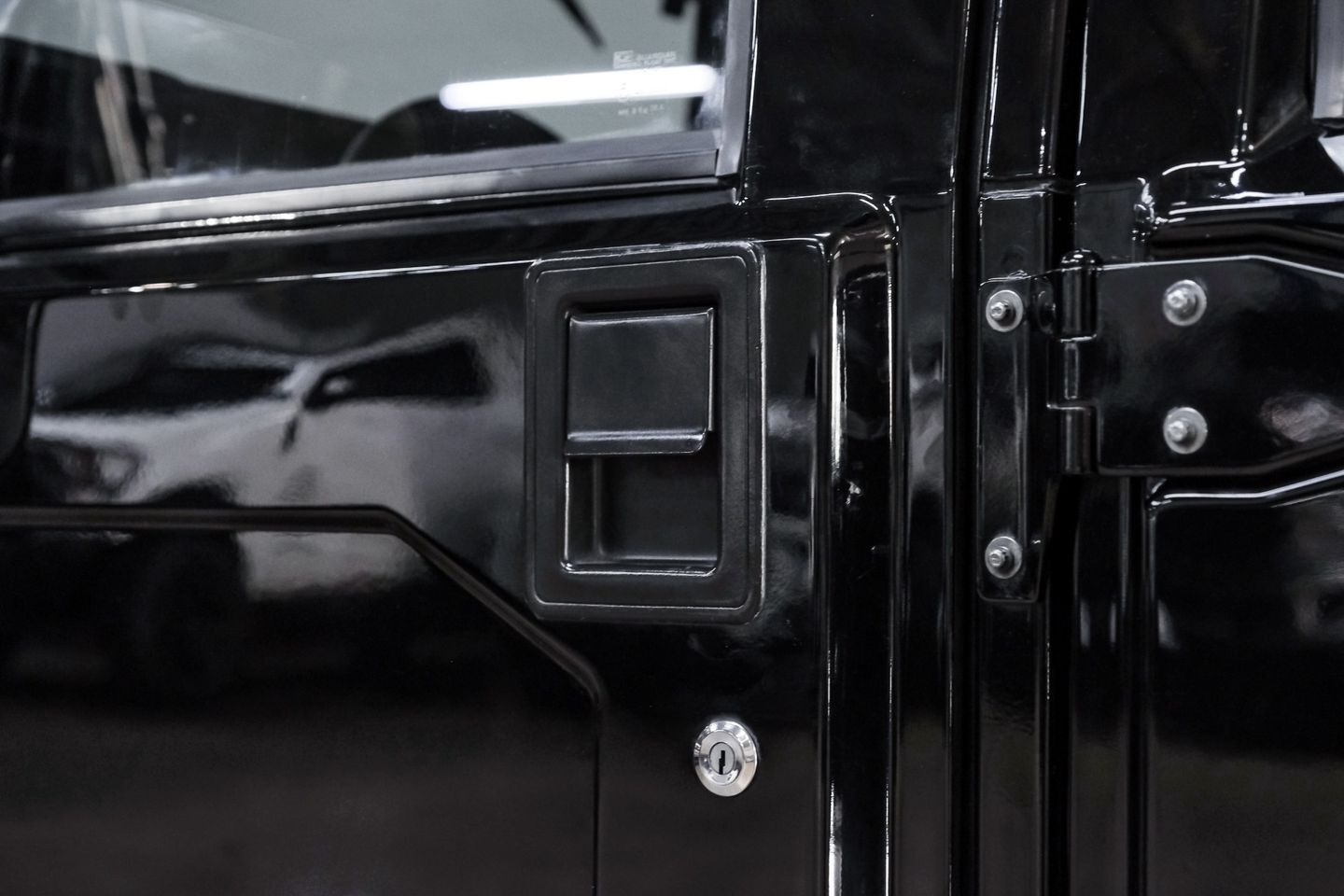 Dressed in a sleek and commanding black exterior, this HUMMER H1 Wagon is a head-turner from every angle. The robust and iconic design is complemented by a GOBI roof rack, perfect for hauling extra gear, and access ladders that make reaching your cargo a breeze. The addition of LED lighting not only enhances visibility during night-time excursions but also adds a modern touch to this classic off-road titan.