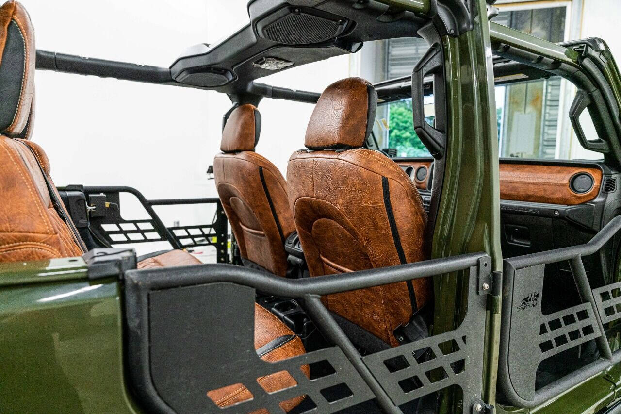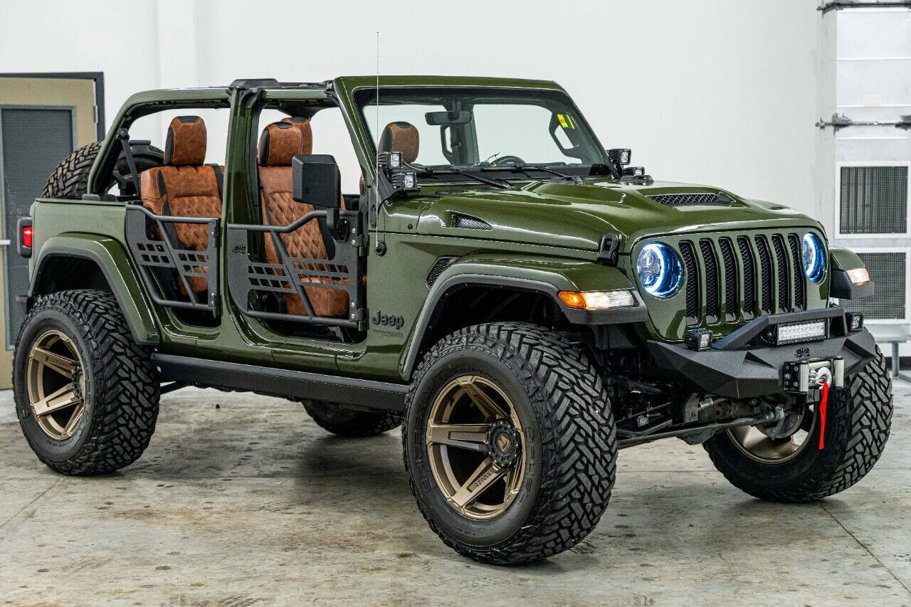 YEAR: 2021 TOP: Convertible COLOR: High Gloss Sarge Green TRIM: SoFlo Custom LIFT: 3.5” TIRES: 38” Fuel Gripper RIMS: 20 Bronze SFJ HOOD: Looking Glass GRILL: Stubby Steel Bumper with Winch SIDESTEPS: Steel HEADLIGHTS: Halo SPECIAL FEATURES: One Touch Roof WEATHERPROOF INTERIOR: Moroccan Spice WHAT MAKES THIS TRUCK SPECIAL: Stunning black Wrangler with a one touch convertible top. CALL US OR COME SEE THESE CUSTOM TRUCKS IN PERSON Location 1: 1430 W Broward, BLVD Fort Lauderdale, FL 33312 855-873-7632 Location 2: 2720 Okeechobee BLVD West Palm Beach, FL 33406 855-873-7632 NEW E-PURCHASE SYSTEM - Customers never have to leave the comfort of their home couch to purchase a SoFlo Jeeps or Apocalypse 6x6 truck. We offer online payment, financing and video walkarounds. We ship our trucks worldwide to any and every location. Have a trade-in? Not a problem at all, as WE ACCEPT TRADE-INS NATIONWIDE AND YOU NEVER PAY TO SHIP IT. We make buying and receiving your dream truck beyond simple.