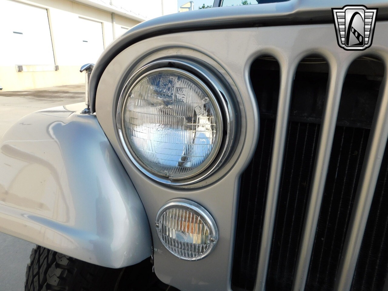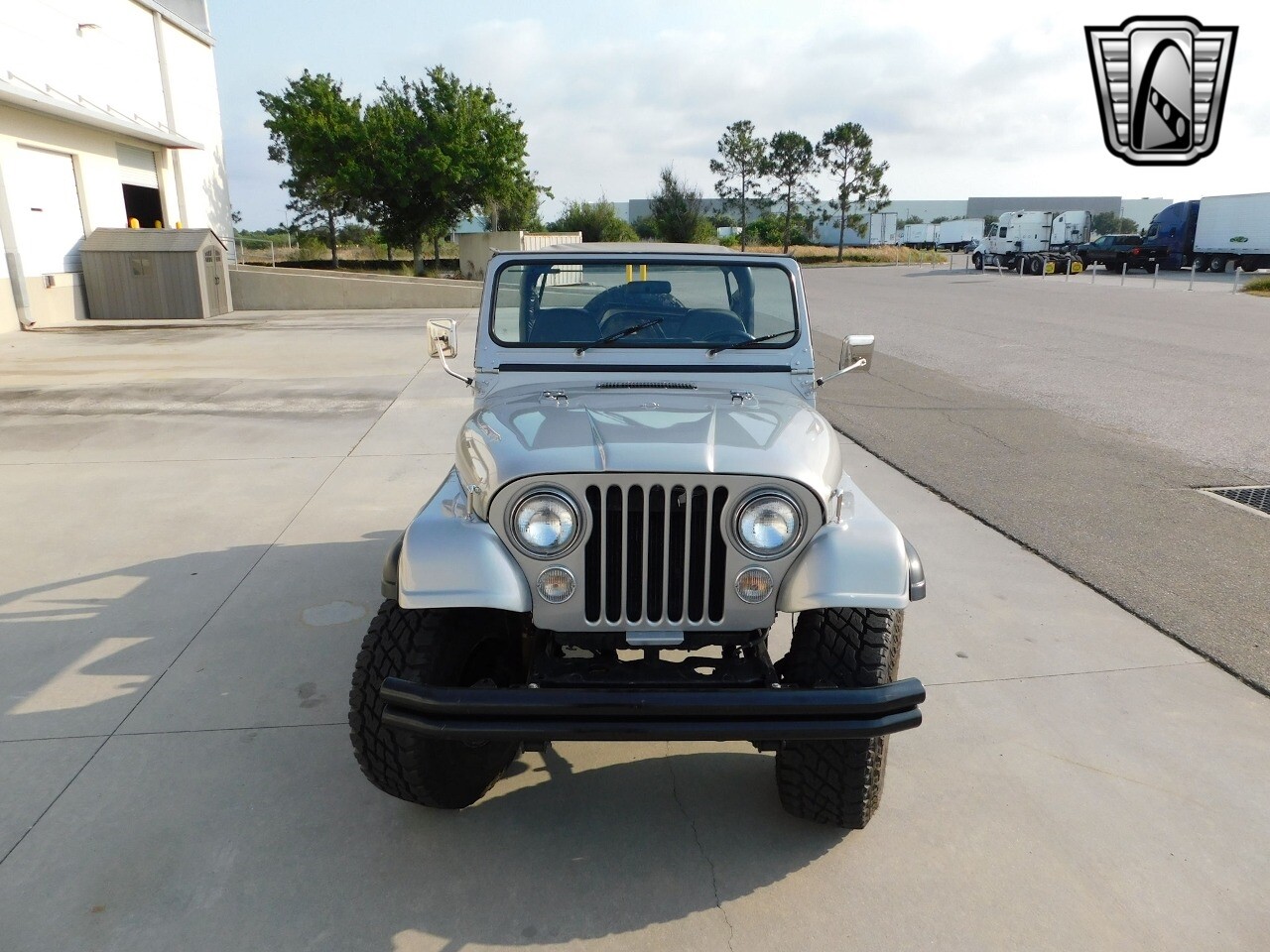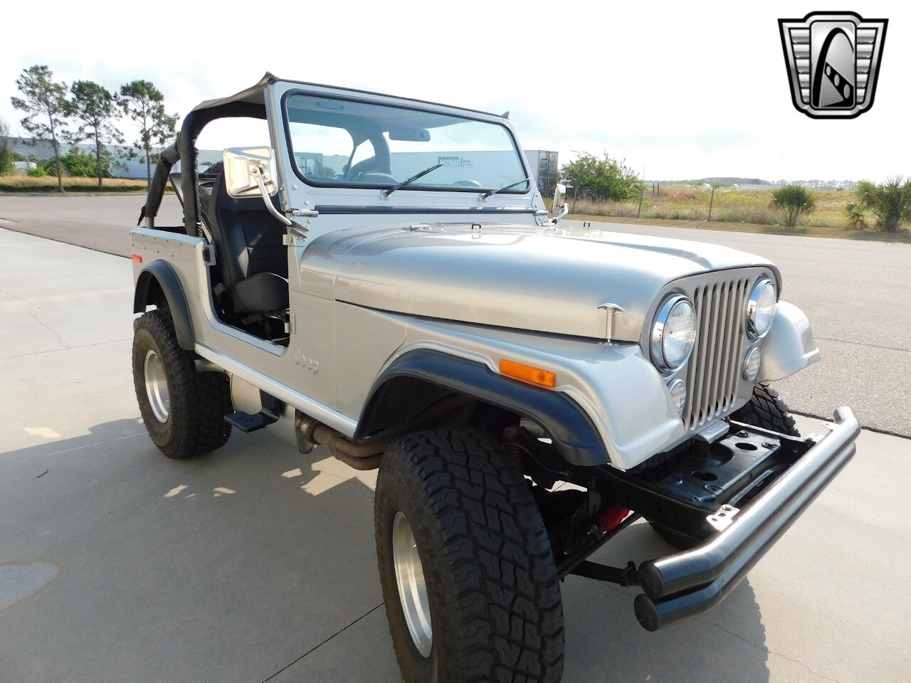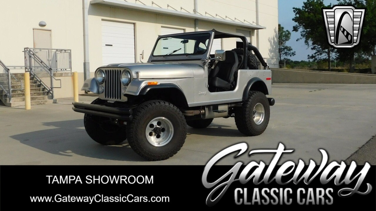 Gateway Classic Cars of Tamps presents this 'beefy' V8 powered, 1978 Jeep CJ-7 Renegade. This 70s and 80s Icon has presence for days! One look and you're instantly flashed back to parties at the lake and adventures off road. This macho CJ-7 has an aggressive stance thanks to spun aluminum wheels wrapped in 35" tires. The big wheels and lift add to the CJ-7s go anywhere prowess. The body is finished in silver over black vinyl interior. The front buckets and rear bench seat are rip free and the dash features a full complement of working gauges. Under the hood is the venerable AMC 304 V8 breathing through headers dumping through side mounted mufflers that exit the V8s bark right in front of the rear wheels. This 78 CJ-7 sounds like a boss! The experience is enhanced by a three-speed manual sending power to the rear or all 4 wheels thanks to a two-speed transfer case. You can enjoy your favorite tunes with the AM/FM radio with CD while bombing around the beach or blazing new trails. Additionally, the Bikini top will keep the sun off and if the occasion arises there's a pair of soft doors for added weather protection. However, there is no full top for this Jeep.
