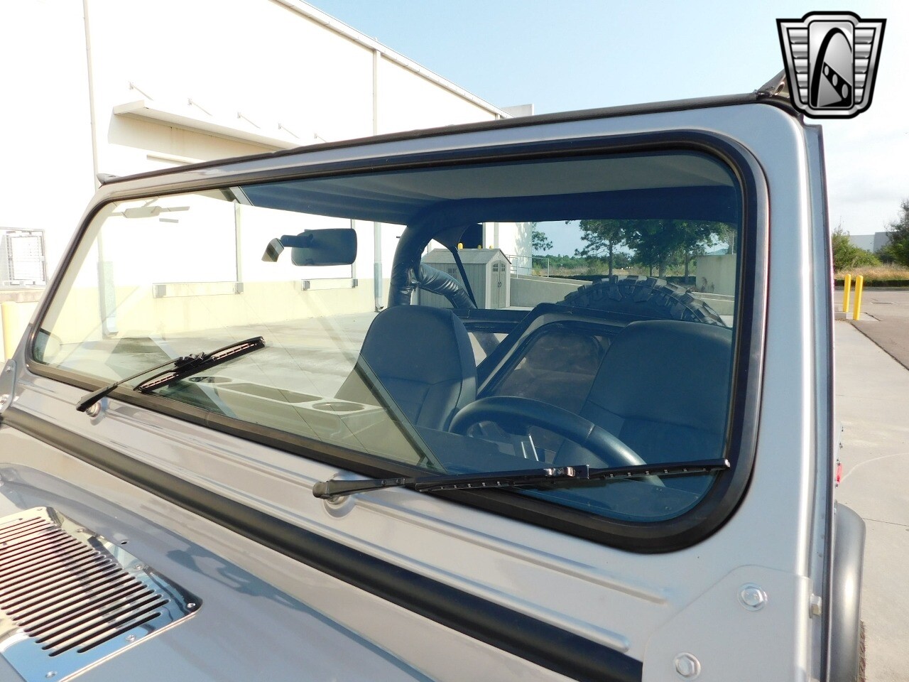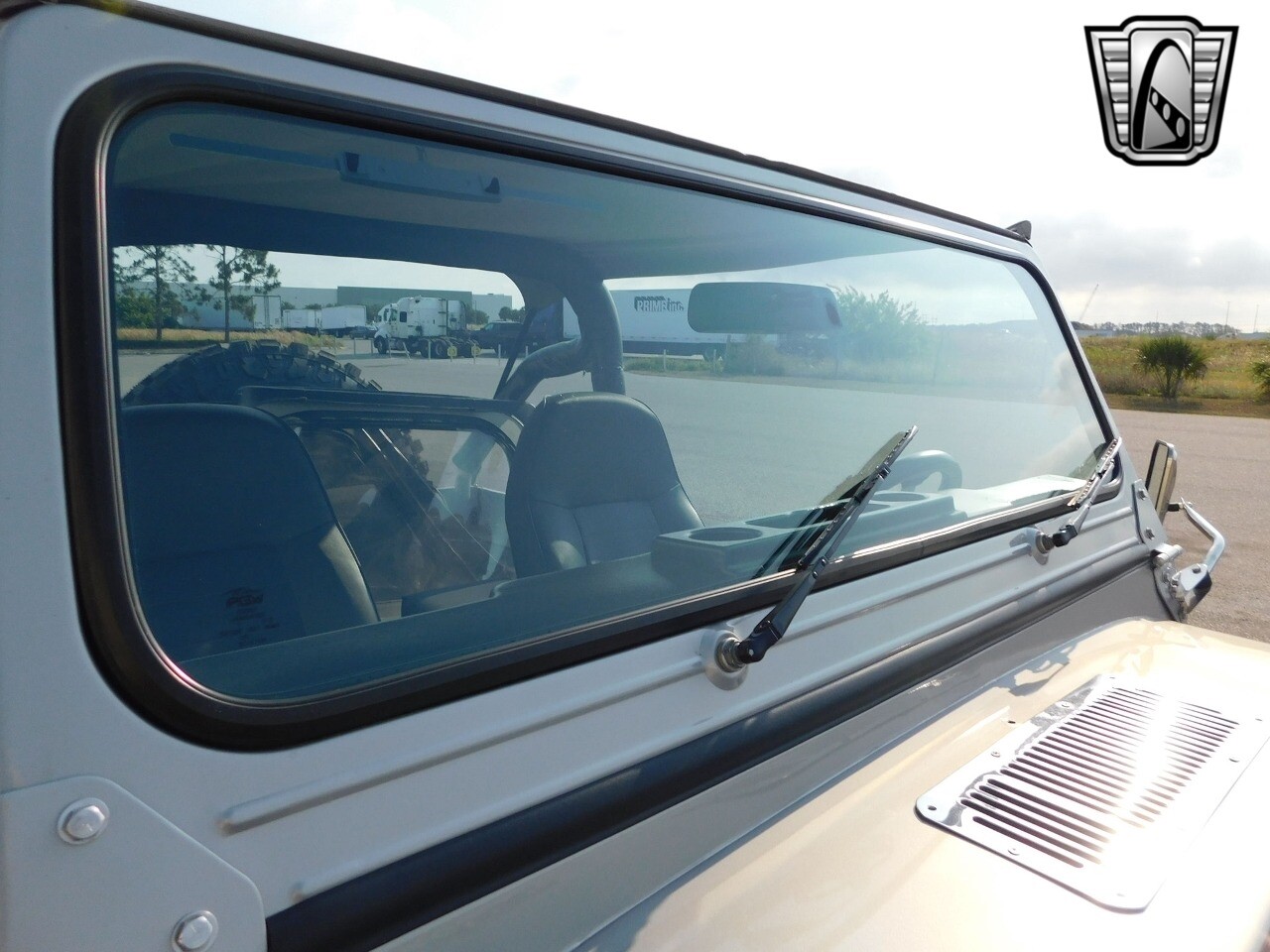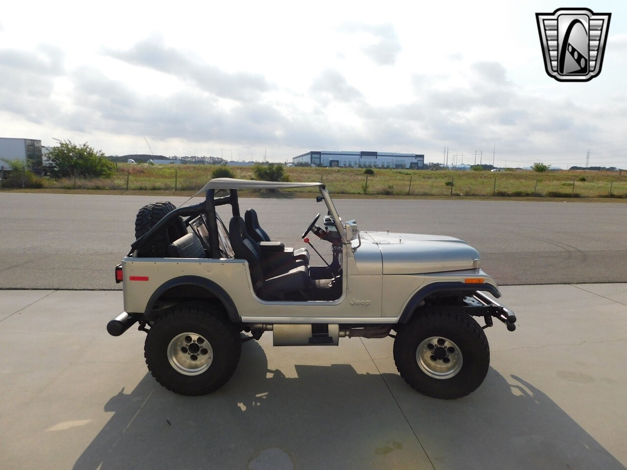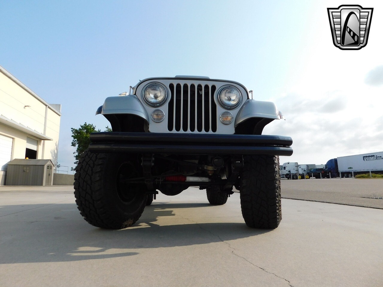 Gateway Classic Cars of Tamps presents this 'beefy' V8 powered, 1978 Jeep CJ-7 Renegade. This 70s and 80s Icon has presence for days! One look and you're instantly flashed back to parties at the lake and adventures off road. This macho CJ-7 has an aggressive stance thanks to spun aluminum wheels wrapped in 35" tires. The big wheels and lift add to the CJ-7s go anywhere prowess. The body is finished in silver over black vinyl interior. The front buckets and rear bench seat are rip free and the dash features a full complement of working gauges. Under the hood is the venerable AMC 304 V8 breathing through headers dumping through side mounted mufflers that exit the V8s bark right in front of the rear wheels. This 78 CJ-7 sounds like a boss! The experience is enhanced by a three-speed manual sending power to the rear or all 4 wheels thanks to a two-speed transfer case. You can enjoy your favorite tunes with the AM/FM radio with CD while bombing around the beach or blazing new trails. Additionally, the Bikini top will keep the sun off and if the occasion arises there's a pair of soft doors for added weather protection. However, there is no full top for this Jeep.