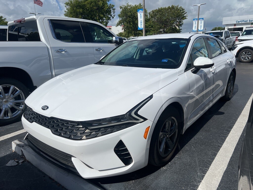 Glacial White Pearl 2021 Kia K5 LXS AWD 8-Speed Automatic 1.6L I4 DGI 26/34 City/Highway MPG