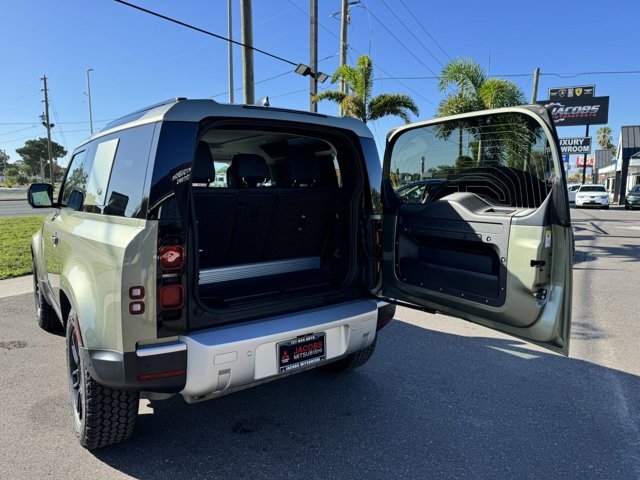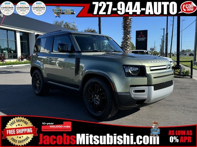 Defender 90 S, 2D Sport Utility, 2.0L Turbocharged, 8-Speed Automatic, 4WD, Pangea Green Metallic, Ebony w/Windsor Leather Seats, 11 Speakers, 14-Way Climate Electric Memory Seats, 4-Wheel Disc Brakes, 4.1 Axle Ratio, ABS brakes, Air Conditioning, Air Suspension Pack, Alloy wheels, AM/FM radio: SiriusXM, Apple CarPlay & Android Auto, Auto High-beam Headlights, Auto-dimming door mirrors, Auto-dimming Rear-View mirror, Automatic Headlight Levelling, Automatic temperature control, Basic Interior Protection & Storage Pack (DISC), Brake assist, Bumpers: body-color, Comfort & Convenience Pack, Compass, Delay-off headlights, Driver door bin, Driver vanity mirror, Dual front impact airbags, Dual front side impact airbags, Electronic Stability Control, Extended Leather Upgrade, Four wheel independent suspension, Front anti-roll bar, Front Bucket Seats, Front Center Armrest, Front dual zone A/C, Front reading lights, Fully automatic headlights, Garage door transmitter: HomeLink, Grained Leather Seat Trim, Heated door mirrors, Heated front seats, Illuminated entry, Leather Shift Knob, Leather steering wheel, Low tire pressure warning, Memory seat, Navigation System, Navigation system: Connected Navigation PIVI Pro, Occupant sensing airbag, Opening Panoramic Sunroof, Outside temperature display, Overhead airbag, Overhead console, Panic alarm, Passenger door bin, Passenger vanity mirror, Power door mirrors, Power driver seat, Power passenger seat, Power steering, Power windows, Premium Cabin Lighting, Premium LED Headlights w/Signature DRL, Radio data system, Radio: 400W 11 Speaker Meridian Sound System, Rain sensing wipers, Rear anti-roll bar, Rear fog lights, Rear reading lights, Rear seat center armrest, Rear window defroster, Rear window wiper, Refrigerated Center Console, Remote keyless entry, Roof rack: rails only, Security system, Speed control, Speed-sensing steering, Speed-Sensitive Wipers, Split folding rear seat, Steering wheel mounted audio controls, Tachometer, Telescoping steering wheel, Tilt steering wheel, Traction control, Trip computer, Twin Front Cupholders w/Cover, Variably intermittent wipers, Weather band radio, Wheels: 19 Gloss Sparkle Silver Style 6010. CARFAX One-Owner. Clean CARFAX.Pangea Green Metallic 2023 Land Rover Defender 90 S 4WD 2.0L TurbochargedHere at Jacobs Mitsubishi our goal is to make you a customer for life. We want you to have the most enjoyable car buying experience possible . All prices displayed do not include additional accessories or fees and costs of closing including any government, additional packages applied to vehicle, including but not limited to Jacobs Care, Reconditioning fees,federal, dealer fees, taxes, registration, dealer document, cost of accessories, emissions testing, or any other fees. All prices, specifications and availability are subject to change at any time, without notice. Not all applicants will be approved, offers may change at any time and may not reflect accuracy online, see dealer for most updated offers. Not all offers can be combined. Applicant may qualify for partial discount displayed by financing with another approved lender through and provided by Jacobs Mitsubishi. Contact dealer for most current information, availability, or details.