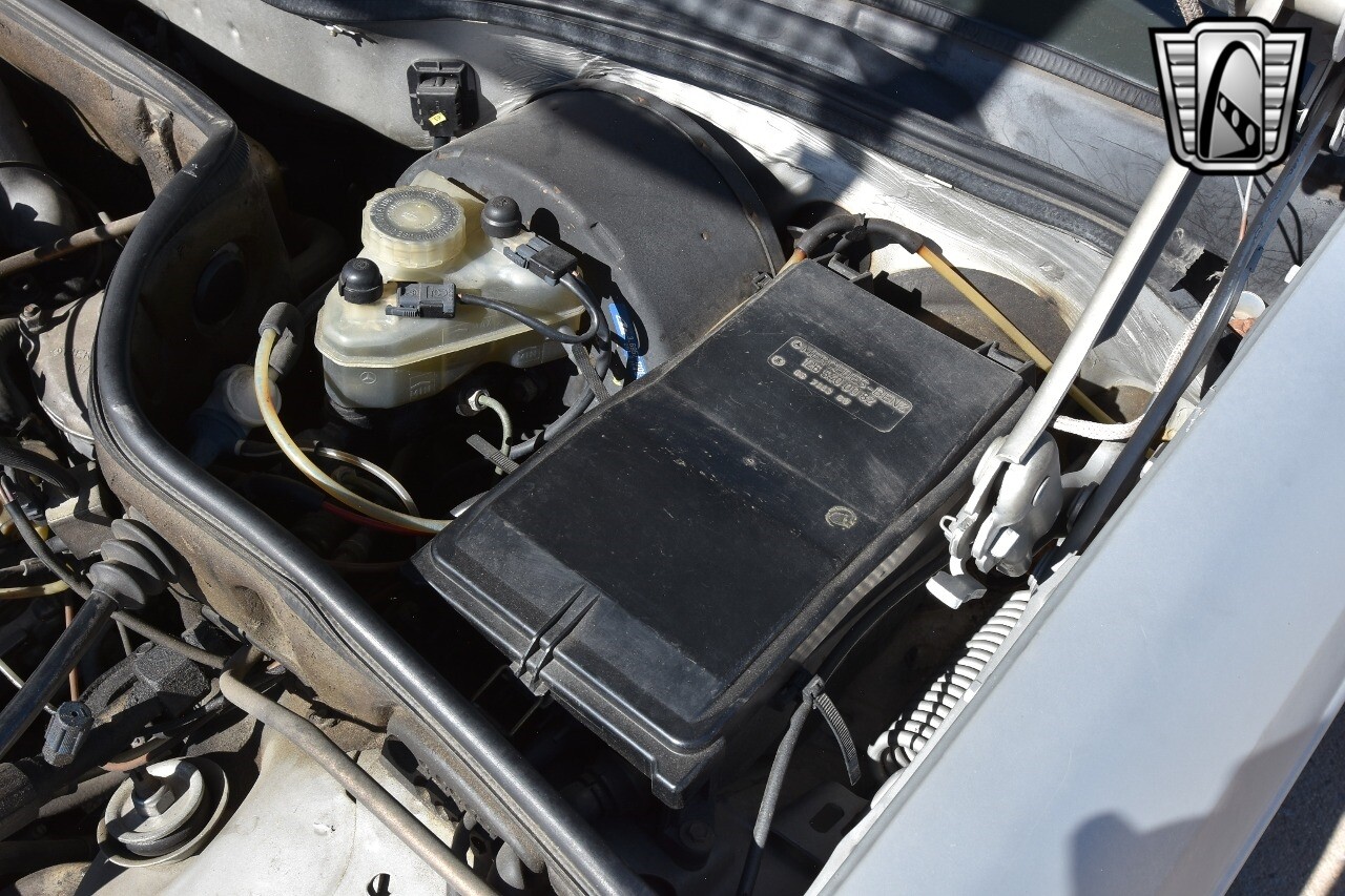 Inside, the gray leather interior is both luxurious and comfortable, with power seats that allow you to find the driving position. Power locks and power windows add a touch of modern convenience to this classic car.