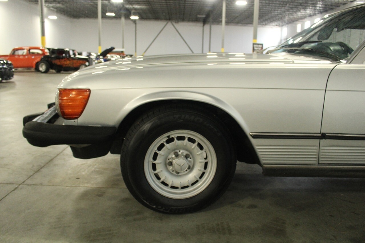 Gateway Classic Cars Houston Showroom is pleased to present this sleek silver 1982 Mercedes 380 SL. The Mercedes-Benz SL-Class is a grand touring sports car manufactured by Mercedes-Benz since 1954. The designation SL derives from the German Sport-Leicht, translating to Sport Light in English. In 1971 the R107 was introduced with new design language and safety features that spread to the subsequent Mercedes-Benz models. For the first time, the V8 engines were fitted to the SL-Class. This SL has a variety of features that that buyers will appreciate, including conveniences such as air conditioning, aluminum wheels, radial tires, power windows, AM/FM/Cassette radio and cruise control. This classic is colored in Silver, and has a beautiful blue synthetic leather interior. Although having the two roof options of a hard-top and a soft-top makes this fun all year, we all know these SLs are the most fun when the top comes off. This is also a comfortable and save weekend getaway car thanks to features like power steering and four-wheel power disc brakes. [ omitted ].