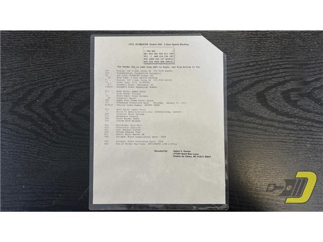The Duster 340 is one of the most desirable A-body Mopars out there. Available from 1970-73, it represents the pinnacle of Duster performance and represents a bargain amongst 6-figure Cudas and Chargers. This 1972 model is the real deal and a great example of what made these cars so much fun. It is an eye-catching machine with its Lemon Twist paint and Duster graphics, but also features a numbers-matching engine and transmission along with a broadcast sheet.