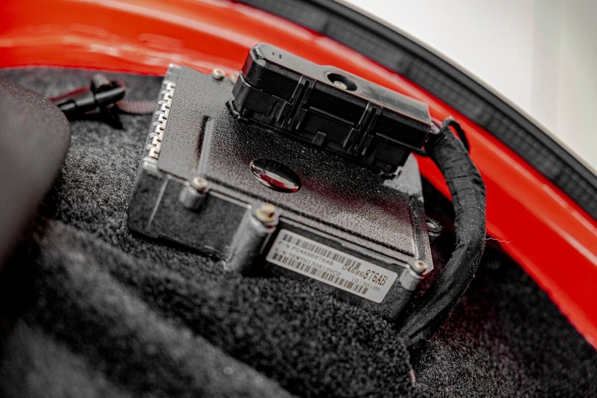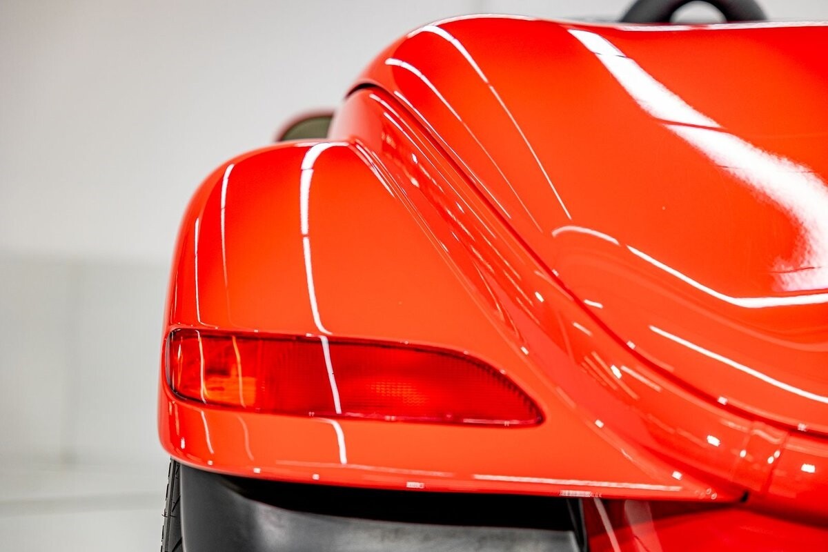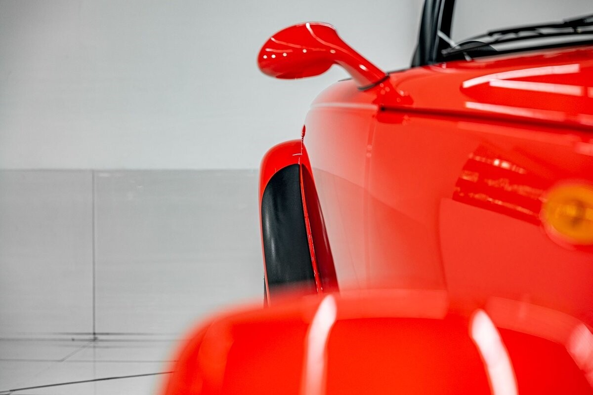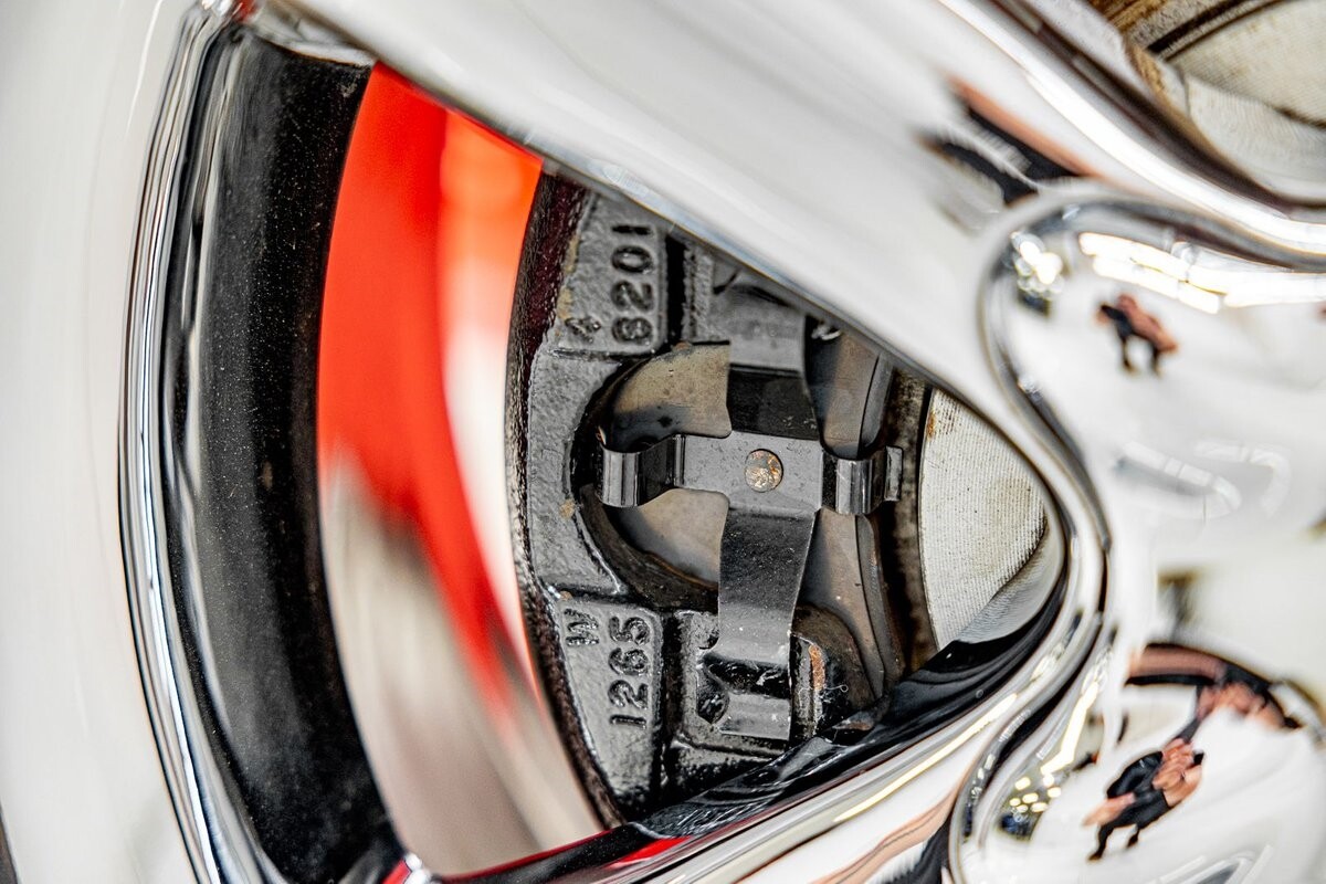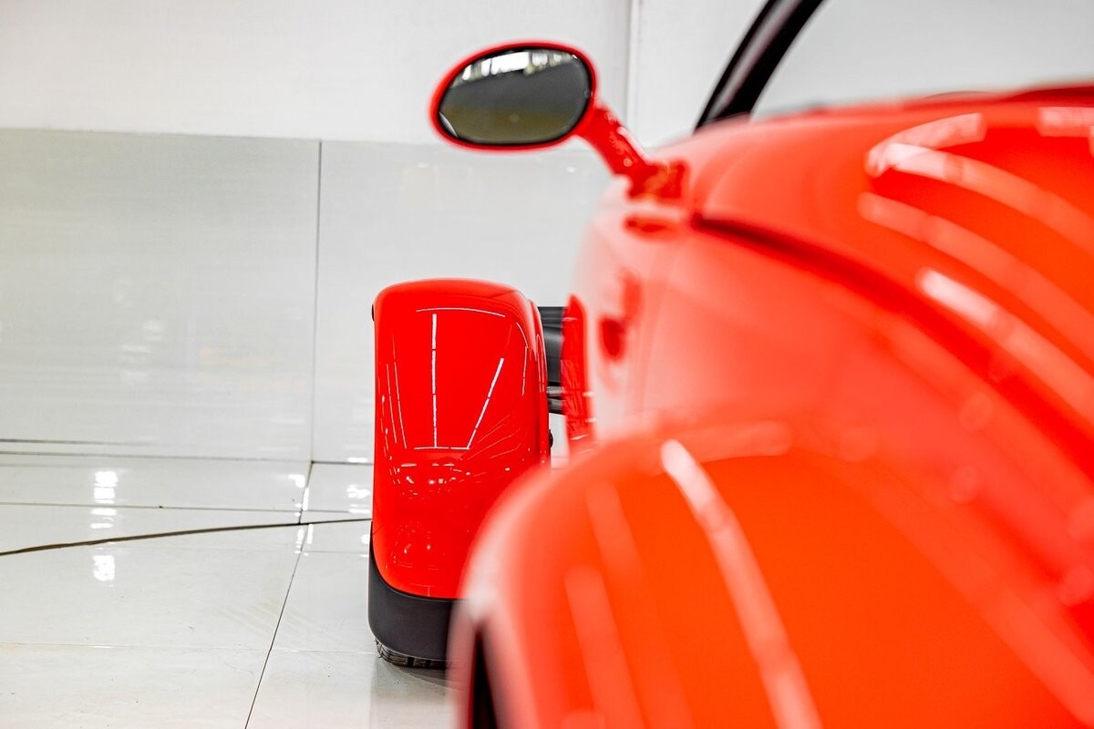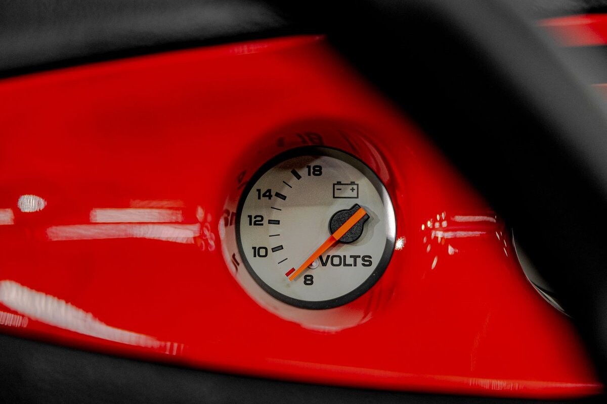 EXTERIOR: The prowler red is a very sharp color. The body is excellent, no damage anywhere that I can find. The original paint is excellent. The wheels are staggered size with 17s in front and 20s in back. The tires like new. The black cloth convertible top looks great and is very functional. It is still equipped with the factory front and rear bumpers. It literally looks like it just rolled off the assembly floor. All the exposed front suspension is immaculate.