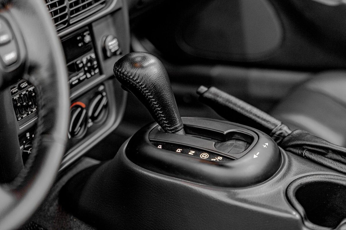 INTERIOR: It offers a very CLEAN, very comfortable interior. Comfy leather seats that are in excellent shape, power Windows, locks, mirrors. It has steering wheel controls making it easy to change. It has a matching set of white face gauges and a tachometer mounted on the column. The dash insert is the same color as the car. The console has the auto stick shifter, which can be manually shifted. The glove box pouch is in the glove box with original manuals.