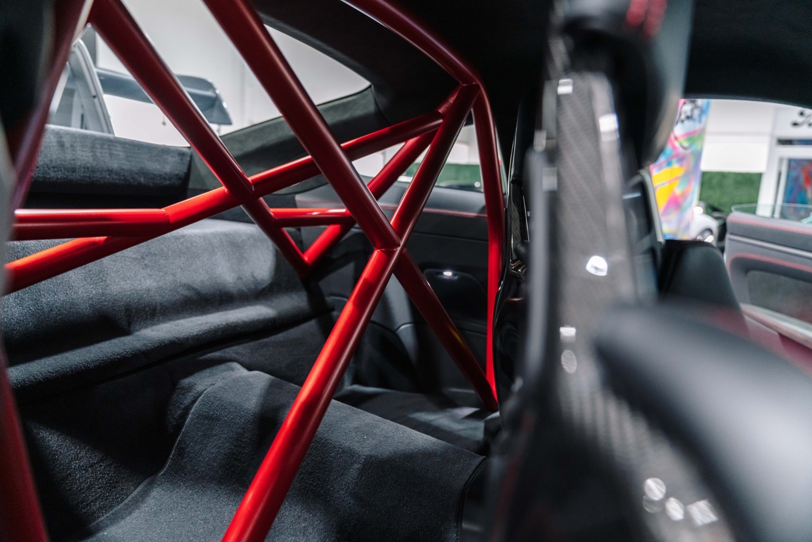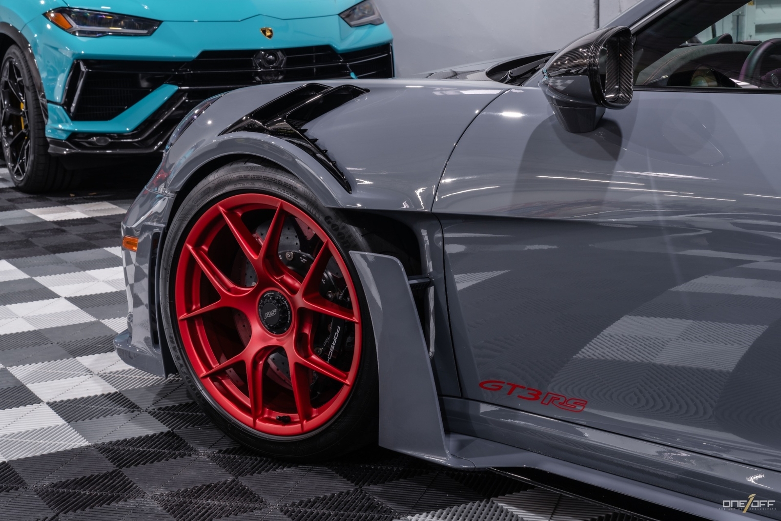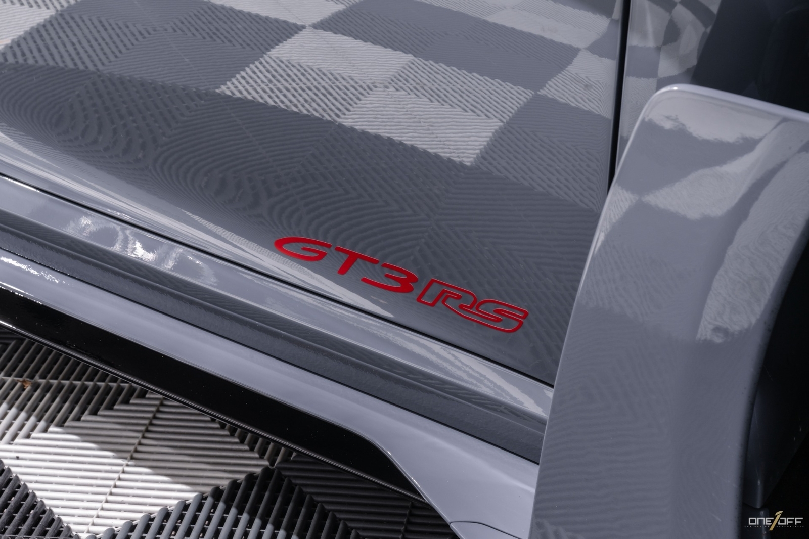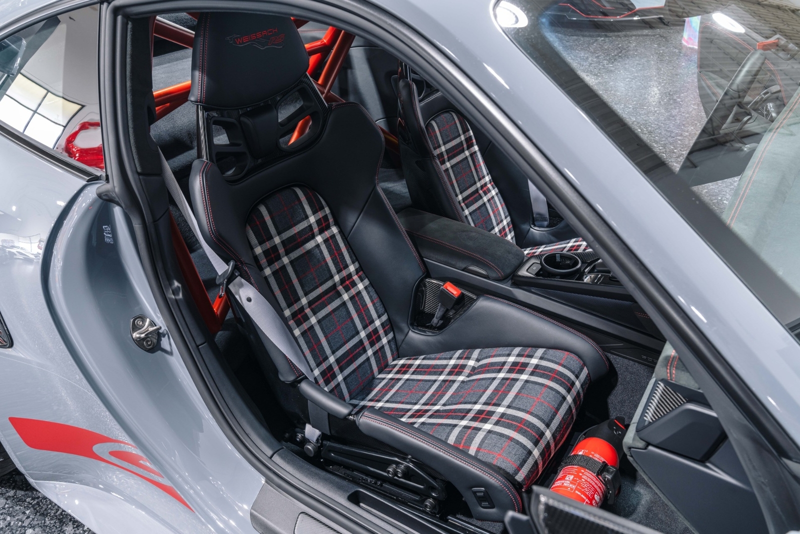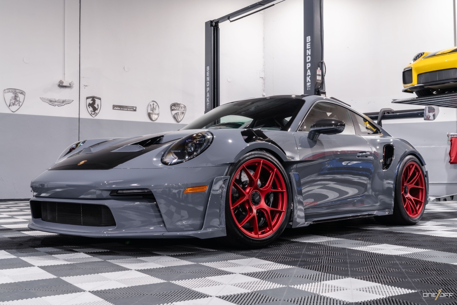 The 911 that is taking the world by storm. Making this spec truly one of a kind was the aim, and the Arctic Grey paint matched trim, heritage seat trim, along with the Pyro Red paint matched BBI roll cage did just that. This perfectly specced Weissach '24 GT3RS delivers more than what's promised. Featuring the must-have Porsche carbon ceramic brakes, the legendary Weissach package, the Porsche dynamic lighting system+, front axle lift, unparalleled Bose surround sound, and a Pyro Red/Arctic Grey color specification.
