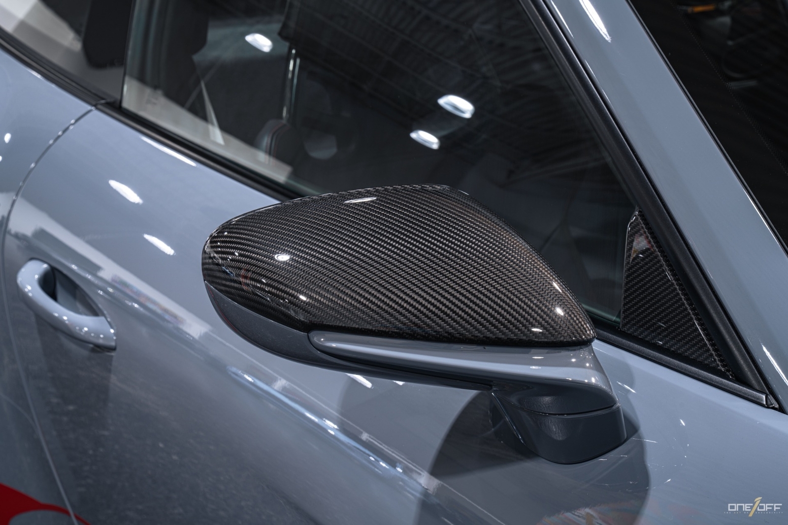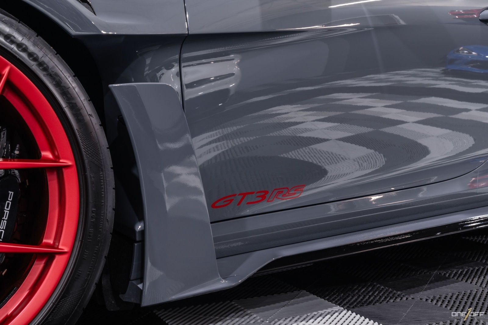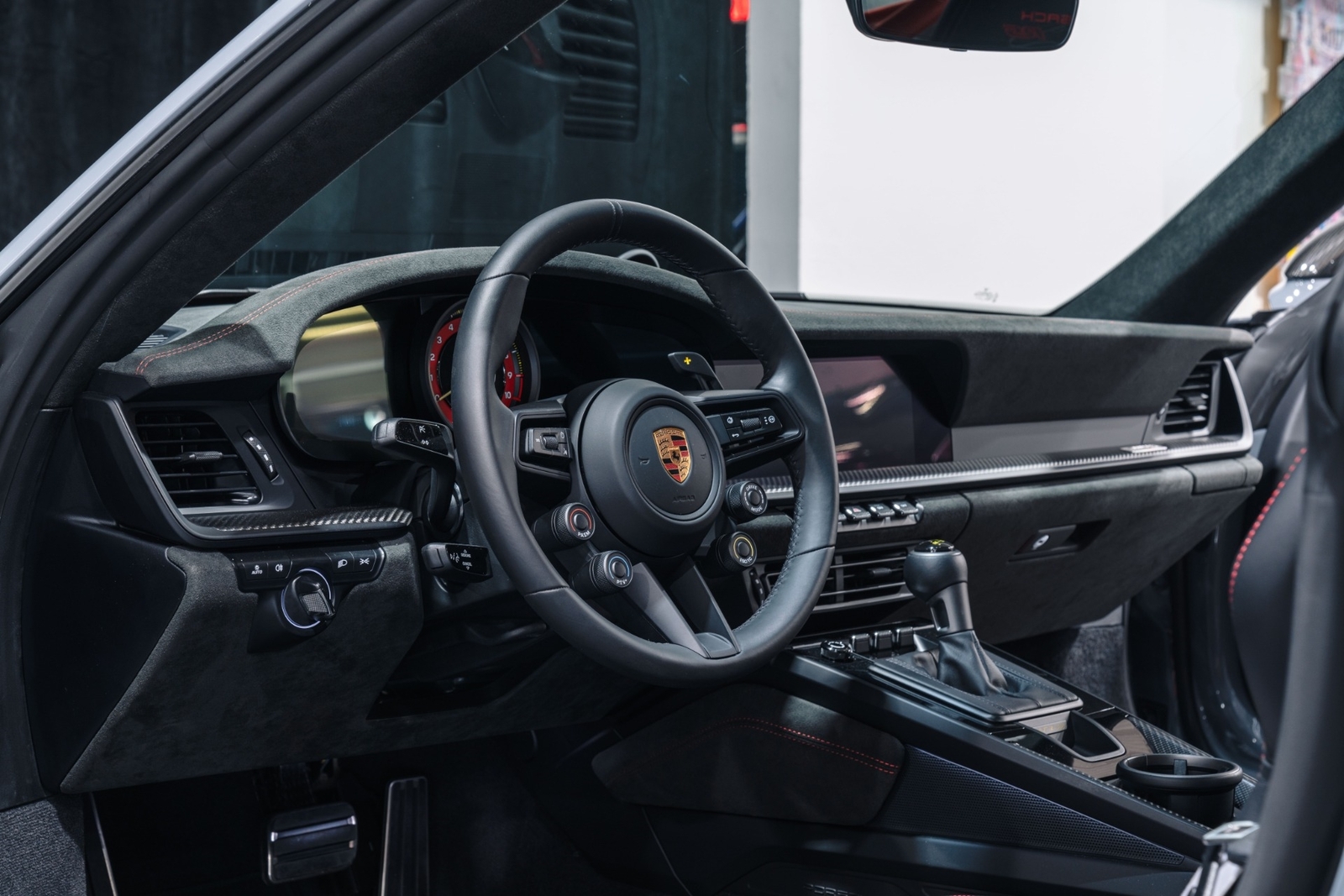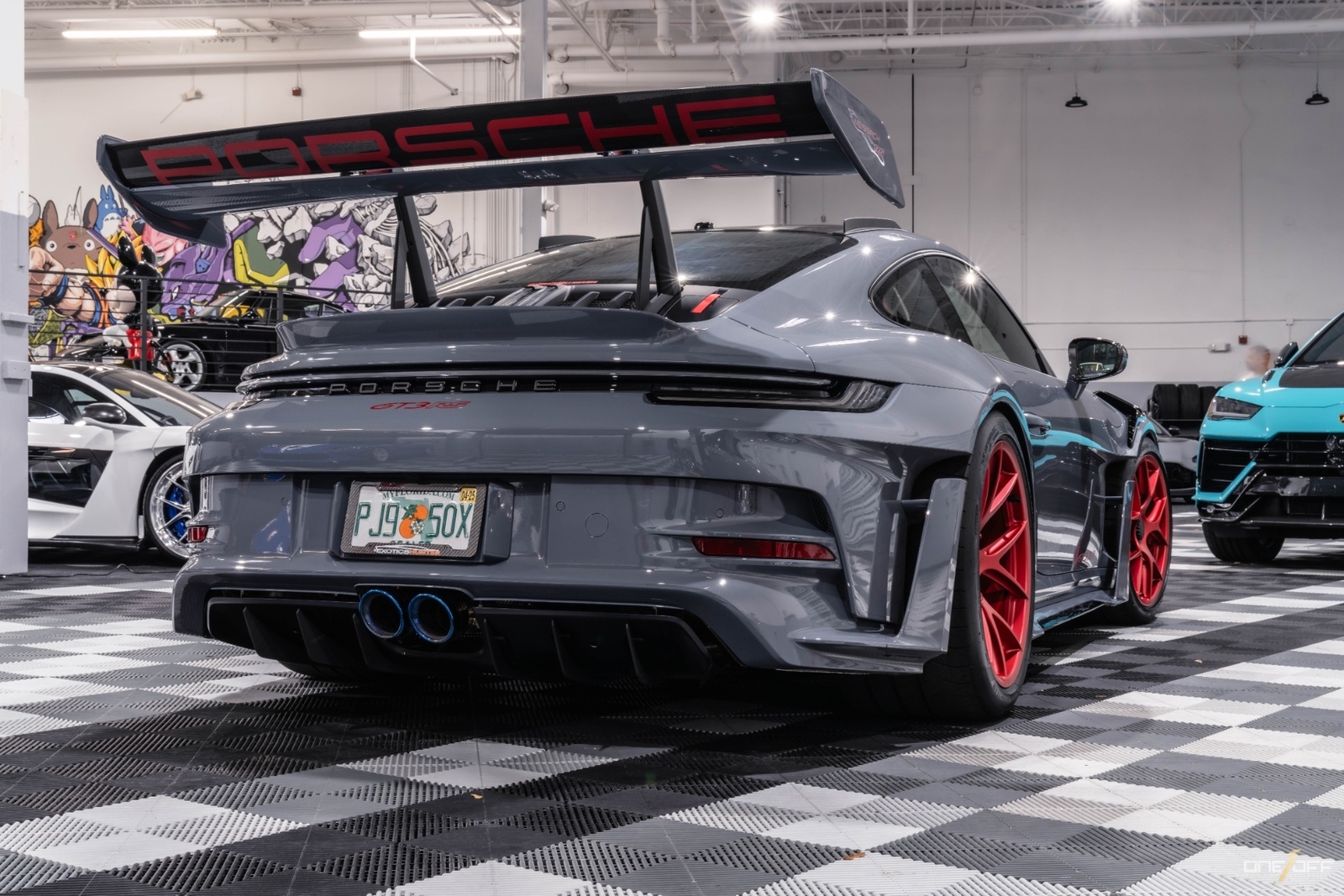 The 911 that is taking the world by storm. Making this spec truly one of a kind was the aim, and the Arctic Grey paint matched trim, heritage seat trim, along with the Pyro Red paint matched BBI roll cage did just that. This perfectly specced Weissach '24 GT3RS delivers more than what's promised. Featuring the must-have Porsche carbon ceramic brakes, the legendary Weissach package, the Porsche dynamic lighting system+, front axle lift, unparalleled Bose surround sound, and a Pyro Red/Arctic Grey color specification.