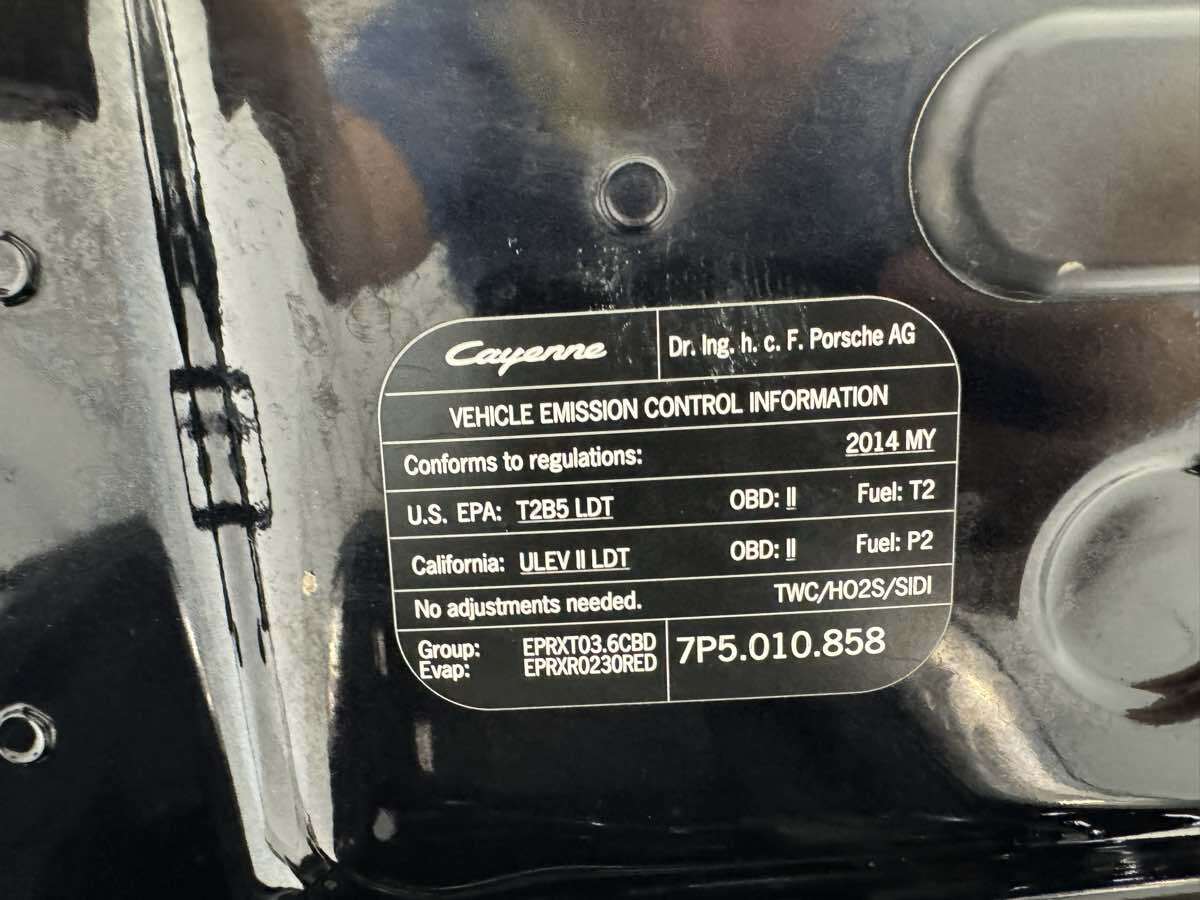 Our 2014 Porsche Cayenne AWD is presented in stunning Jet Black Metallic. Powered by a 3.6 Liter V6 producing 300hp coupled to a 6 Speed Manual transmission to propel you to 60mph in 7.5 seconds and on to a top speed of 142mph. This All Wheel Drive SUV provides sports-car-like handling - a smooth ride - and nearly 23mpg on the highway. Our Cayenne sets itself apart with attractive styling enhanced by LED daytime running lights - a sunroof - and stunning alloy wheels. Our Cayenne's stunning interior is equipped with high-quality materials - an extensive array of amenities - and a variety of thoughtful touches to make every drive as pleasant as possible. Heated/Cooled power front seats - heated rears - a leather-wrapped steering wheel - a power liftgate - and dual-zone automatic climate control are all on hand to help keep you comfortable and in command on every journey. The full-color touchscreen infotainment system keeps you informed and entertained with a CD player and surround sound. Our Porsche helps keep you and your passengers safe and secure with a wide range of safety technologies. Advanced airbags - ABS - and a suite of other electronic aids all help you arrive at your destination safely. Our Cayenne provides impressive versatility - remarkable performance - and exceptional comfort in one stylish package! Save this Page and Call for Availability. We Know You Will Enjoy Your Test Drive Towards Ownership!