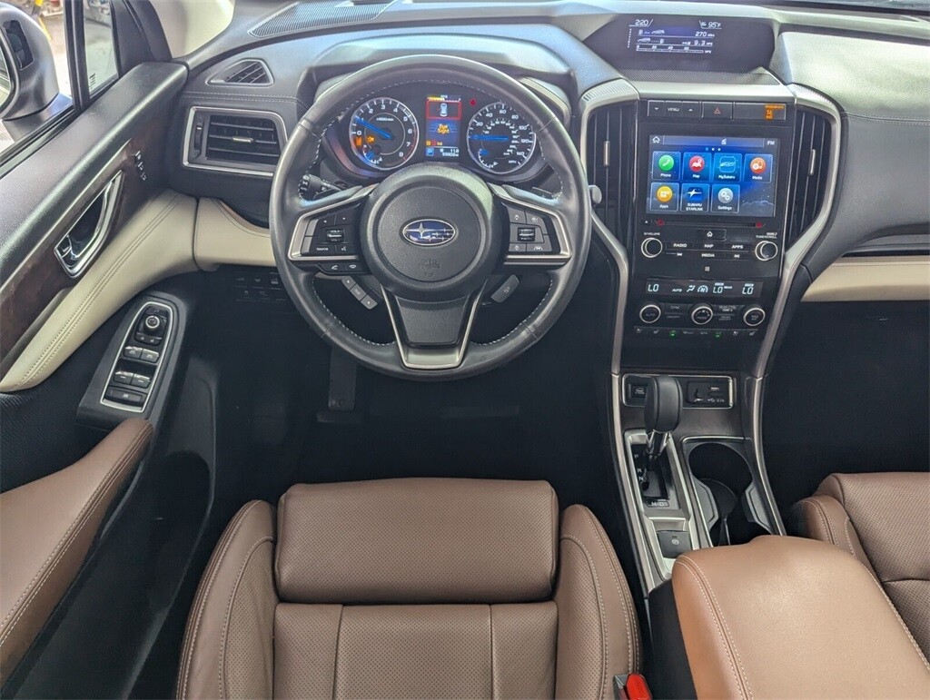 NEED DIRECT AND QUICKER ASSISTANCE? DIAL 561.454.1848 TO SPEAK TO A LIVE SALES CONSULTANT. Ready For Immediate Delivery, Passed Dealer Inspection, Vehicle Detailed, Fresh Oil Change, 14 Speakers, 3rd row seats: bench, 4-Wheel Disc Brakes, ABS brakes, Air Conditioning, Alloy wheels, AM/FM radio: SiriusXM, Auto High-beam Headlights, Auto-dimming Rear-View mirror, Automatic temperature control, Brake assist, Bumpers: body-color, CD player, Compass, Delay-off headlights, Driver door bin, Driver vanity mirror, Dual front impact airbags, Dual front side impact airbags, Electronic Stability Control, Emergency communication system: STARLINK Safety and Security (Subscription Required), Exterior Parking Camera Rear, Four wheel independent suspension, Front anti-roll bar, Front Bucket Seats, Front Center Armrest, Front dual zone A/C, Front fog lights, Front reading lights, Fully automatic headlights, Garage door transmitter: HomeLink, harman/kardon Speakers, Heated & Ventilated Front Bucket Seats, Heated door mirrors, Heated front seats, Heated rear seats, Heated steering wheel, Illuminated entry, Knee airbag, Low tire pressure warning, Memory seat, Navigation System, Occupant sensing airbag, Outside temperature display, Overhead airbag, Overhead console, Panic alarm, Passenger door bin, Passenger vanity mirror, Perforated Leather-Trimmed Upholstery, Power door mirrors, Power driver seat, Power Liftgate, Power moonroof, Power passenger seat, Power steering, Power windows, Radio data system, Radio: Subaru STARLINK 8.0 Multimedia Nav System, Rain sensing wipers, Rear air conditioning, Rear anti-roll bar, Rear reading lights, Rear window defroster, Rear window wiper, Reclining 3rd row seat, Remote keyless entry, Roof rack: rails only, Security system, Speed control, Split folding rear seat, Spoiler, STARLINK/Apple CarPlay/Android Auto, Steering wheel mounted audio controls, Tachometer, Telescoping steering wheel, Tilt steering wheel, Traction control, Trip computer, Turn signal indicator mirrors, Variably intermittent wipers, Ventilated front seats, Wheels: 20 Dk Gray Aluminum Alloy w/Machine Finish. 2.4L DOHC 20/26 City/Highway MPG Lineartronic CVT