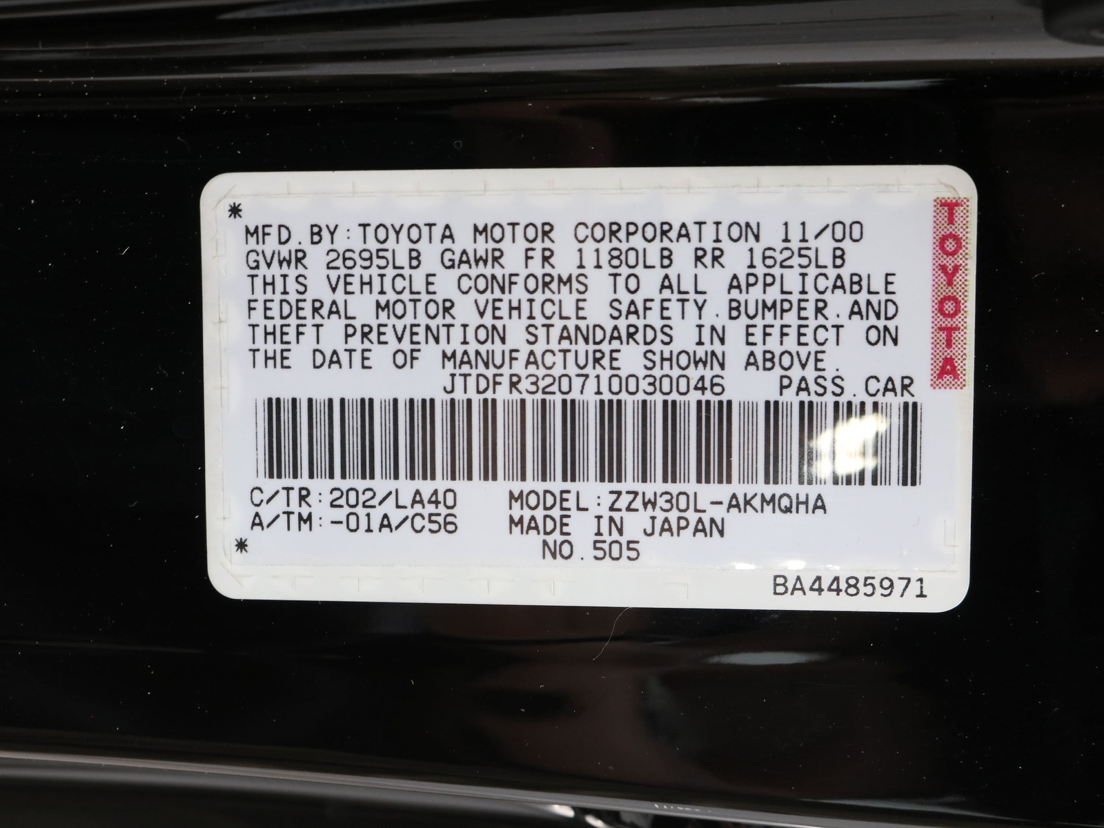 Vehicle Original VIN : JTDFR320710030046