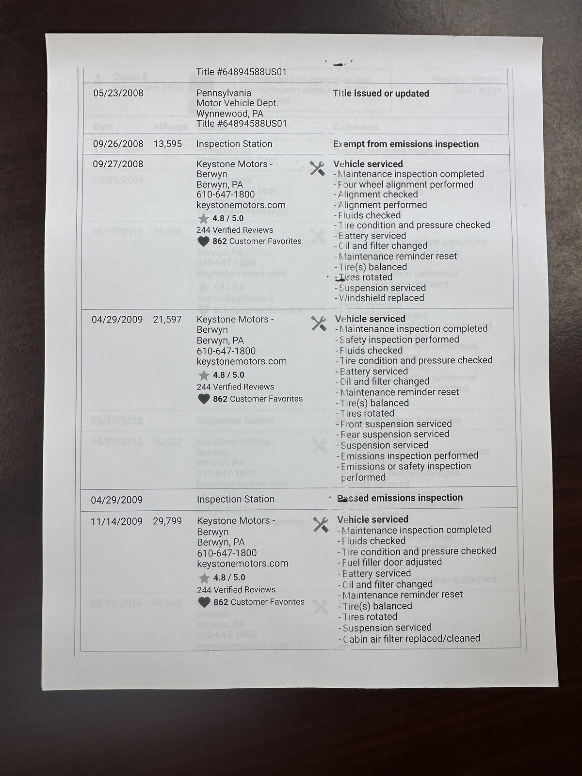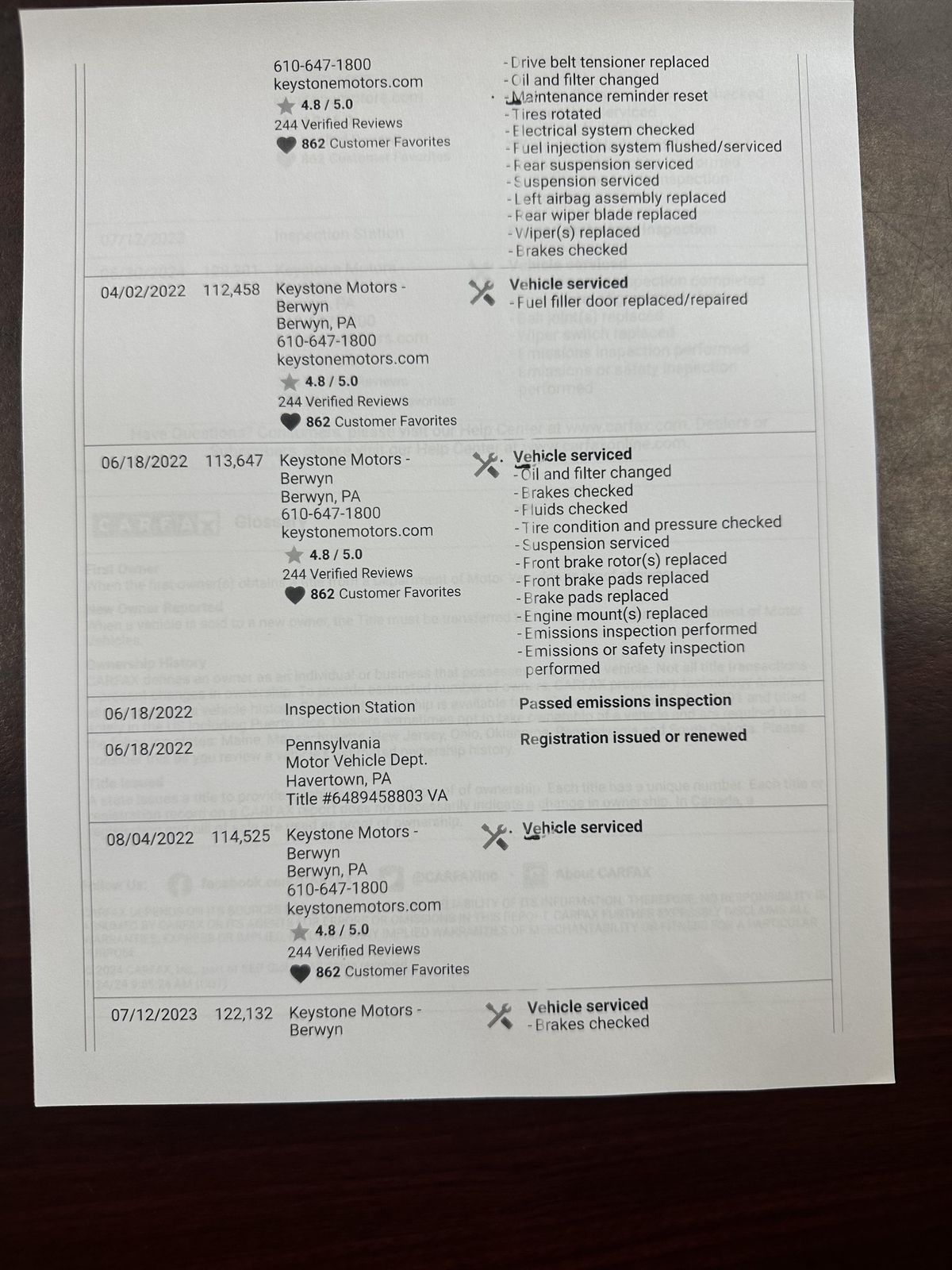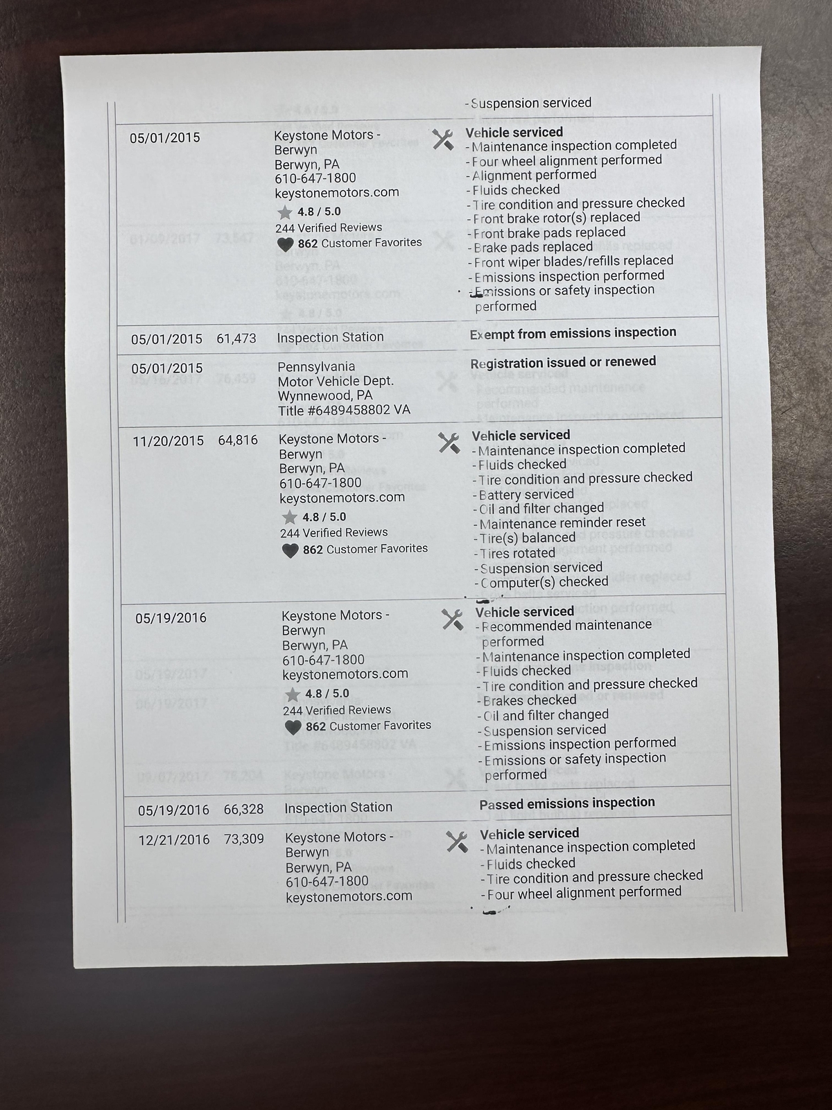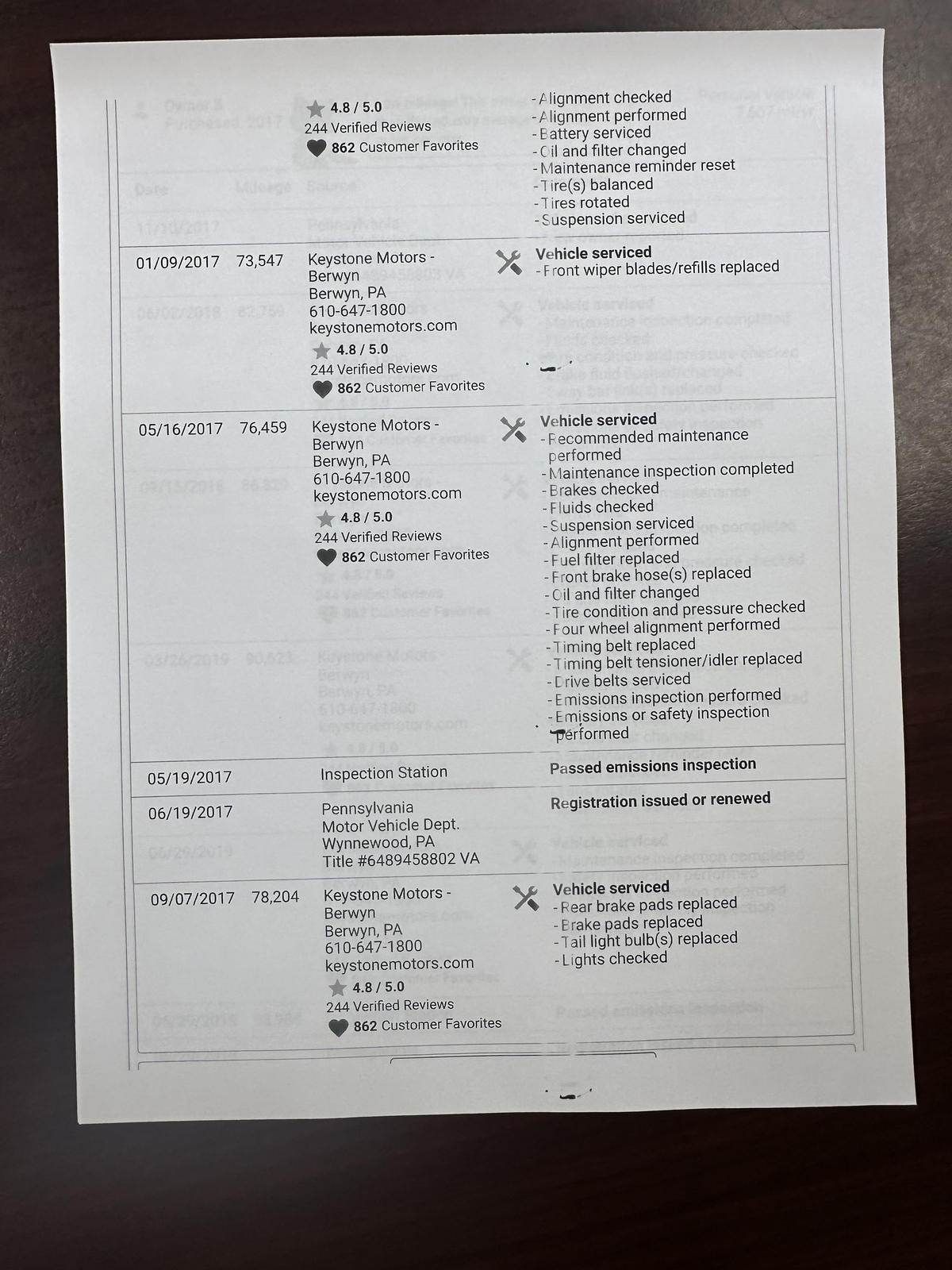 VEHICLE WITH HIGH MILES. WE RECOMMEND