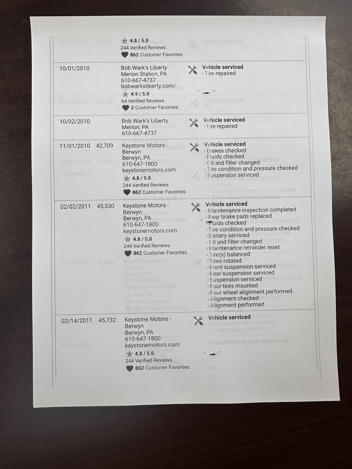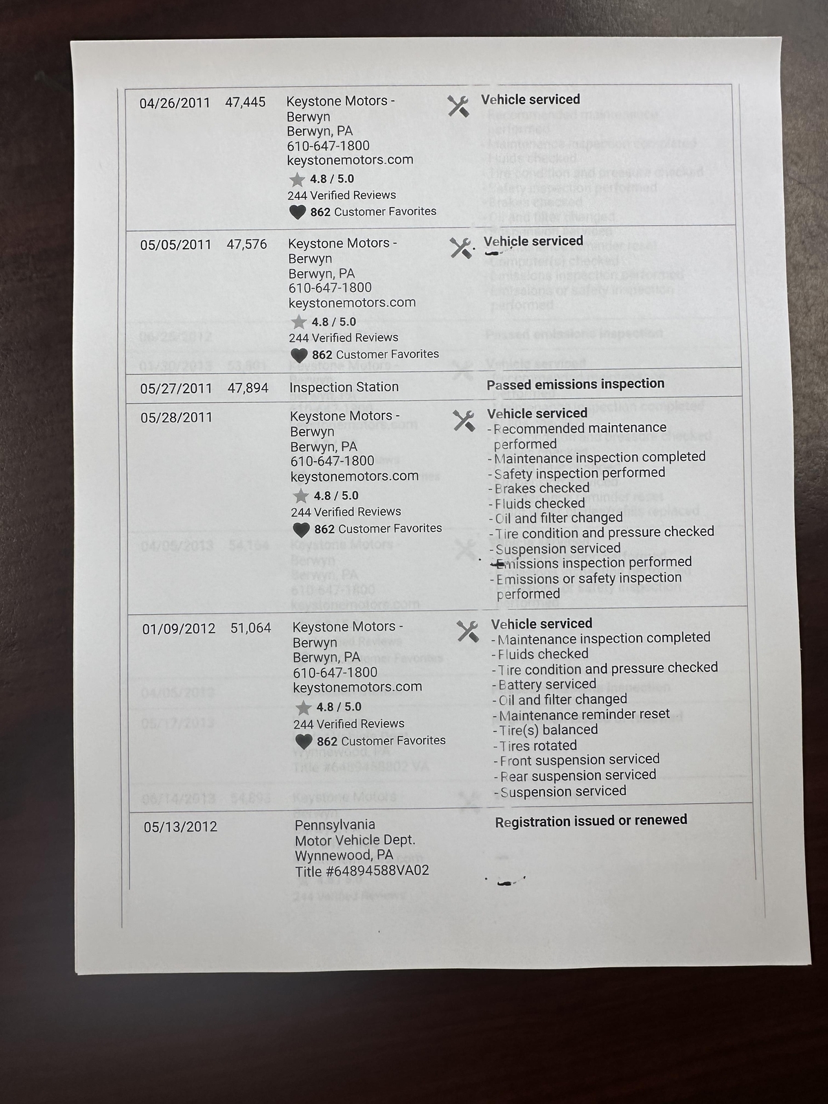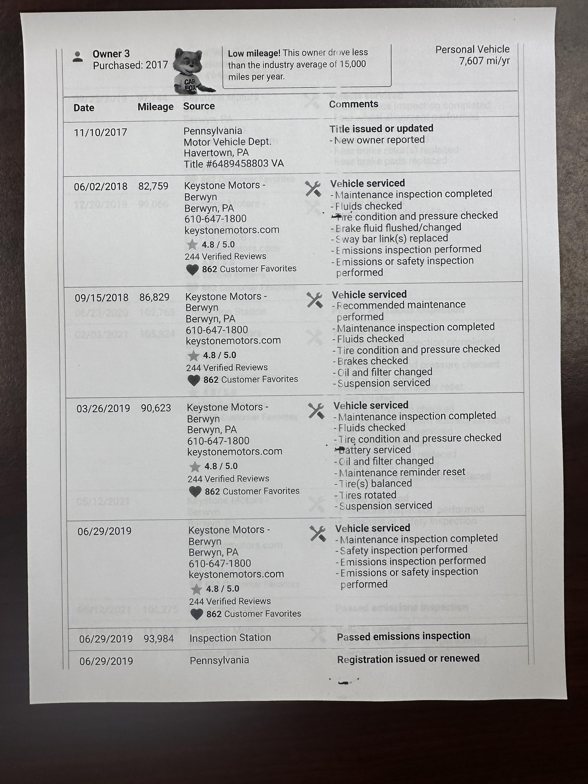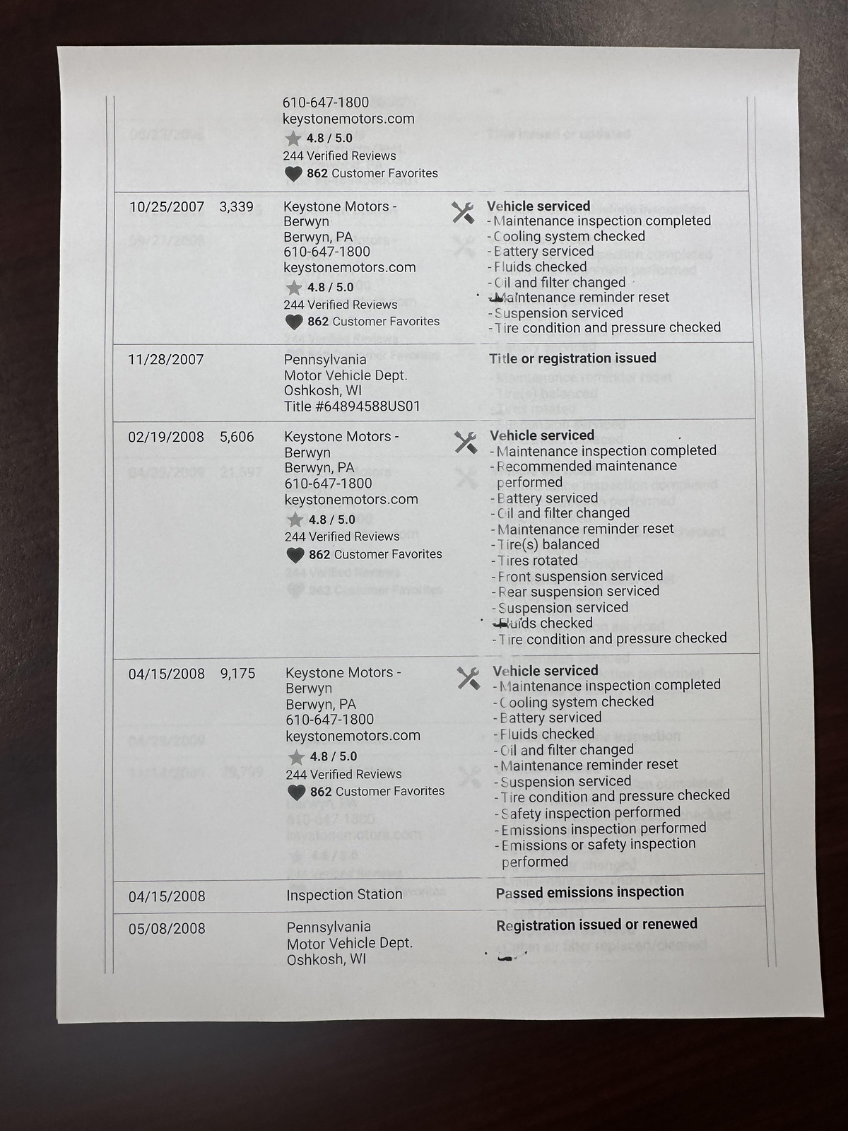 VEHICLE WITH HIGH MILES. WE RECOMMEND
