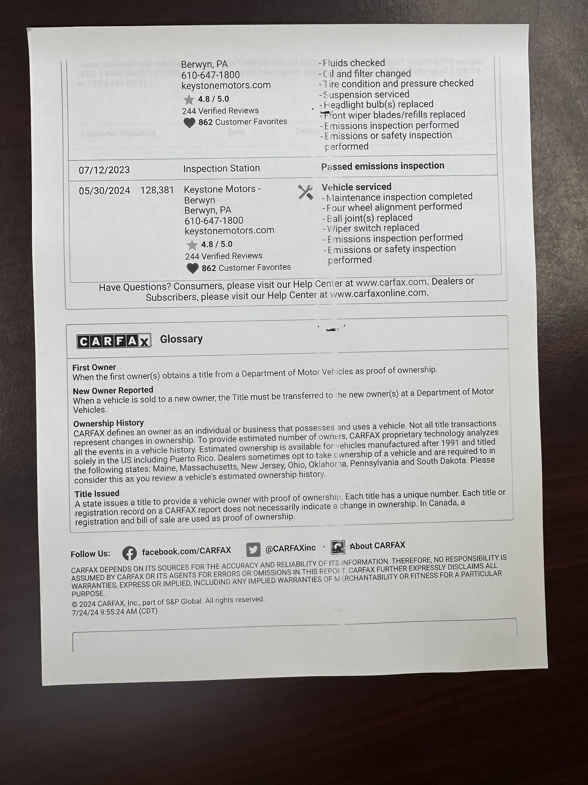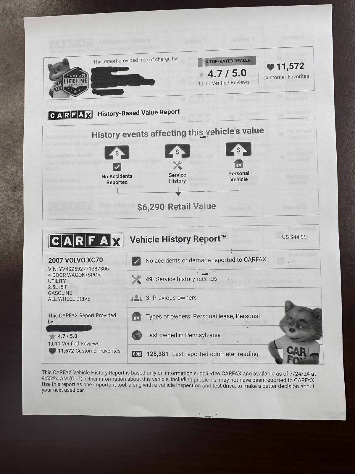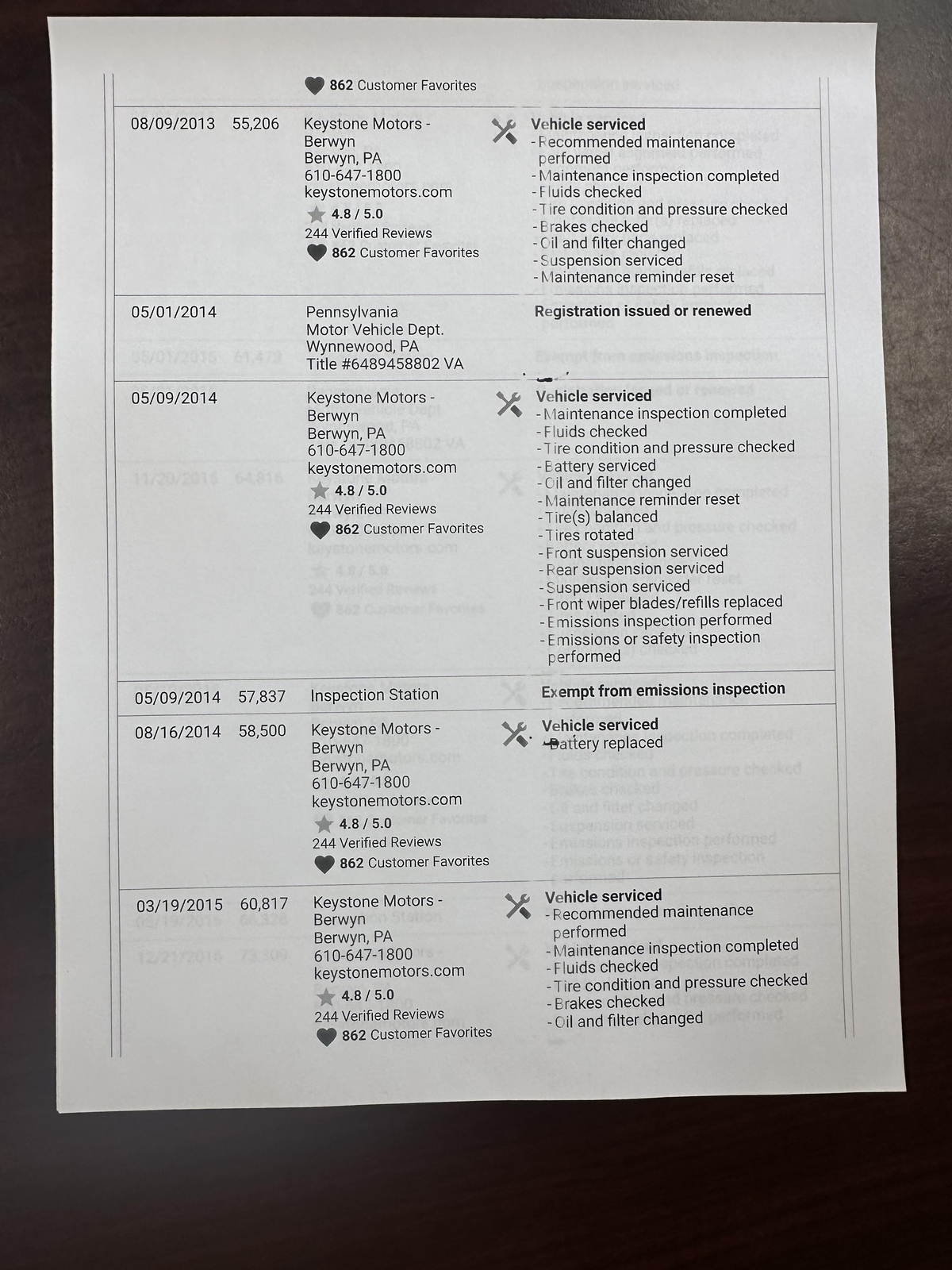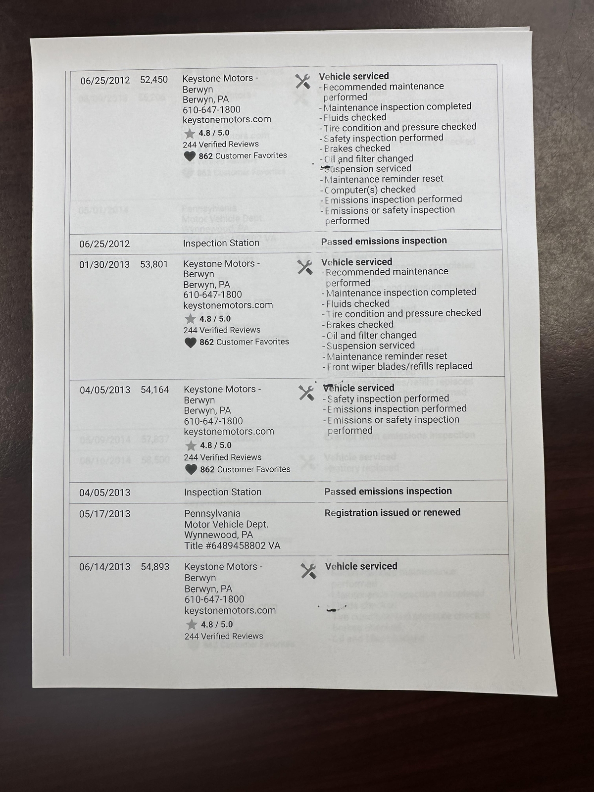 VEHICLE WITH HIGH MILES. WE RECOMMEND