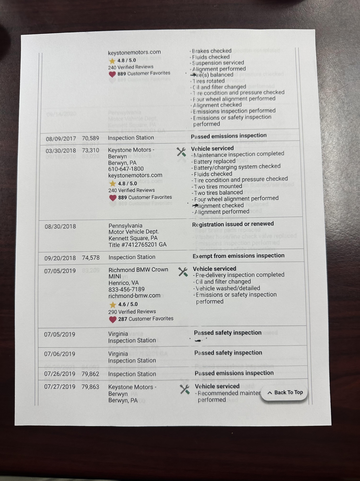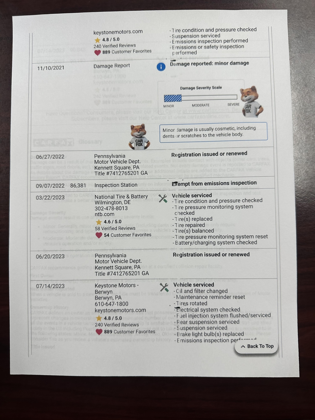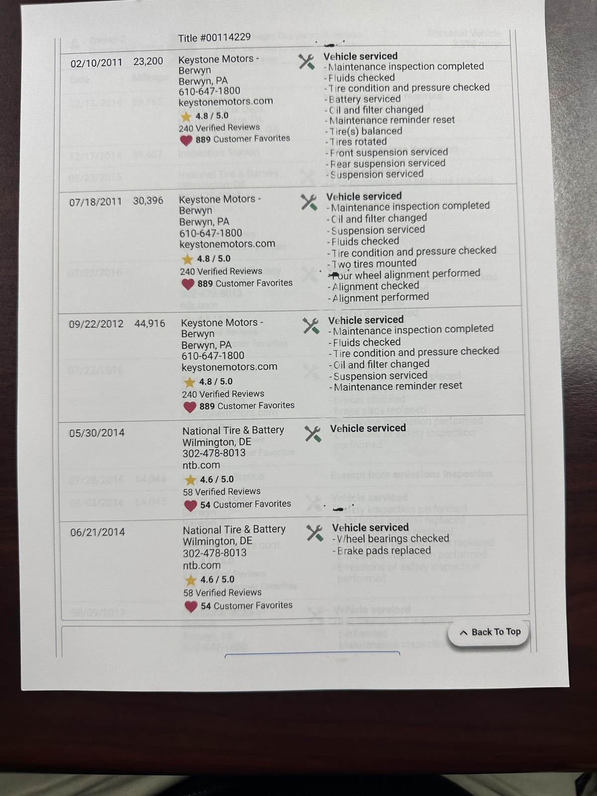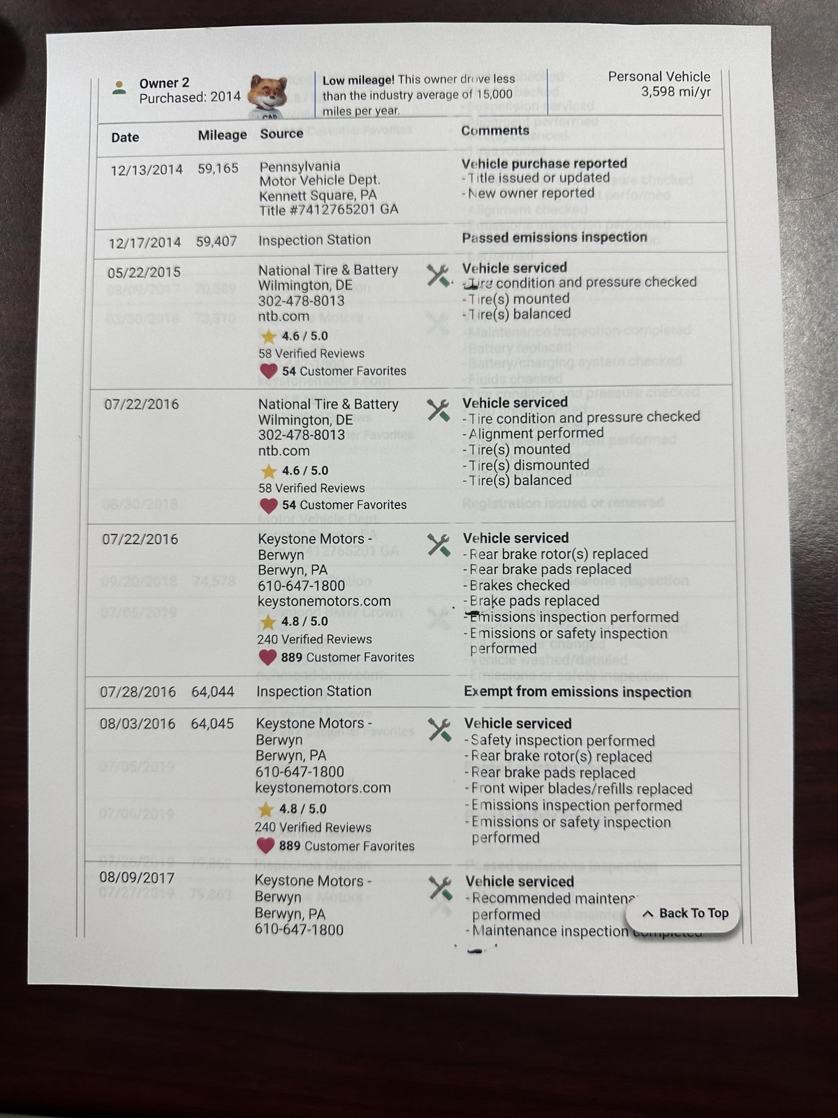 VEHICLE WITH HIGH MILES. WE RECOMMEND