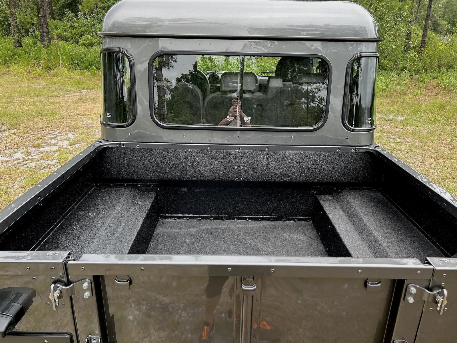 This robust build was recently completed by our team of skilled Master Craftsmen at our headquarters in Castle Hayne, North Carolina. Under the bonnet lies a muscular 6.2L Corvette® LS3 V8 providing spirited forward motivation, while the precise-shifting 6L80E 6-speed automatic transmission controlled by a PCS® push-button gear selector with LED display mated to a heavy-duty, center differential lock-equipped LT230 transfer case distributes constant power to all four wheels, ensuring the brawny 430+ horsepower and 425+ pound-feet of torque makes it to the ground. Powerful disc brakes at all four corners ensure stops are quiet, safe, quick, and efficient.