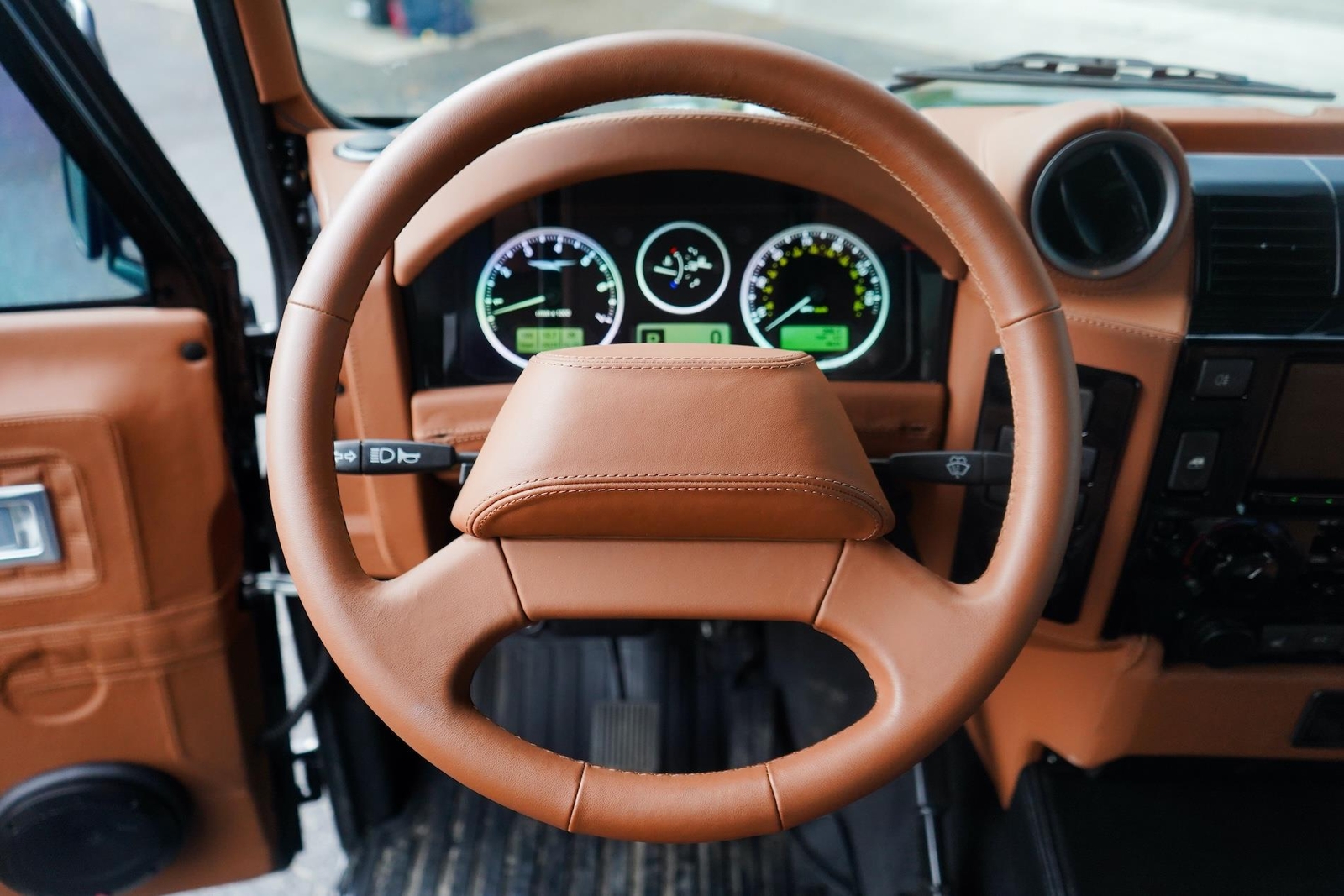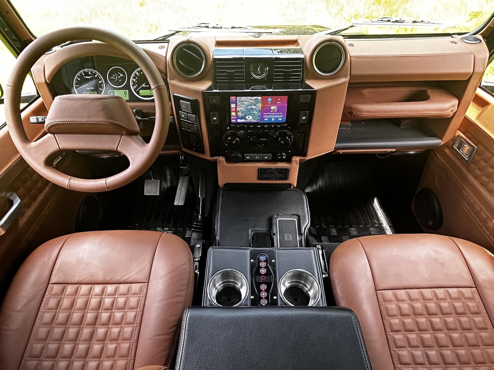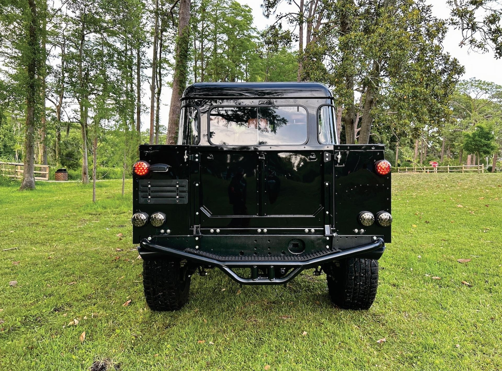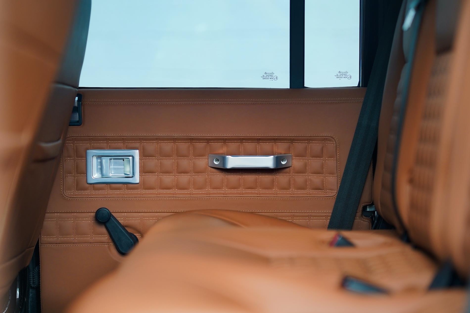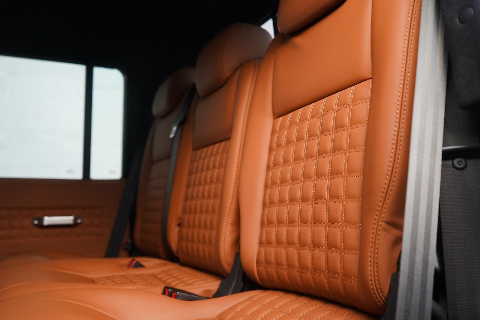 The new hot-dipped galvanized chassis is equipped with upgraded, heavy-duty front and rear axles, supported by slightly elevated heavy-duty shocks and springs. The chassis also features heavy-duty track rod, drag link, and panhard bar, as well a Terrafirma® steering damper, all safeguarded by a heavy-duty aluminum front skid plate. This brawny vehicle stands proud on satin black 20-inch Project Kahn® “Mondial Retro Light” alloy wheels wrapped with beefy 265/60R20 Cooper® Discoverer AT3® XLT all-terrain tires, built to handle heavy loads or tow some serious weight while providing a smooth highway ride.