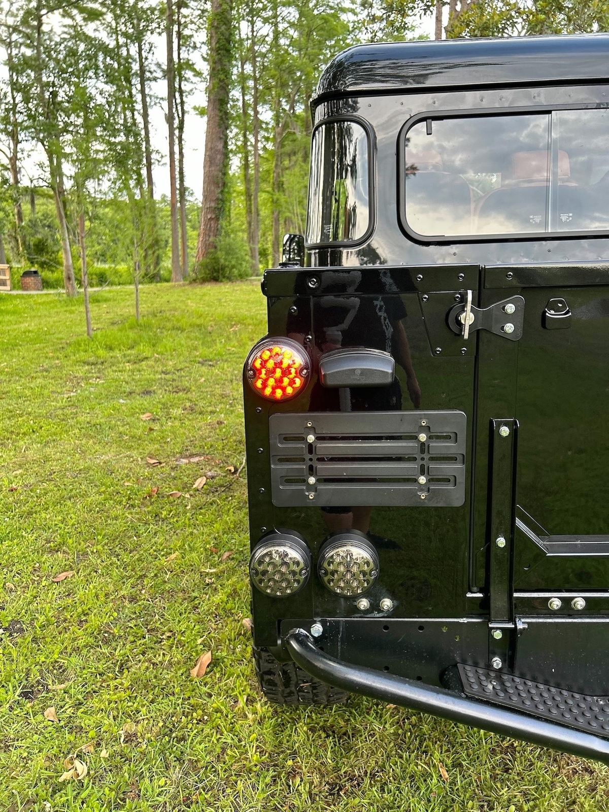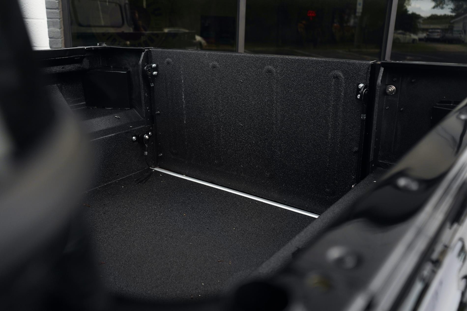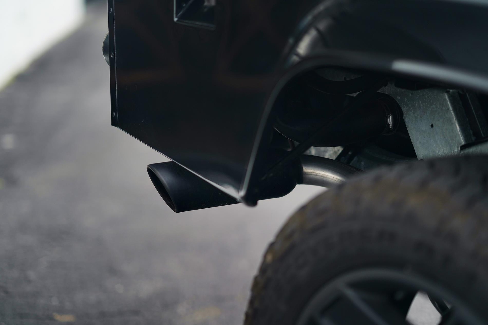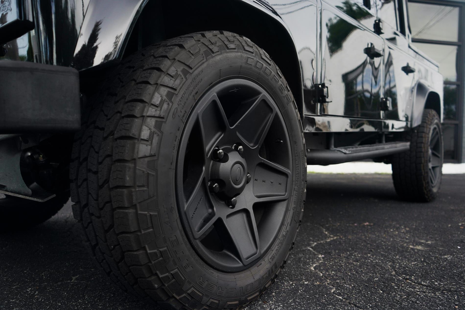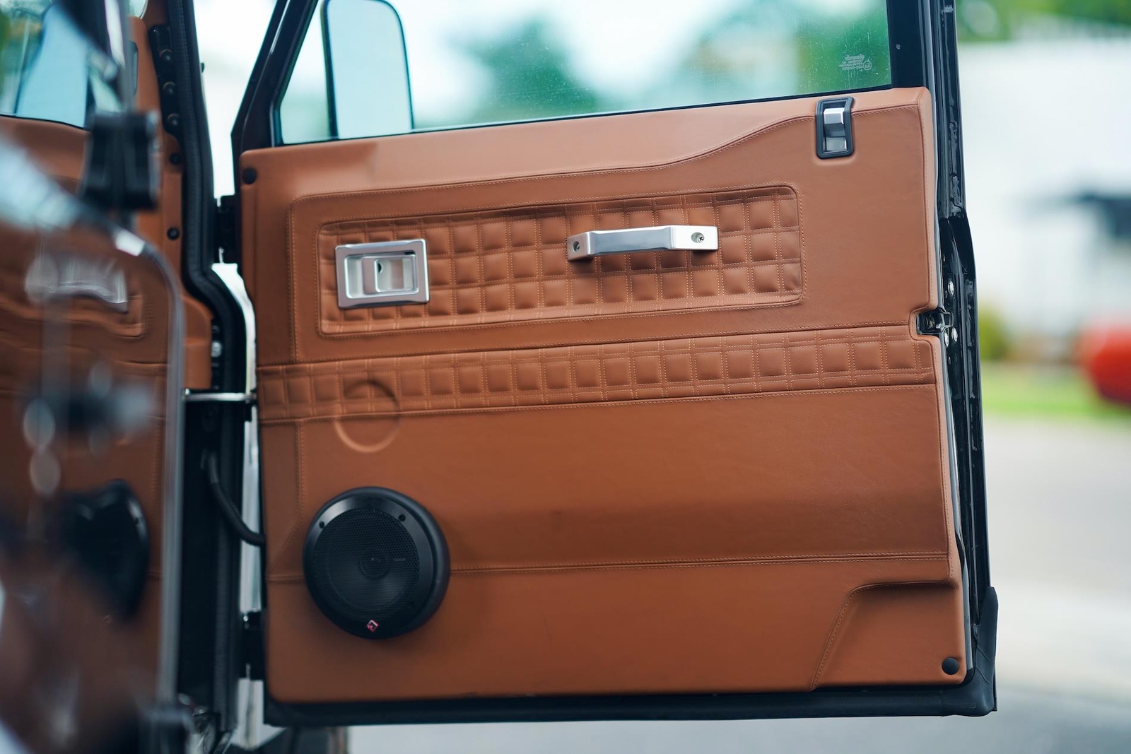 The new hot-dipped galvanized chassis is equipped with upgraded, heavy-duty front and rear axles, supported by slightly elevated heavy-duty shocks and springs. The chassis also features heavy-duty track rod, drag link, and panhard bar, as well a Terrafirma® steering damper, all safeguarded by a heavy-duty aluminum front skid plate. This brawny vehicle stands proud on satin black 20-inch Project Kahn® “Mondial Retro Light” alloy wheels wrapped with beefy 265/60R20 Cooper® Discoverer AT3® XLT all-terrain tires, built to handle heavy loads or tow some serious weight while providing a smooth highway ride.