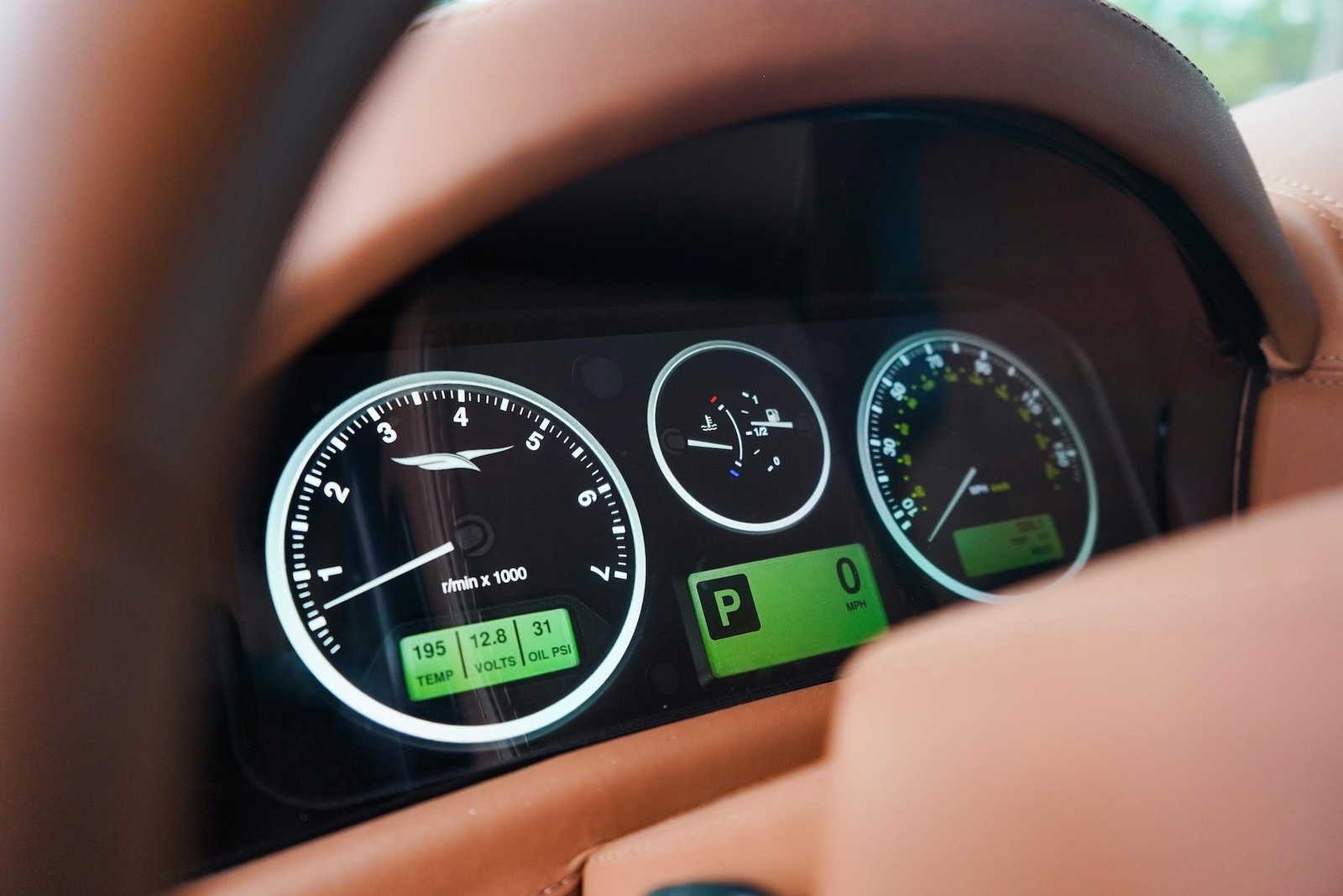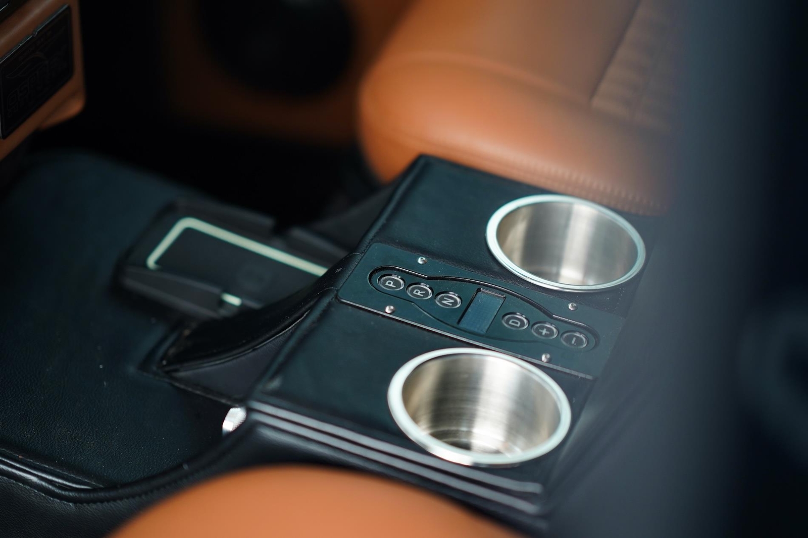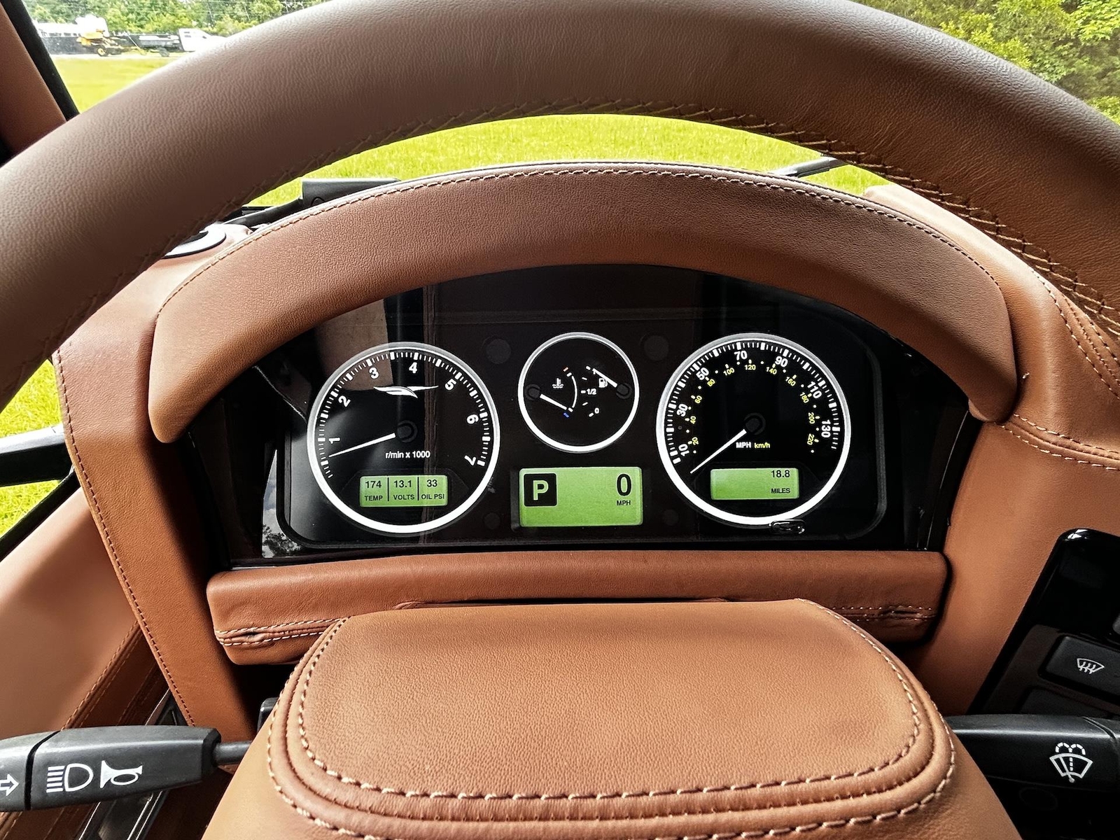 The modern, leather-wrapped dash provides excellent heating and air conditioning, ensuring comfortable cabin temperatures regardless of the weather outside, and our new rear air conditioning system provides additional cooling on hot summer days for your guests. For those extra-brisk mornings, the front windscreen is heated. Brushed billet aluminum door pulls, door levers, door lock escutcheons, and HVAC vent trim rings add a bright, modern touch to the sumptuous interior, and topping it all off is a luxurious, suede-like charcoal Alcantara headliner.