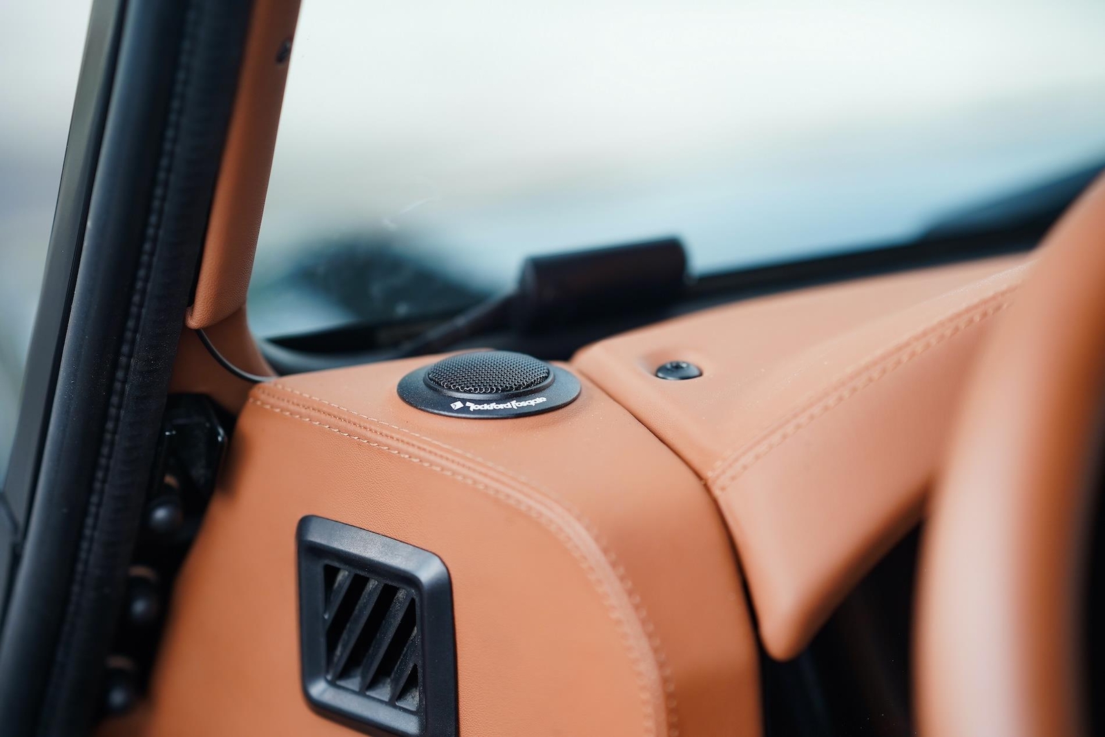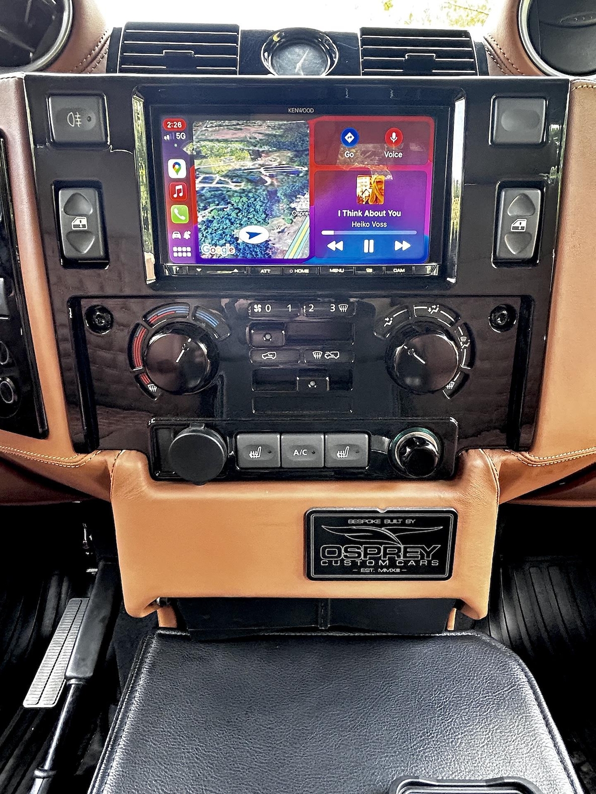 A piano black center fascia houses the state-of-the-art infotainment system featuring a Kenwood® DMX9708S 7-inch HD capacitive touch-screen head unit with wireless Apple CarPlay® and Android Auto®, Bluetooth®, built-in Digital Signal Processor, and GPS navigation backed by a rich sounding Rockford Fosgate® 6-speaker array and a Blaupunkt® GTHS131 200-watt active subwoofer with remote bass controller, enhanced by a Kenwood® KAC-M3004 200-watt amplifier.