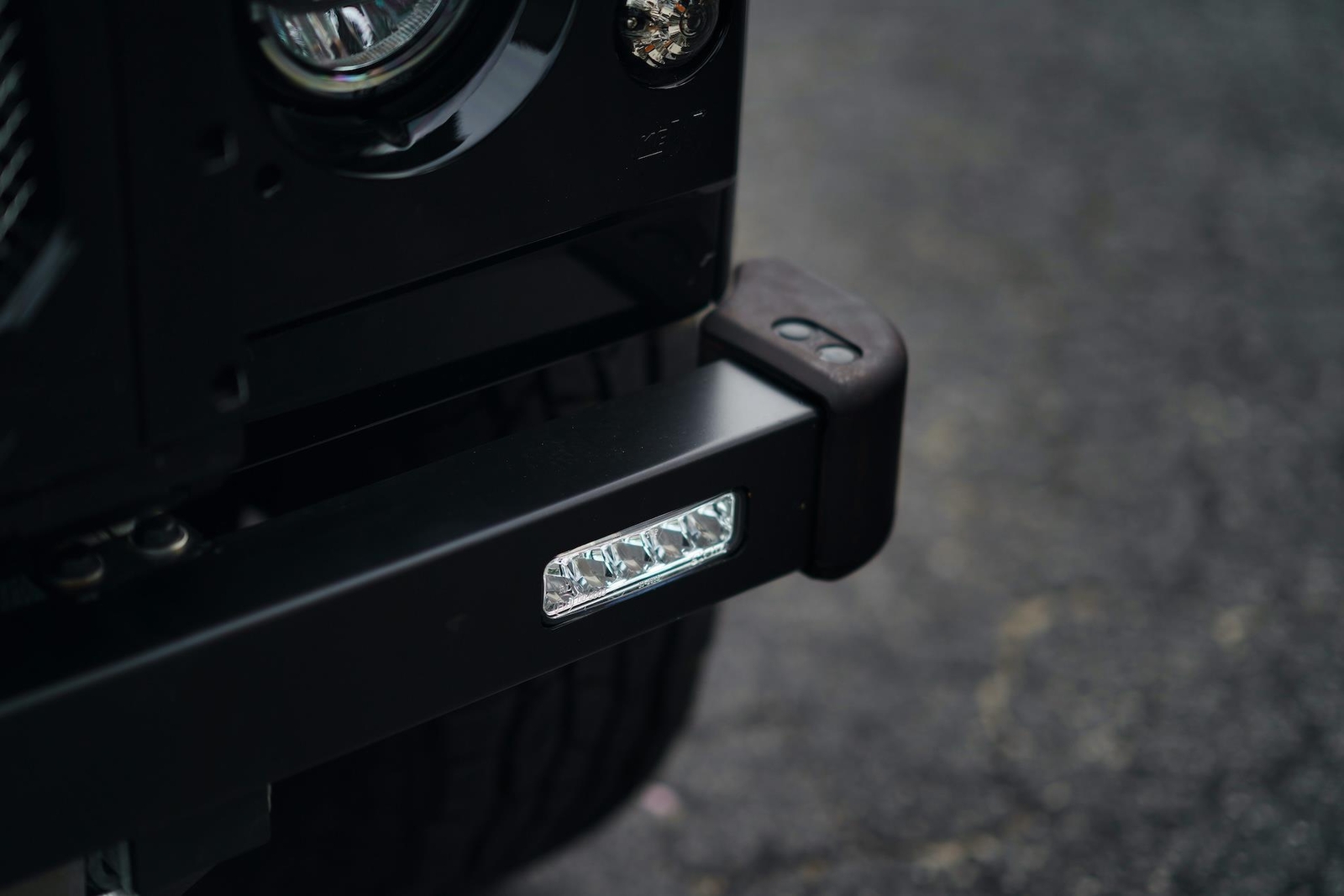 At the front end, this rugged-yet-refined SUV showcases a body color-matched KBX® grille and light surrounds with satin black side intake and wing top vents. The impressive front is completed with a satin black powder-coated slim-line bumper featuring two integrated LED daytime running lamps. At the rear, the vehicle features a satin black powder-coated North American Spec (NAS) step bumper, designed to accommodate a high-definition rearview camera, a 2-inch hitch receiver, and jacking/recovery points. For modern and precise illumination, LED headlamps with smoked marker, turn, reverse, and tail lamps have been installed.
