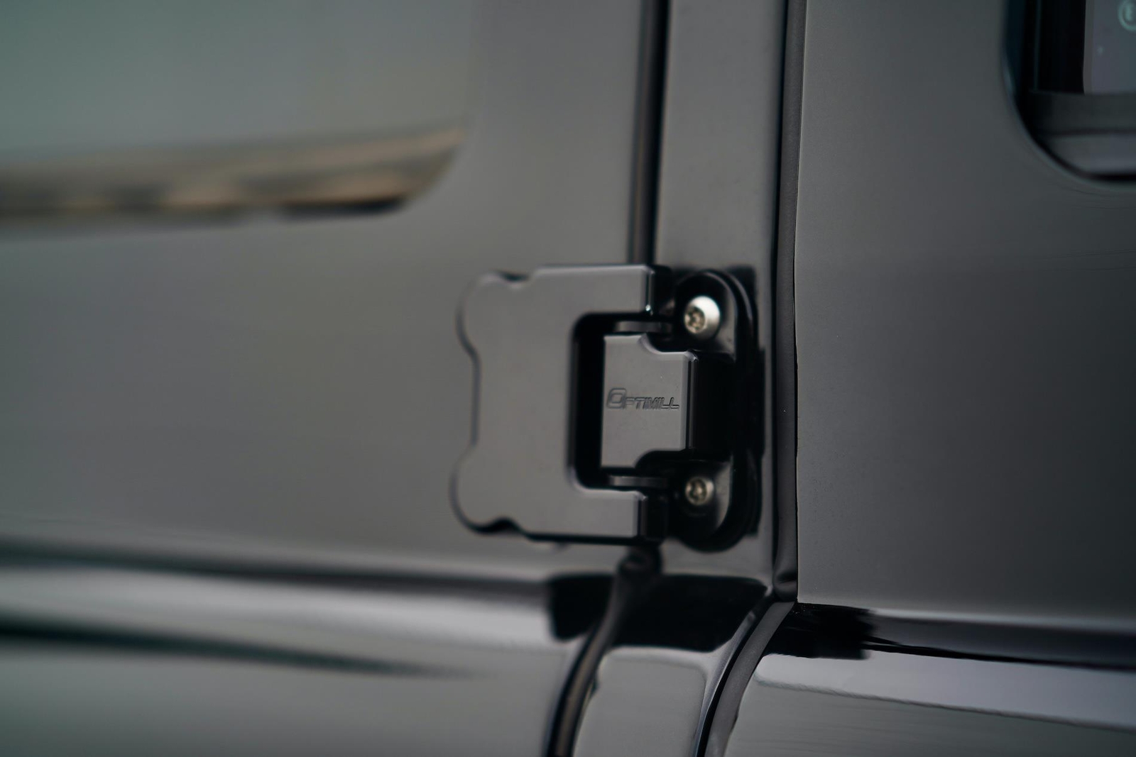 • Optimill® black anodized billet aluminum door, bonnet, and windscreen hinges