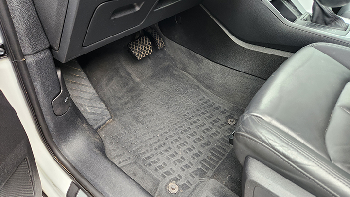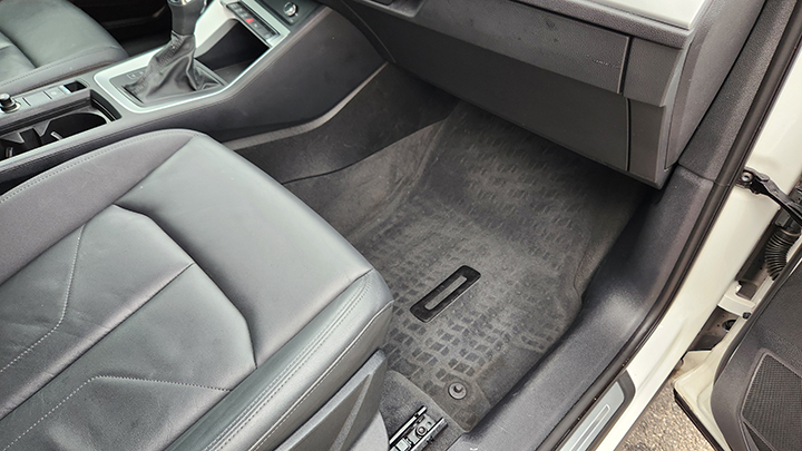white with black interior and her rugs are protected with