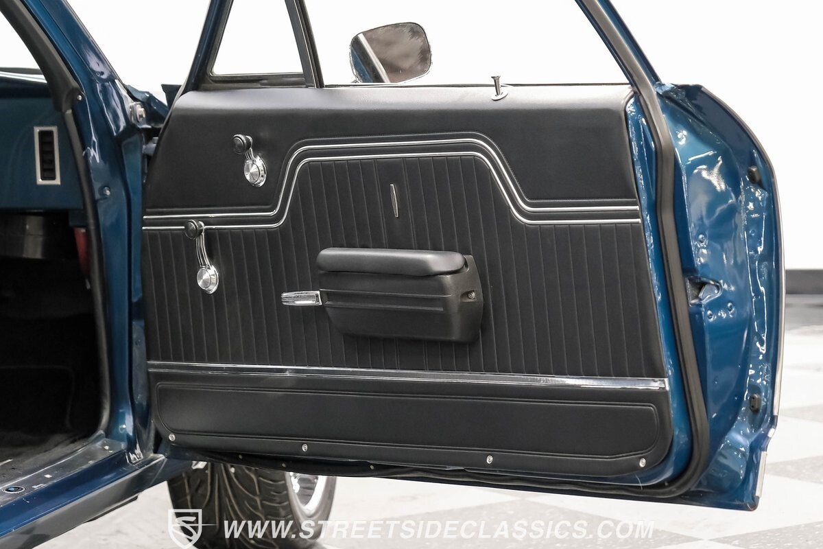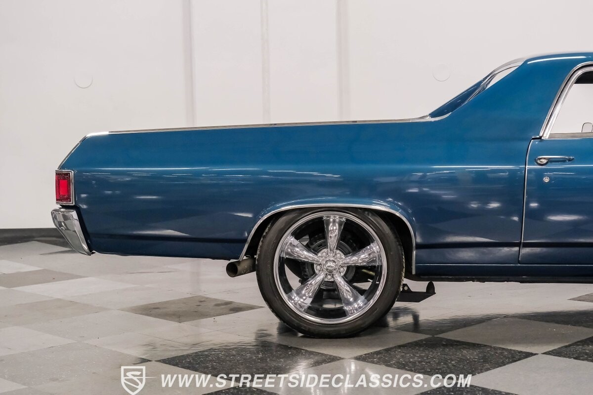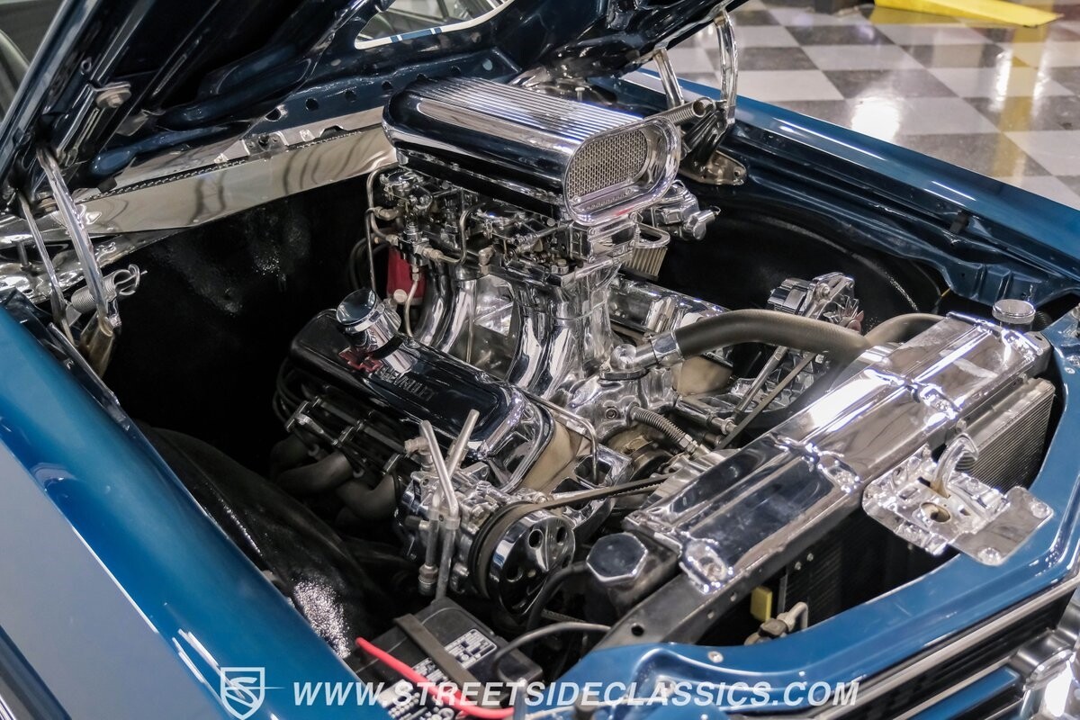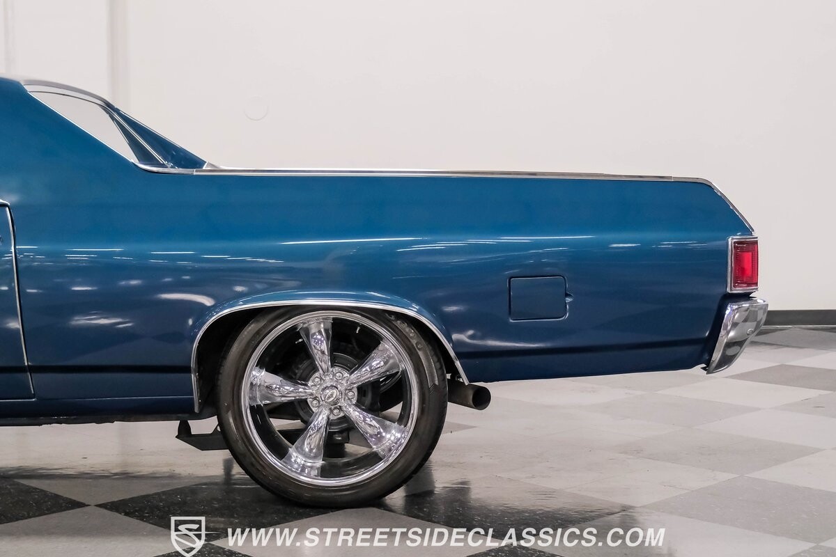A formidable 496ci V8 stroker engine, producing 700 horsepower, powers this El Camino. Dual 4-barrel Holley carburetors sit atop a tunnel ram intake, while an MSD ignition system, Hooker headers, and FlowMaster dual exhaust enhance performance. A TH350 3-speed automatic transmission with a 3,000 stall converter efficiently transfers power to the 12-bolt rear end. The suspension setup features coil springs, shocks, and a sway bar up front, with traction bars and coil springs in the rear, delivering both straight-line performance and cornering ability.