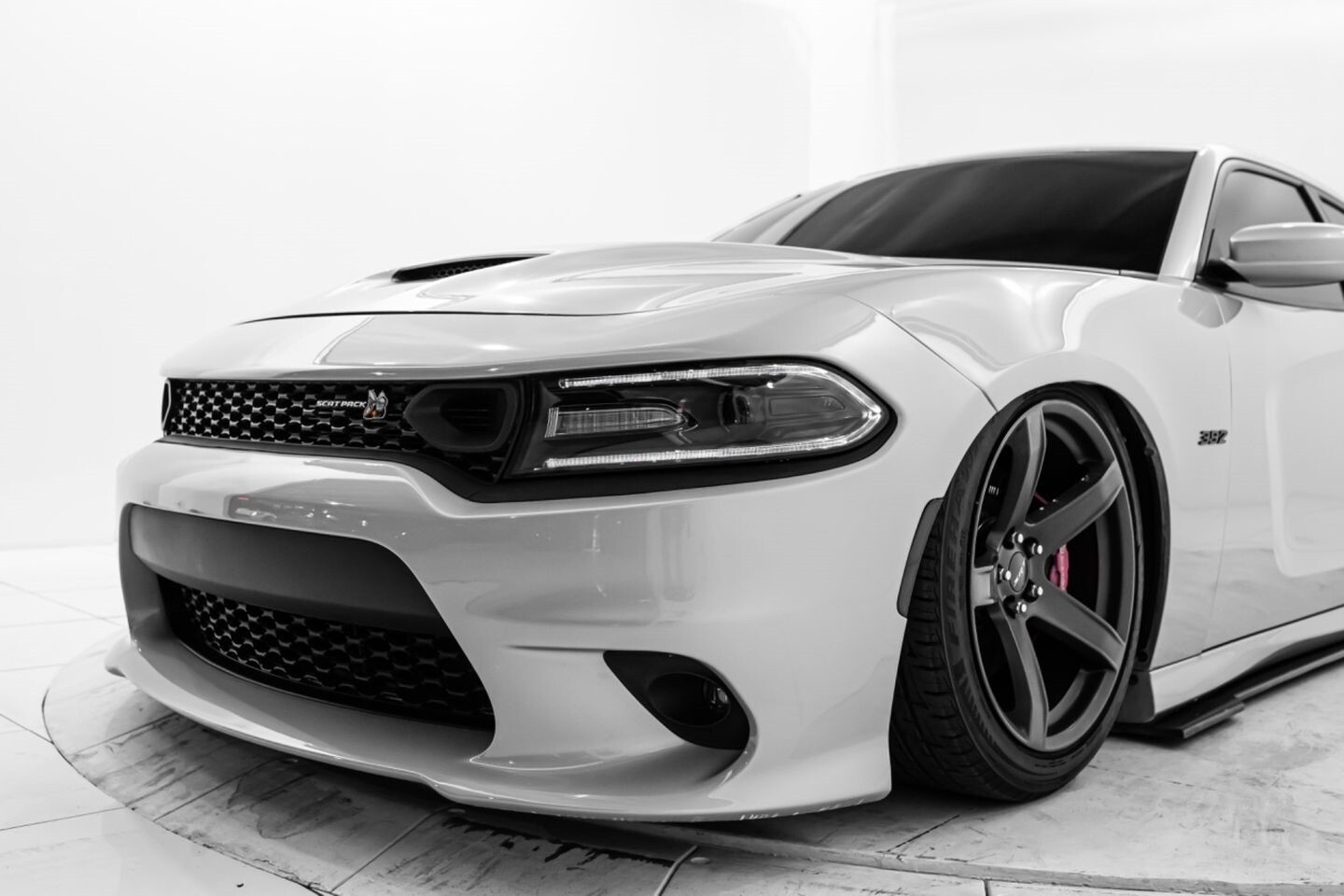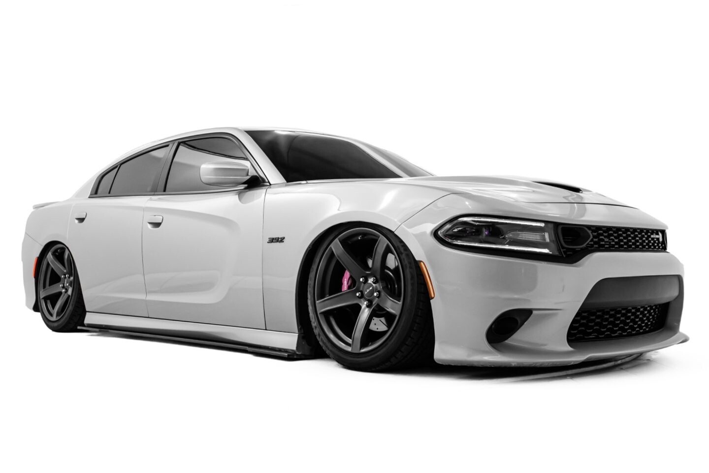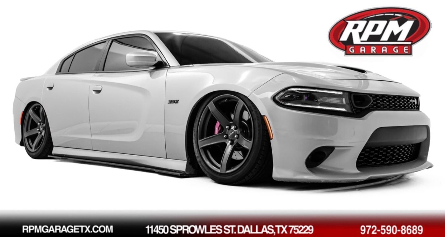This 2021 Dodge Charger 392 Scat Pack is an American icon that needs no introduction. Under the hood is a 6.4-liter V8 engine that produces 485 horsepower and 475 lb-ft of torque, all of which is sent through a eight-speed automatic transmission to the rear wheels. The engine is not stock, however, having received Corsa Performance long-tube headers, a BBK Power Plus 90mm throttle body, a K&N cold-air intake, and a Speedlogix catch can. This bagged muscle car comes equipped with 20" SRT Hellcat HC2-style wheels and is finished in Triple Nickel Clearcoat, a shining color that perfectly suits the car's aggressive lines. In the interior, this Charger offers heated cloth bucket seats with Scat Pack-stitched emblems, an Airlift Performance 3P air suspension controller, multi-zone A/C, selectable drive modes, quasi-carbon fiber interior trim pieces, a heated leather "SRT" steering wheel, and an infotainment system with Bluetooth, apps, Performance Pages, climate controls, phone connectivity, AUX, and a backup camera, truly making this car the complete package.