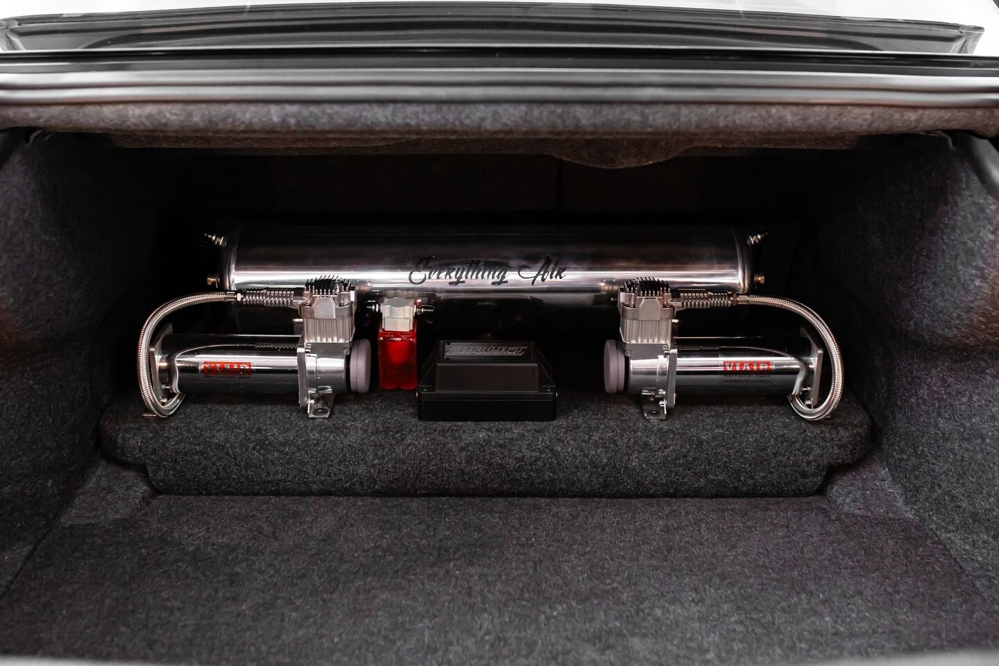 AIRLIFT PERFORMANCE AIR SUSPENSION W/TRUNK-MOUNTED VIAIR COMPRESSORS AND TANK