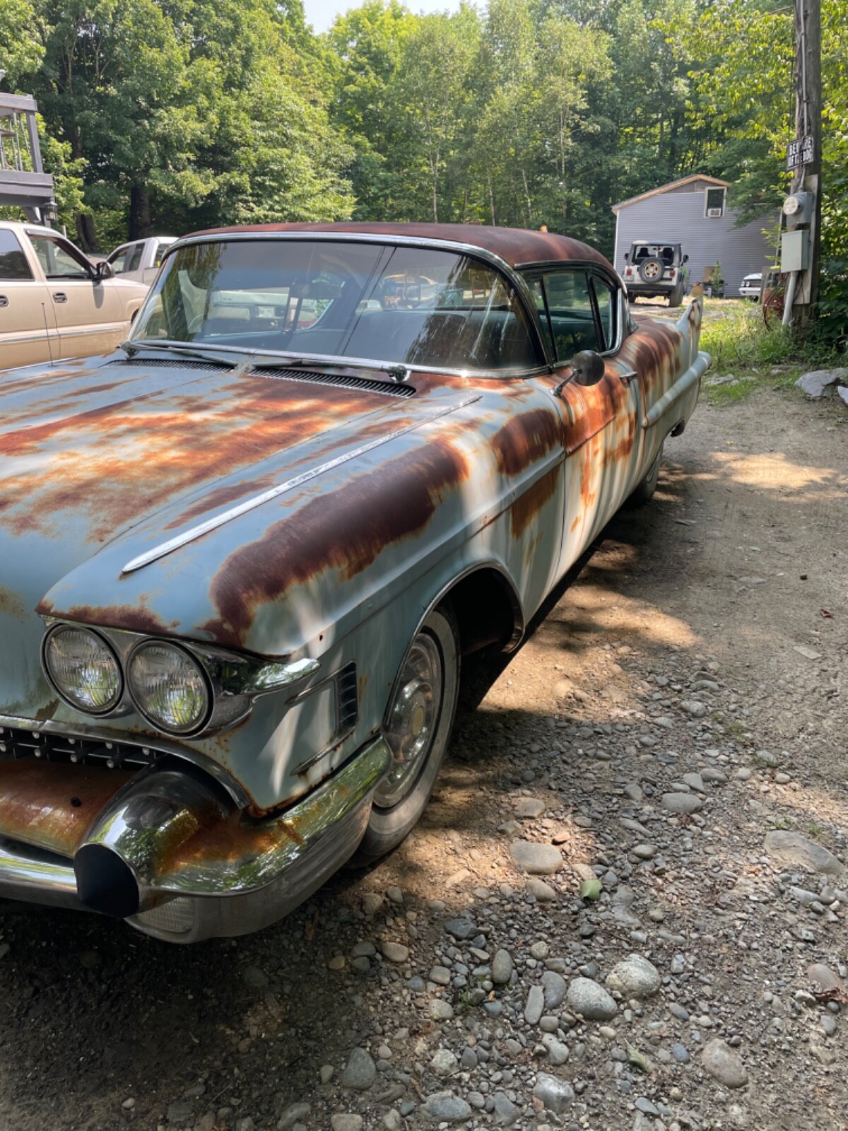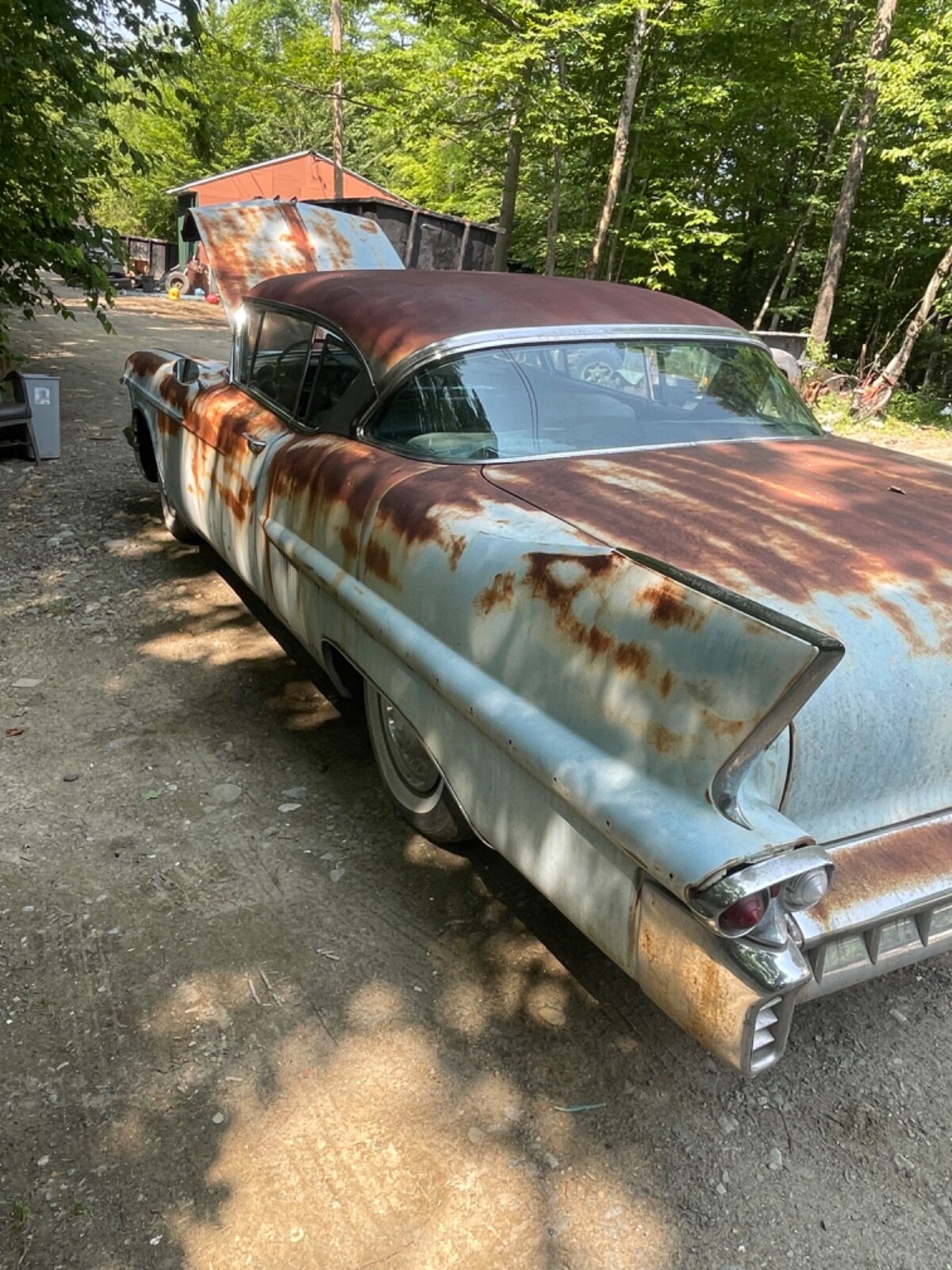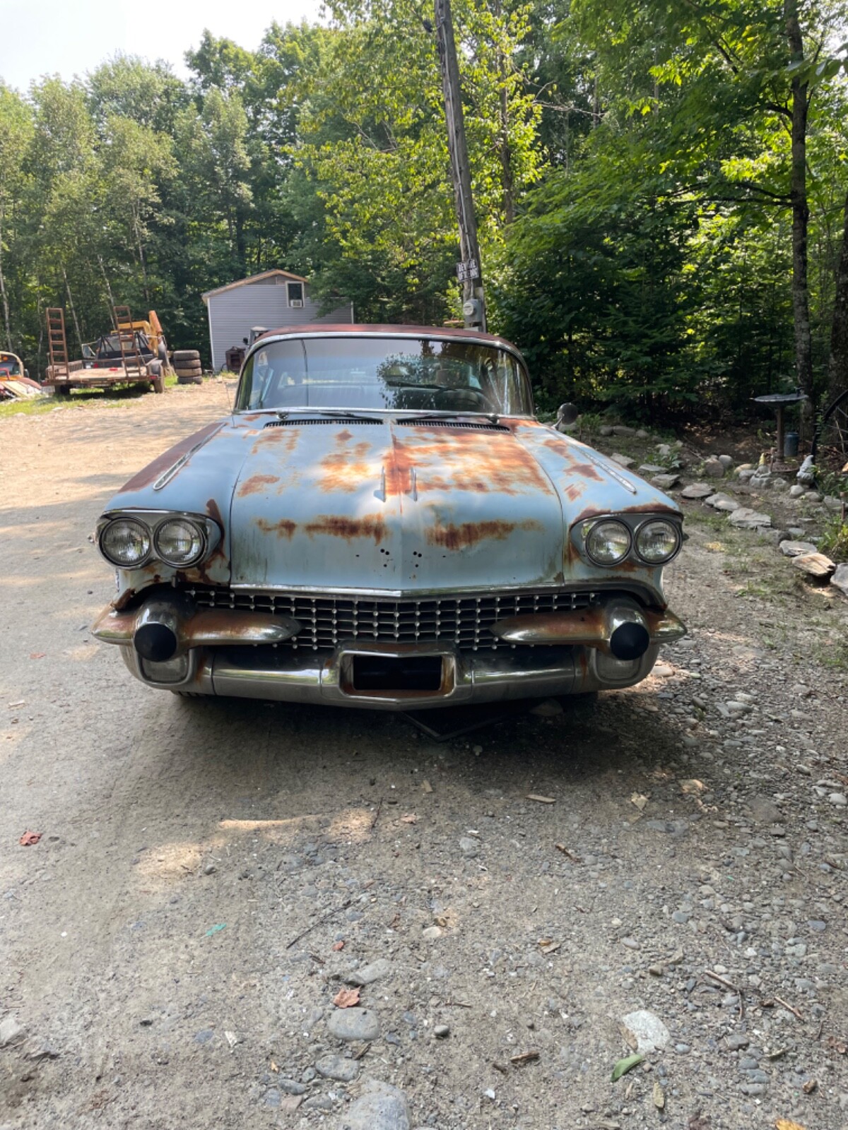 1958 Cadillac runs and yard drives. Have all chrome in the trunk. Good start to a nice restoration project. Car has good bones! No title as the car is from Maine and Maine does not require title. Bill of sale only!