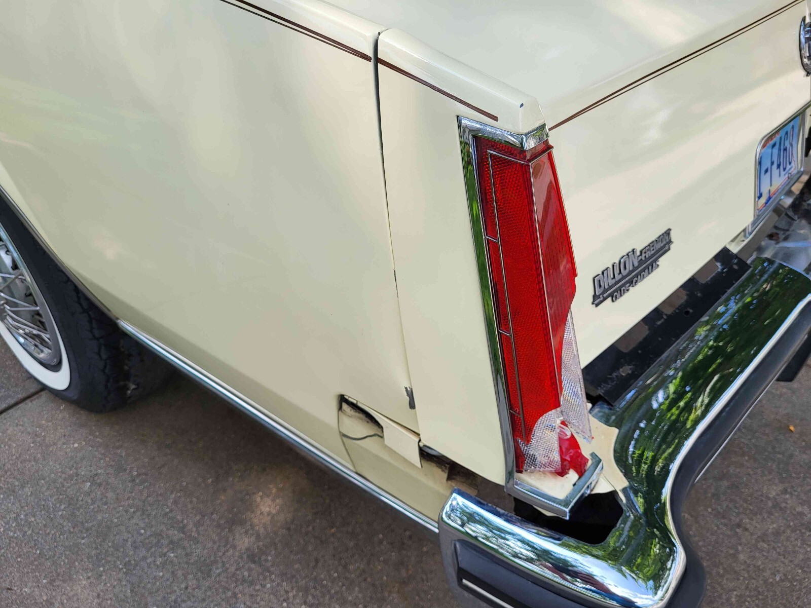 Interior is in as new condition. Exterior is very nice with the exception of the tail light and the trim piece you can see in the pictures. It will also need body filler panels as most all of these do. This car was part of a farm estate sale and there were many of these. From what I understand the 80-year-old farmer drug all of these low-mile Cadillacs out of the various barns with a front end loader. Hence the broken tail light etc. I can't make this stuff up.