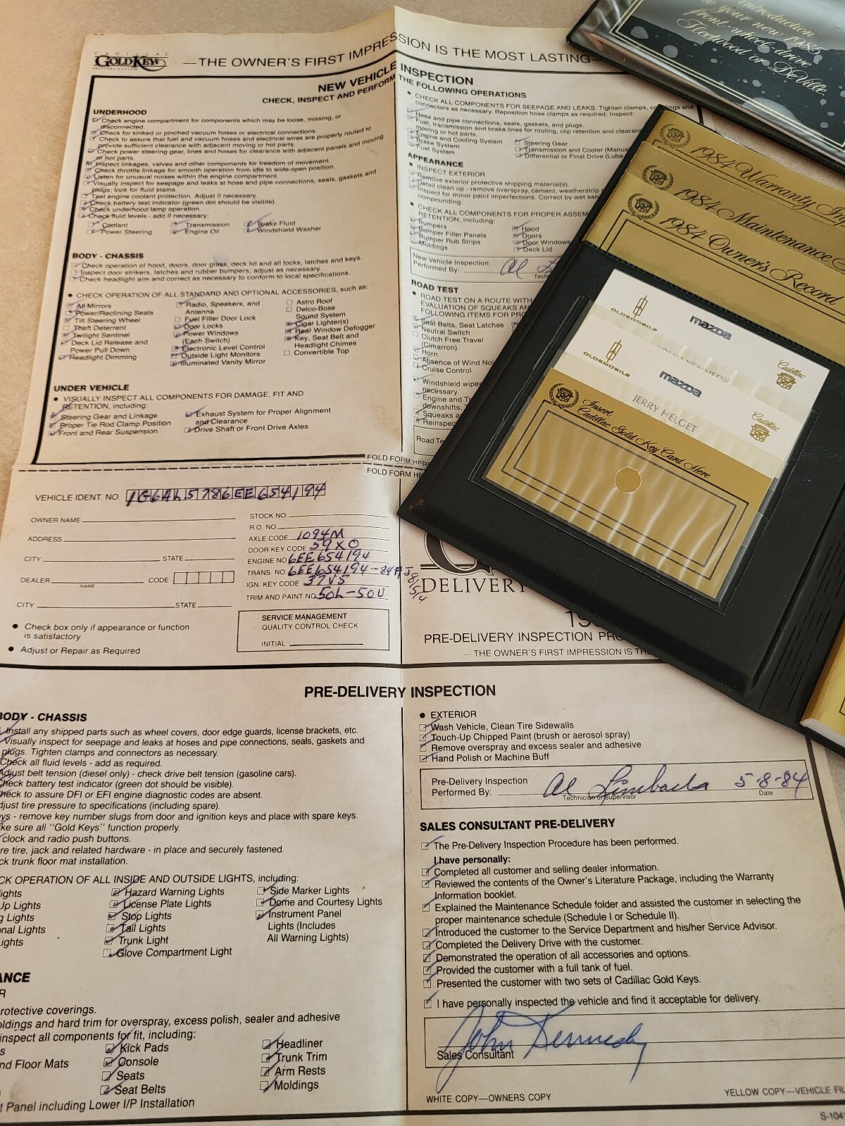 Selling my 84 eldorado with 10,600 original miles. Has the original Royal seal tires on it that it left the lot with in 1984. I have much of the original documentation, gold key delivery paperwork, service manuals, original salesman's card etc. It even has a cigarette butt from the '80s in the ashtray on the passenger side.