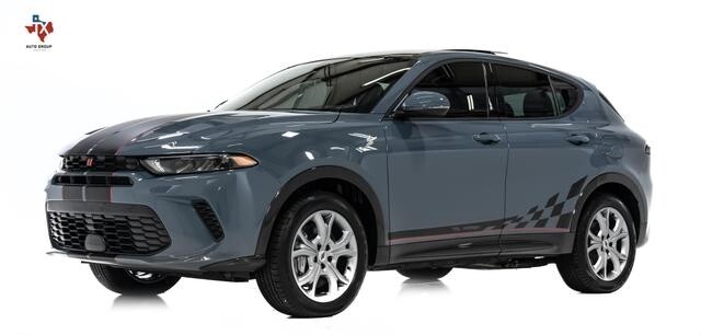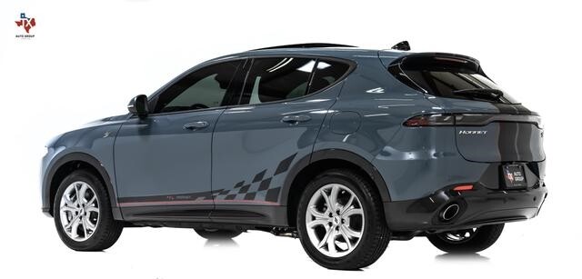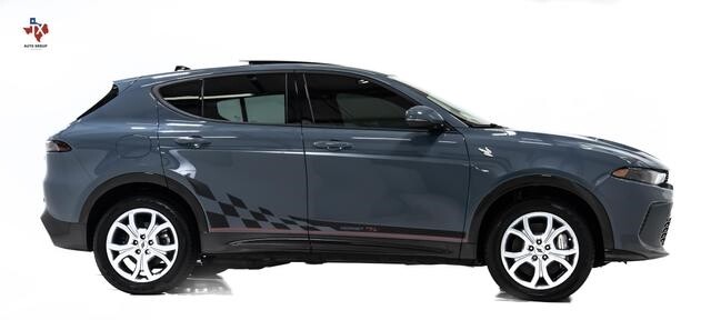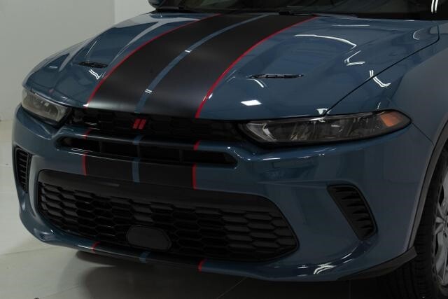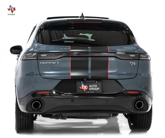 Have a look at this One Owner, Low Miles, Factory Loaded, Excellent Condition, Accident Free, & Non Smoker 2024 Dodge Hornet R/T Plus EAWD SUV with Custom Ordered Blue Steele Exterior Paint over Black Interior Upholstery. This Dodge Hornet is Equipped with a 288 Horsepower 1.3L Turbocharged I4 Plug-In Hybrid Engine Coupled with 6-Speed Automatic Transmission.